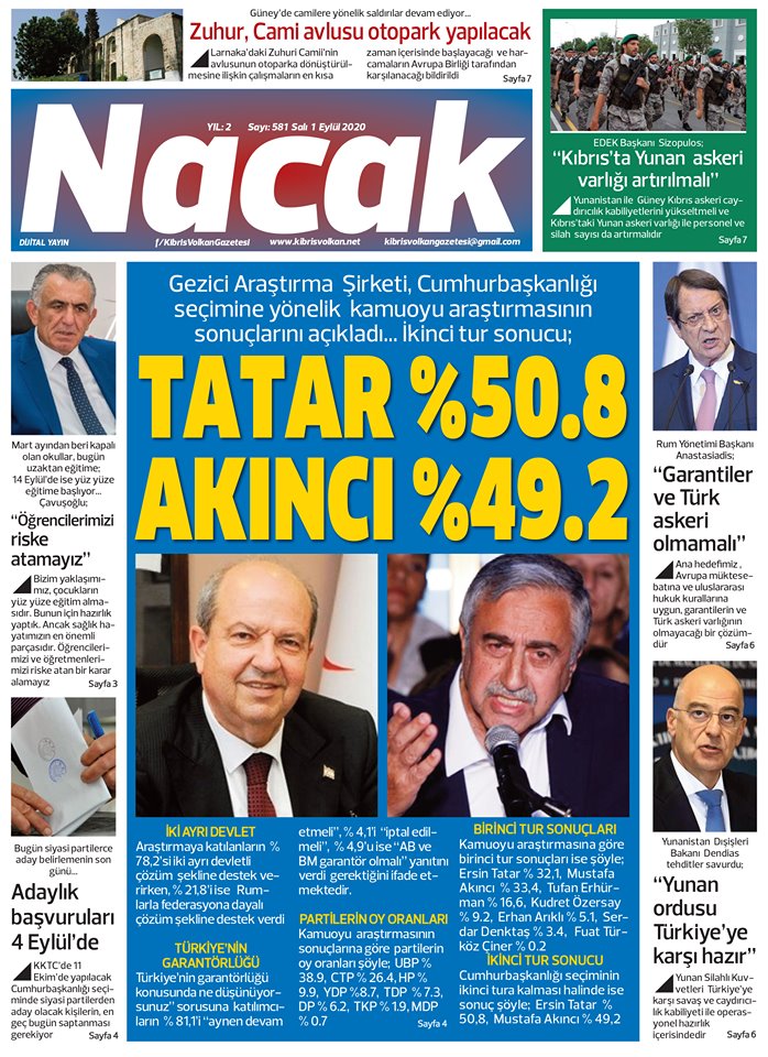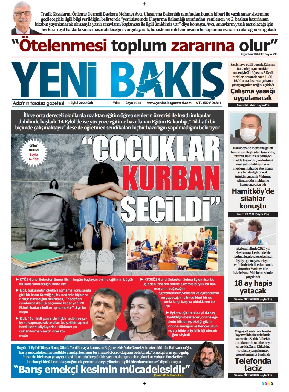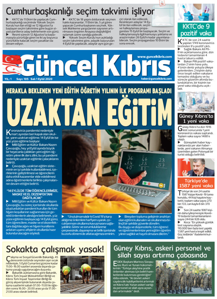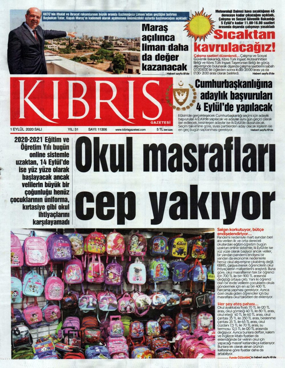 1 Eylül 2020 tarihinde KKTC’de yayınlanan gazete manşetleri