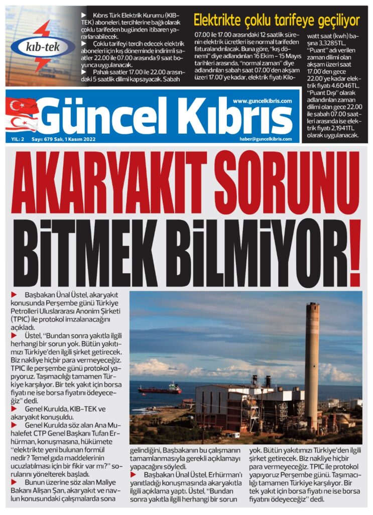 1 Kasım 2022’de KKTC’de yayınlanan gazete manşetleri