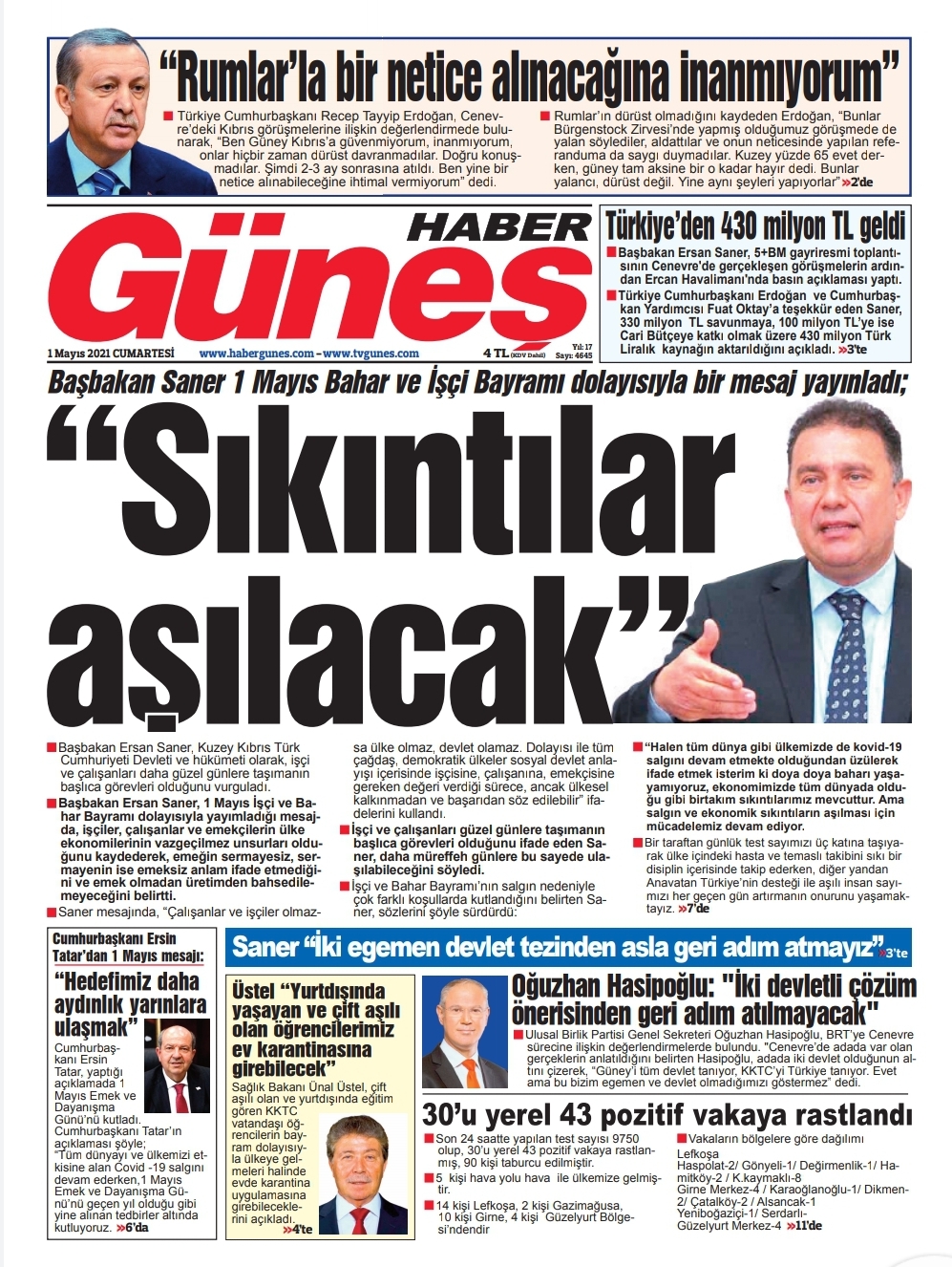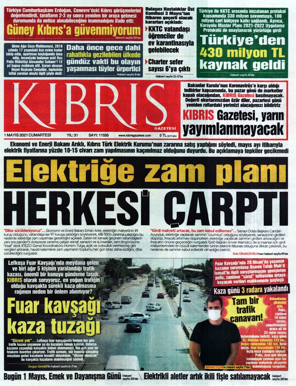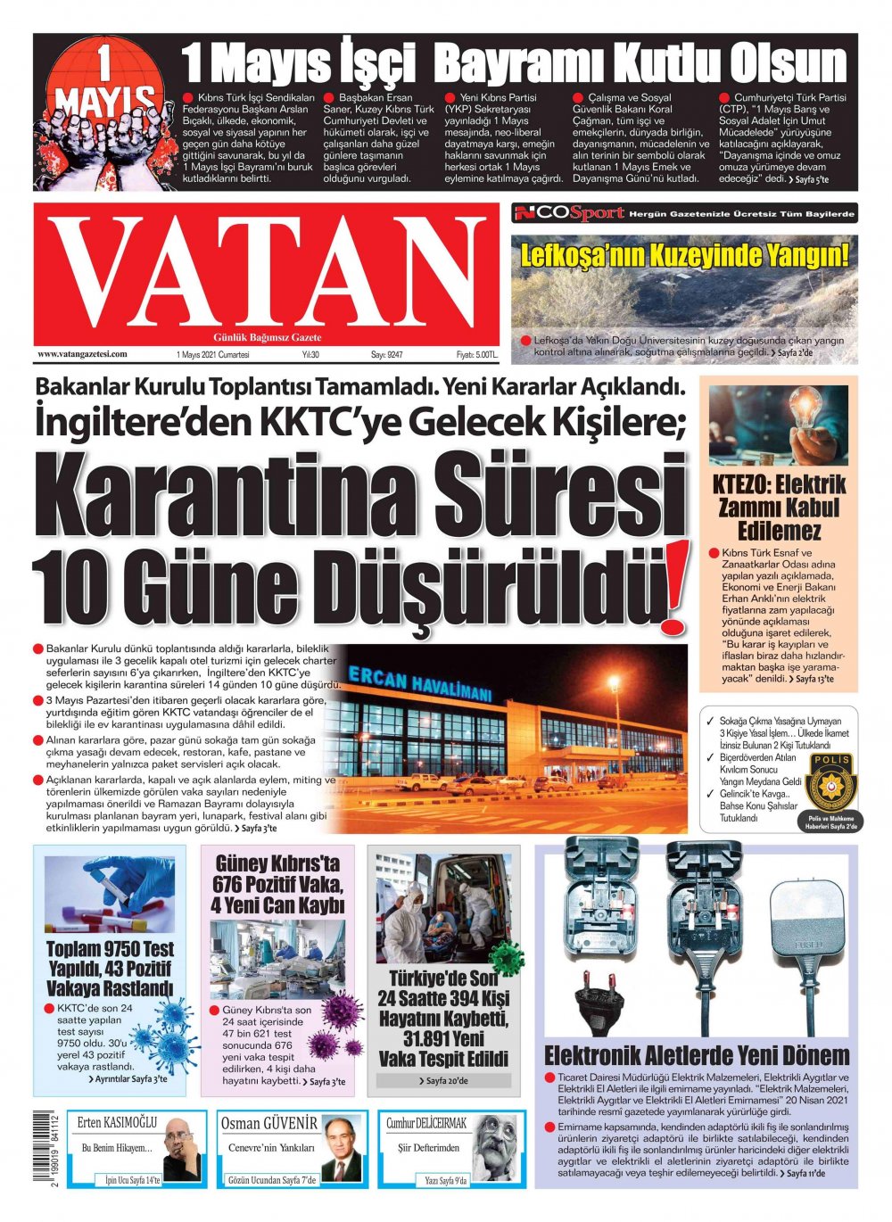 1 Mayıs 2021’de KKTC’de yayınlanan gazete manşetleri