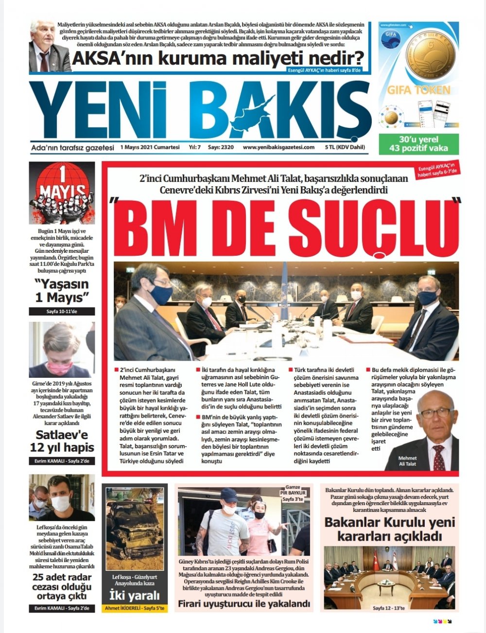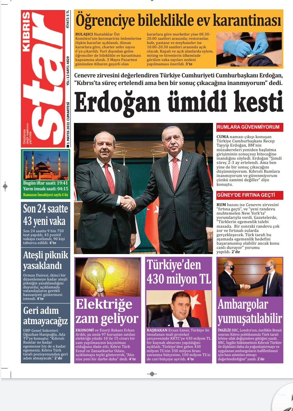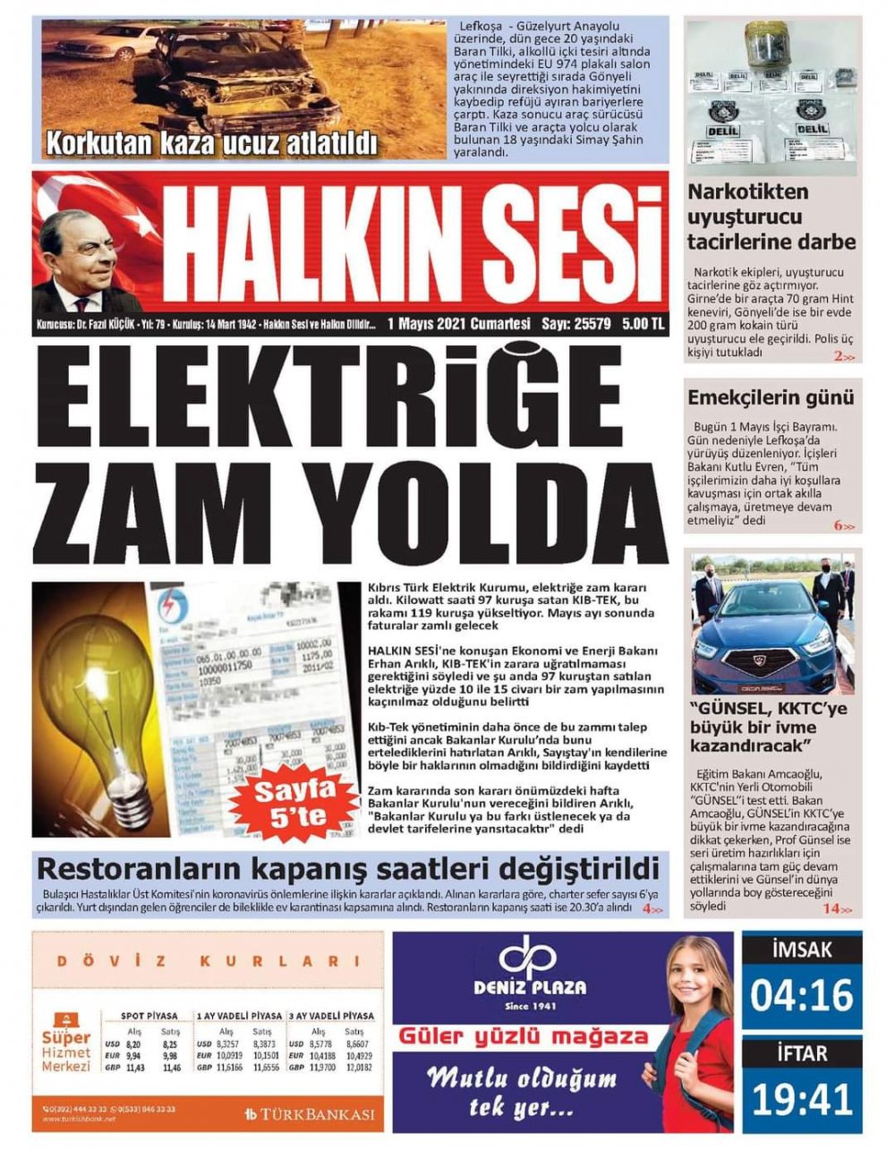 1 Mayıs 2021’de KKTC’de yayınlanan gazete manşetleri