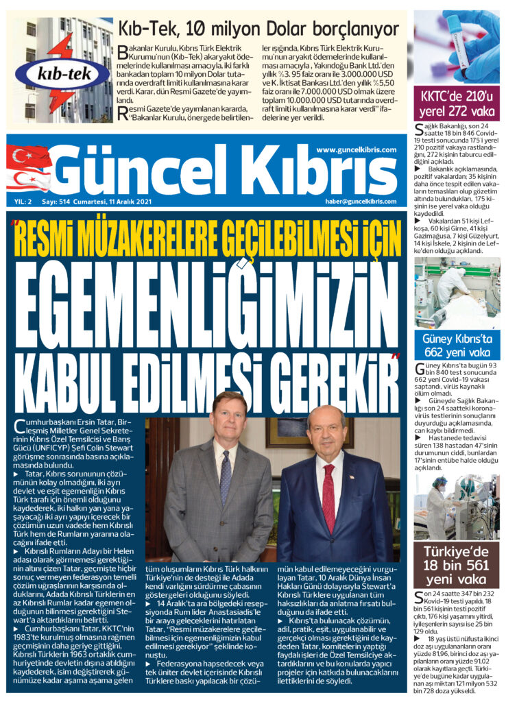 11 Aralık 2021’de KKTC’de yayınlanan gazete manşetleri