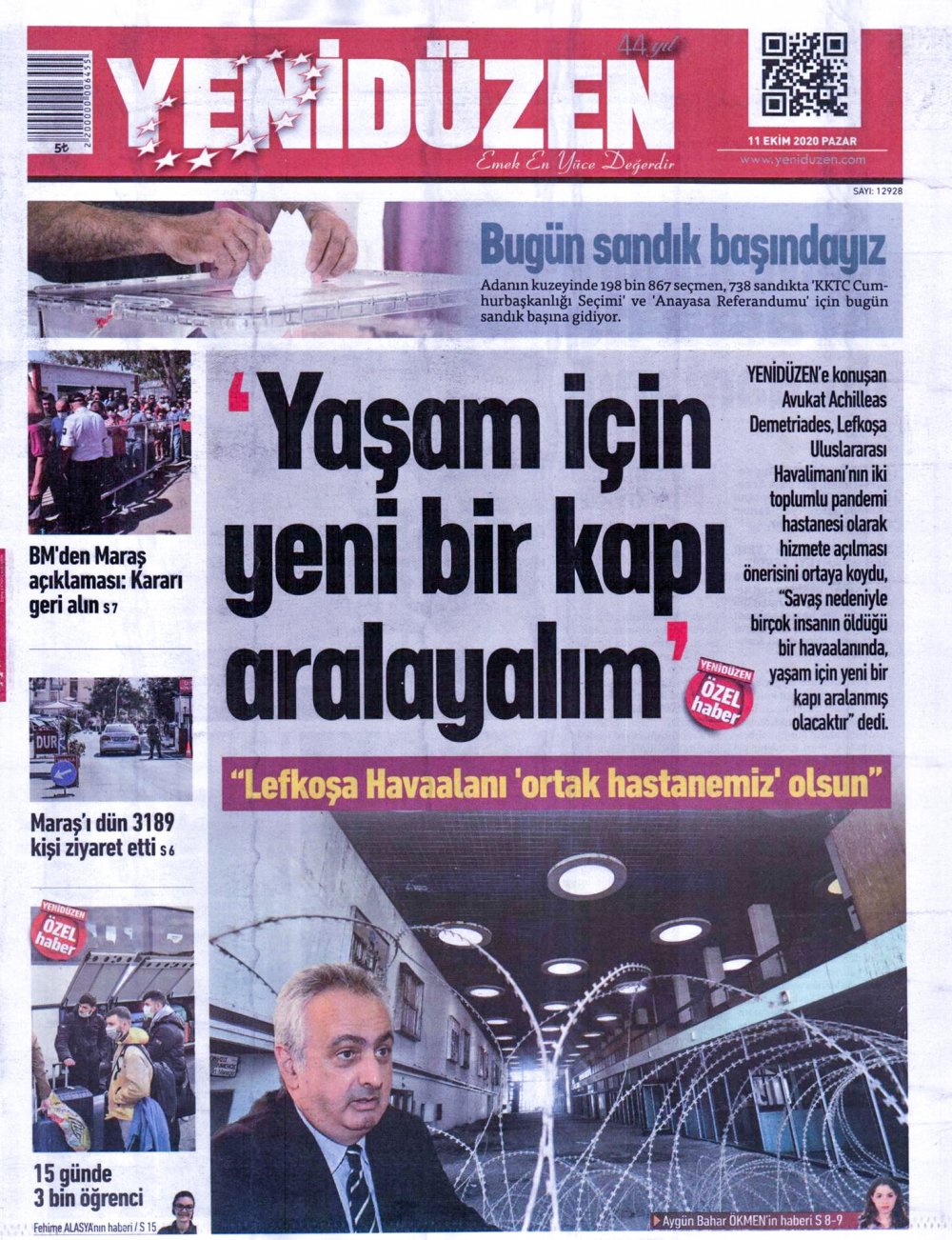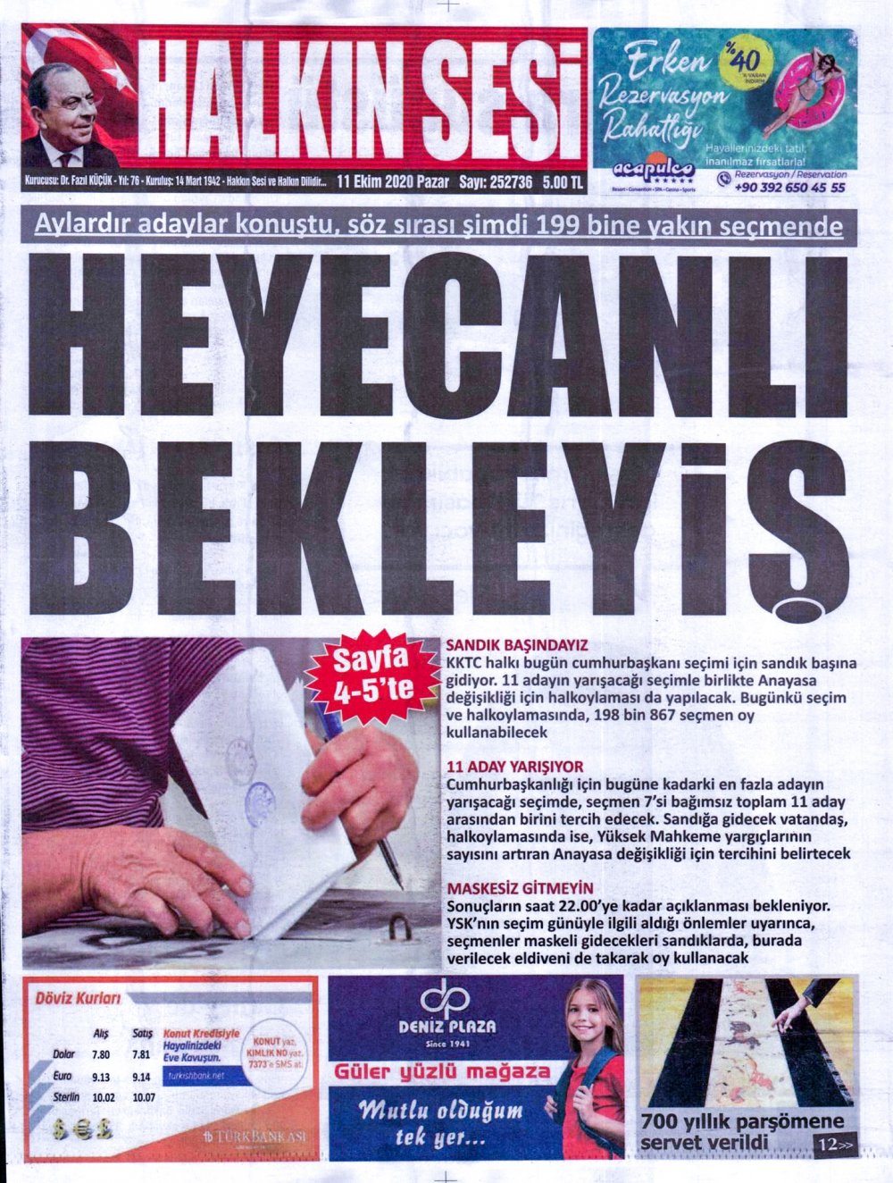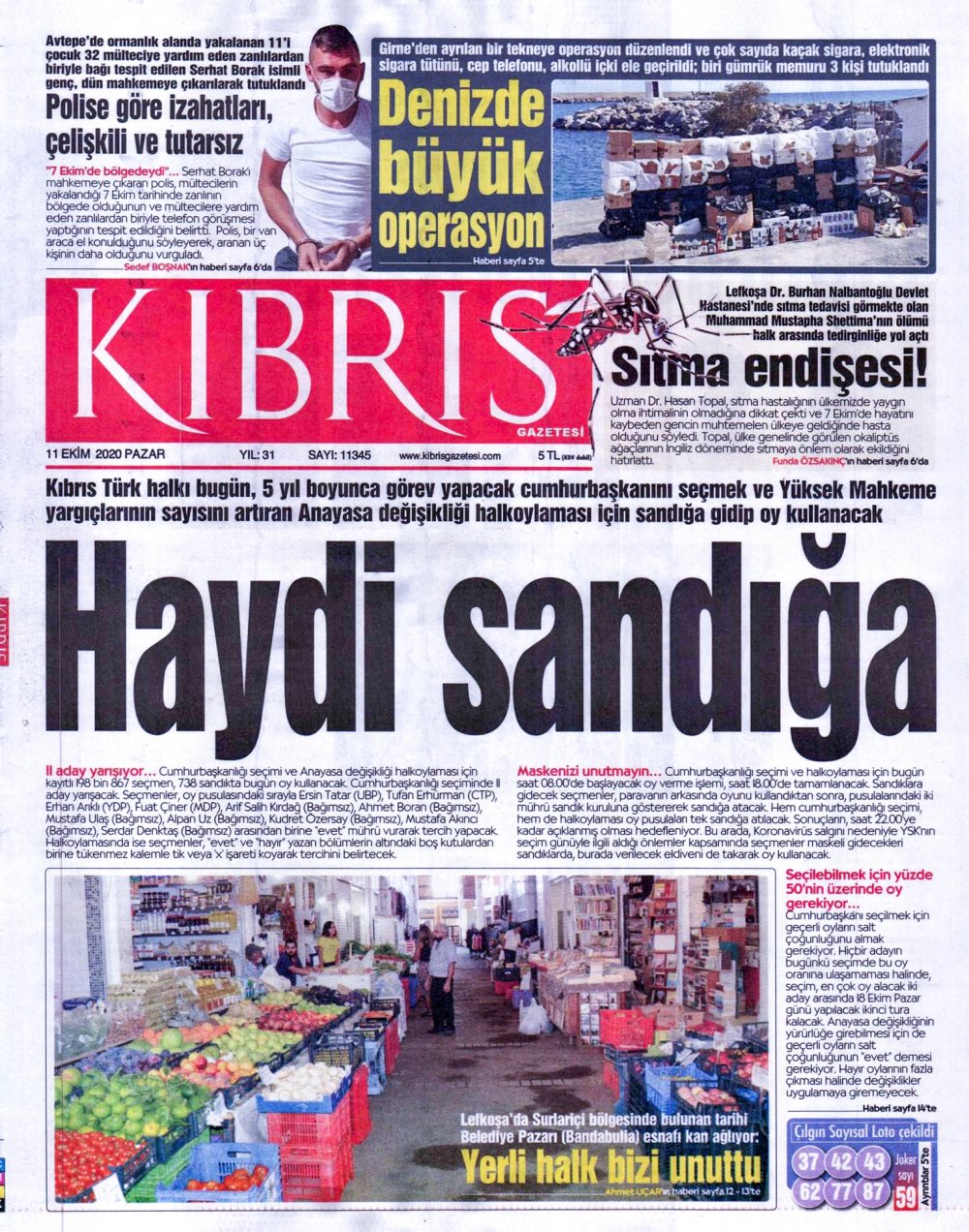 11 Ekim 2020 tarihinde KKTC’de yayınlanan gazete manşetleri