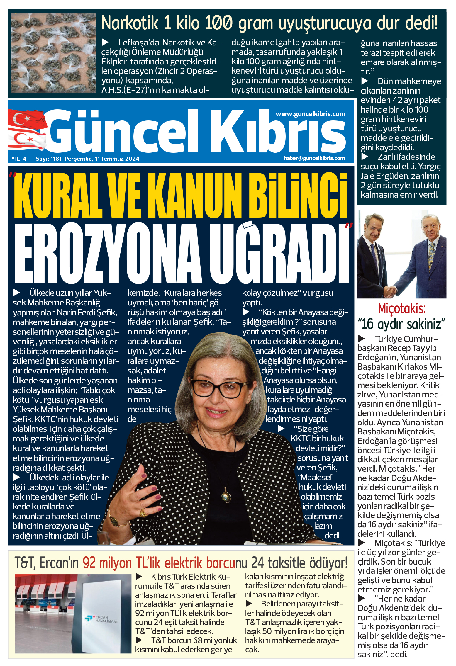 11 Temmuz 2024’te KKTC’de yayınlanan gazete manşetleri