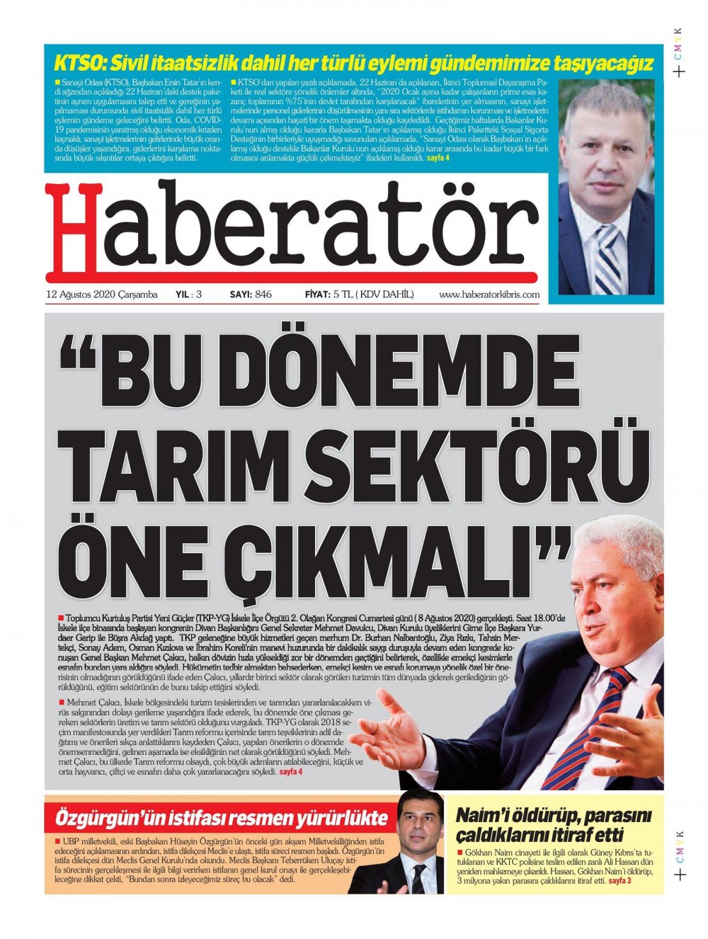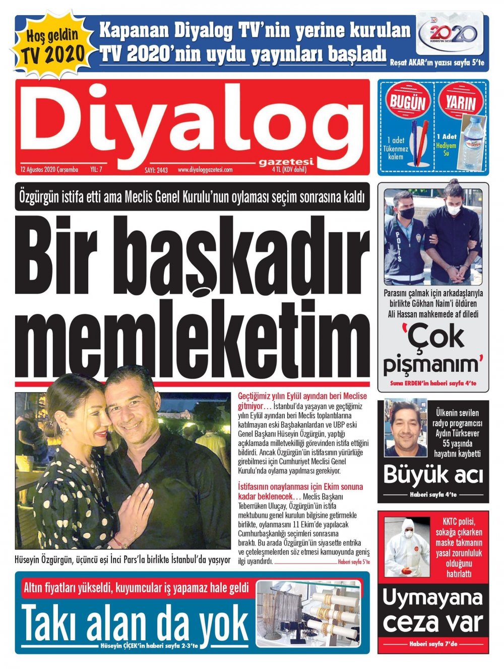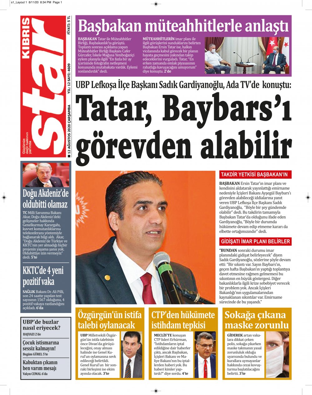 12 Ağustos 2020 tarihinde KKTC yayınlanan gazete manşetleri