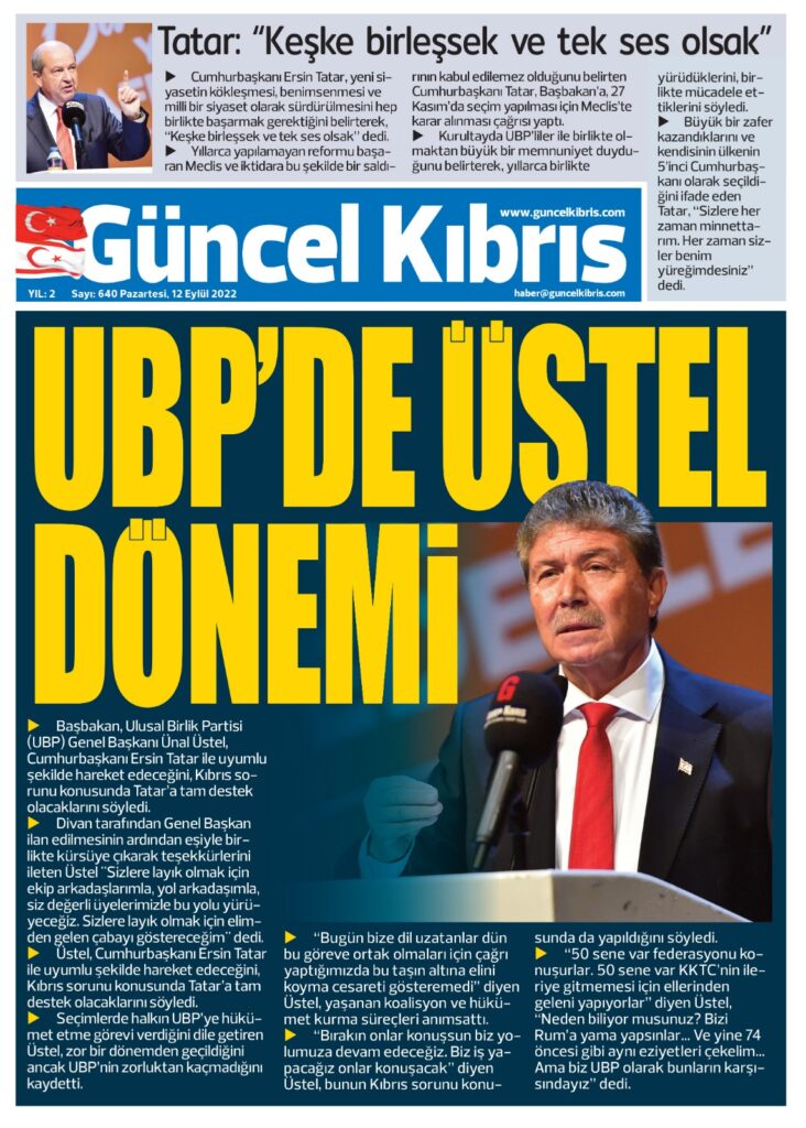 12 Eylül 2022’de KKTC’de yayınlanan gazete manşetleri
