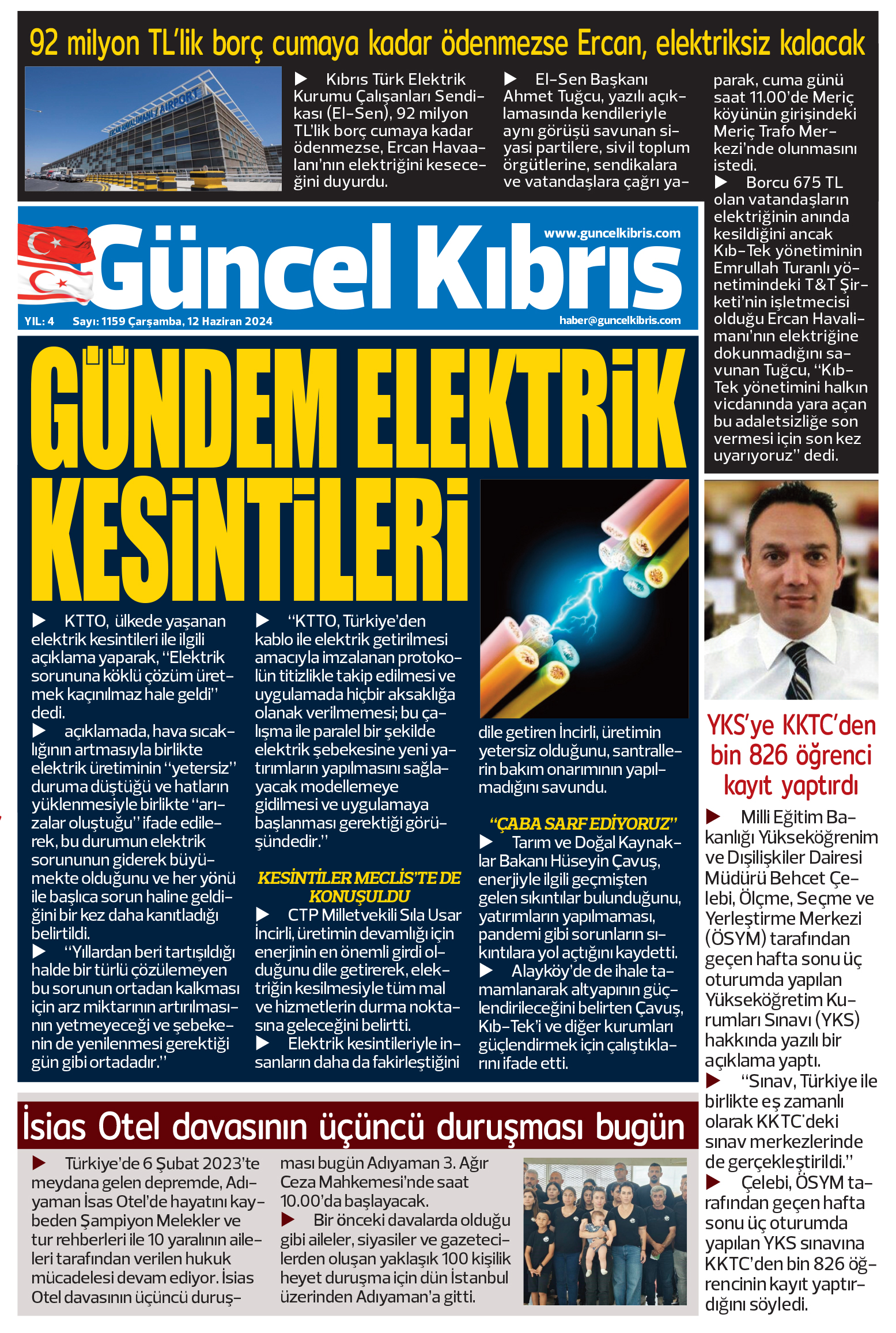 12 Haziran 2024’te KKTC’de yayınlanan gazete manşetleri
