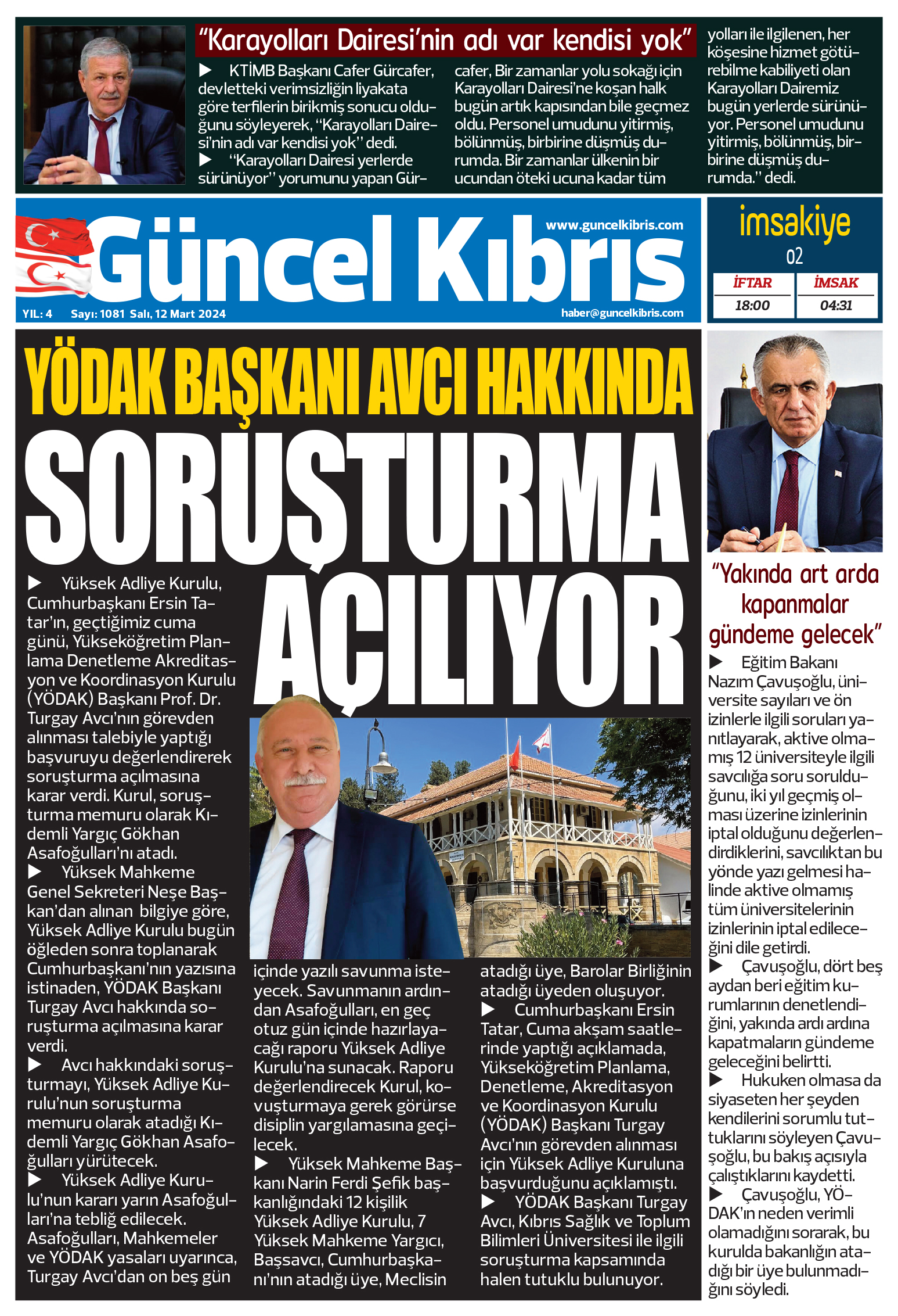 12 Mart 2024’te KKTC’de yayınlanan gazete manşetleri