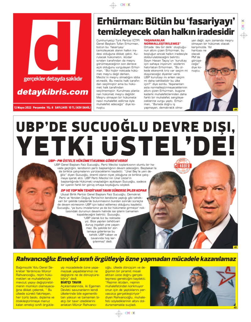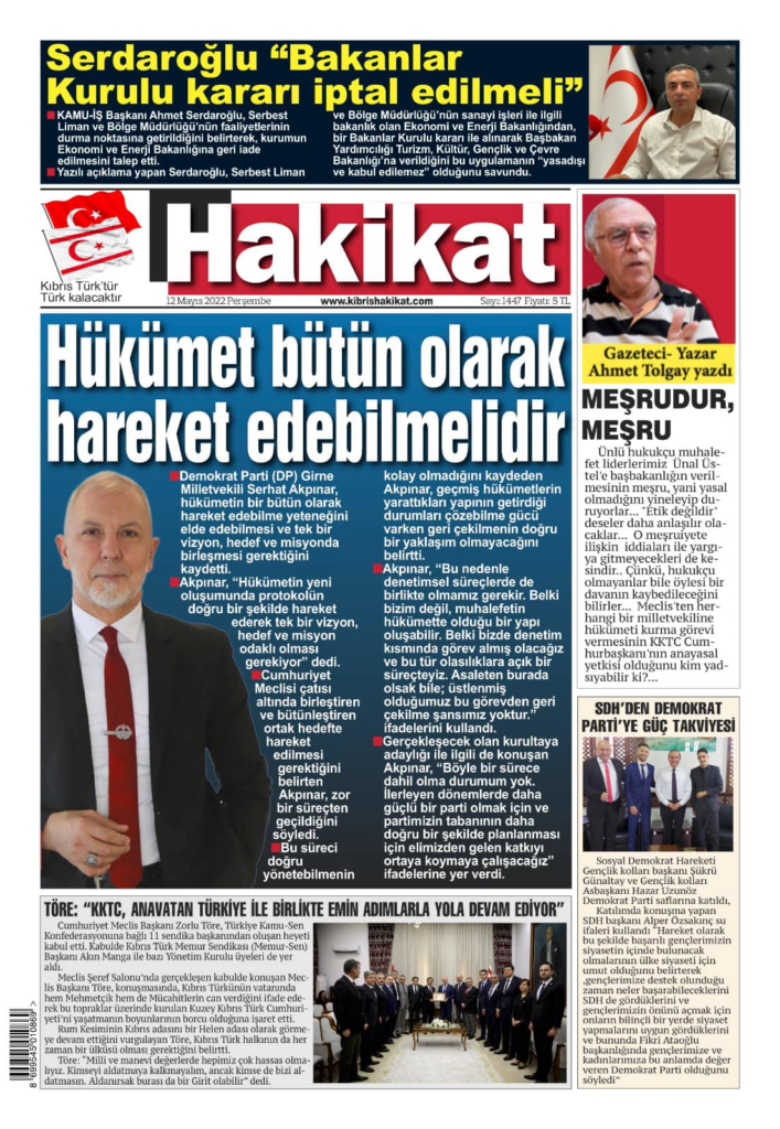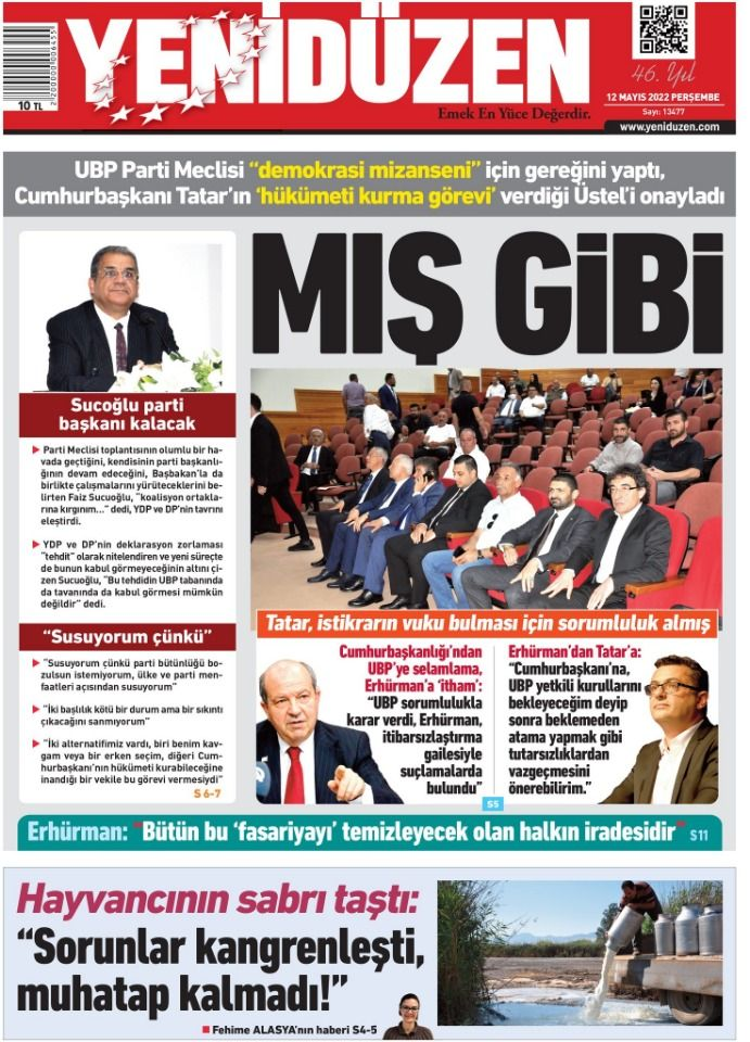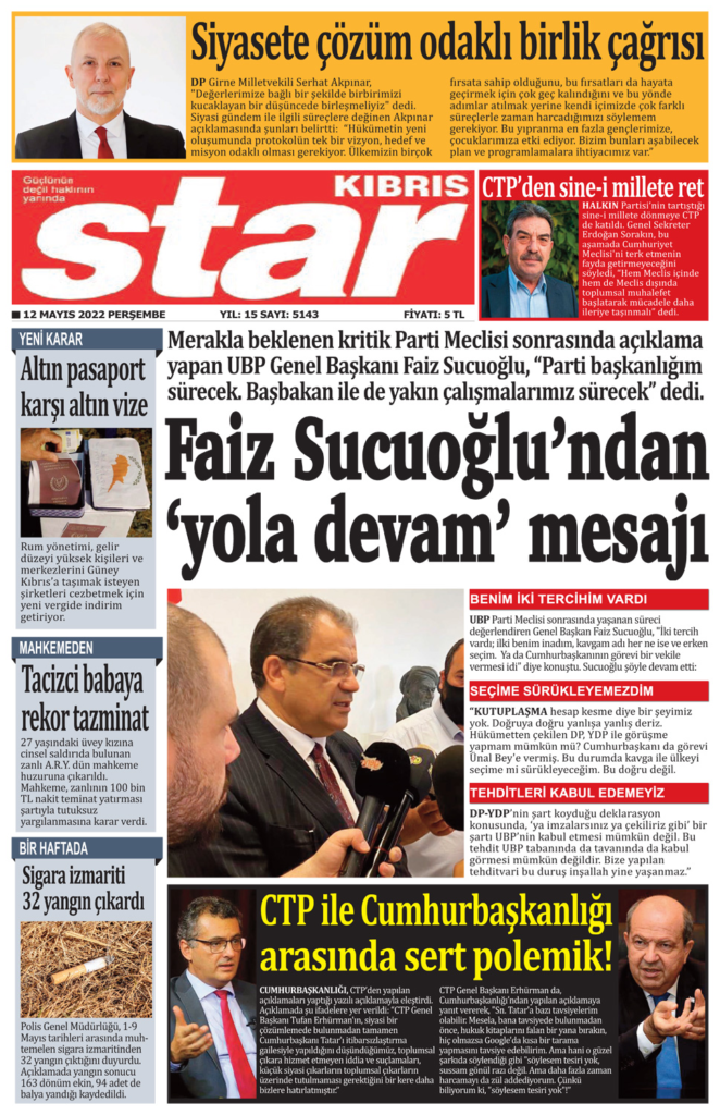 12 Mayıs 2022’de KKTC’de yayınlanan gazete manşetleri