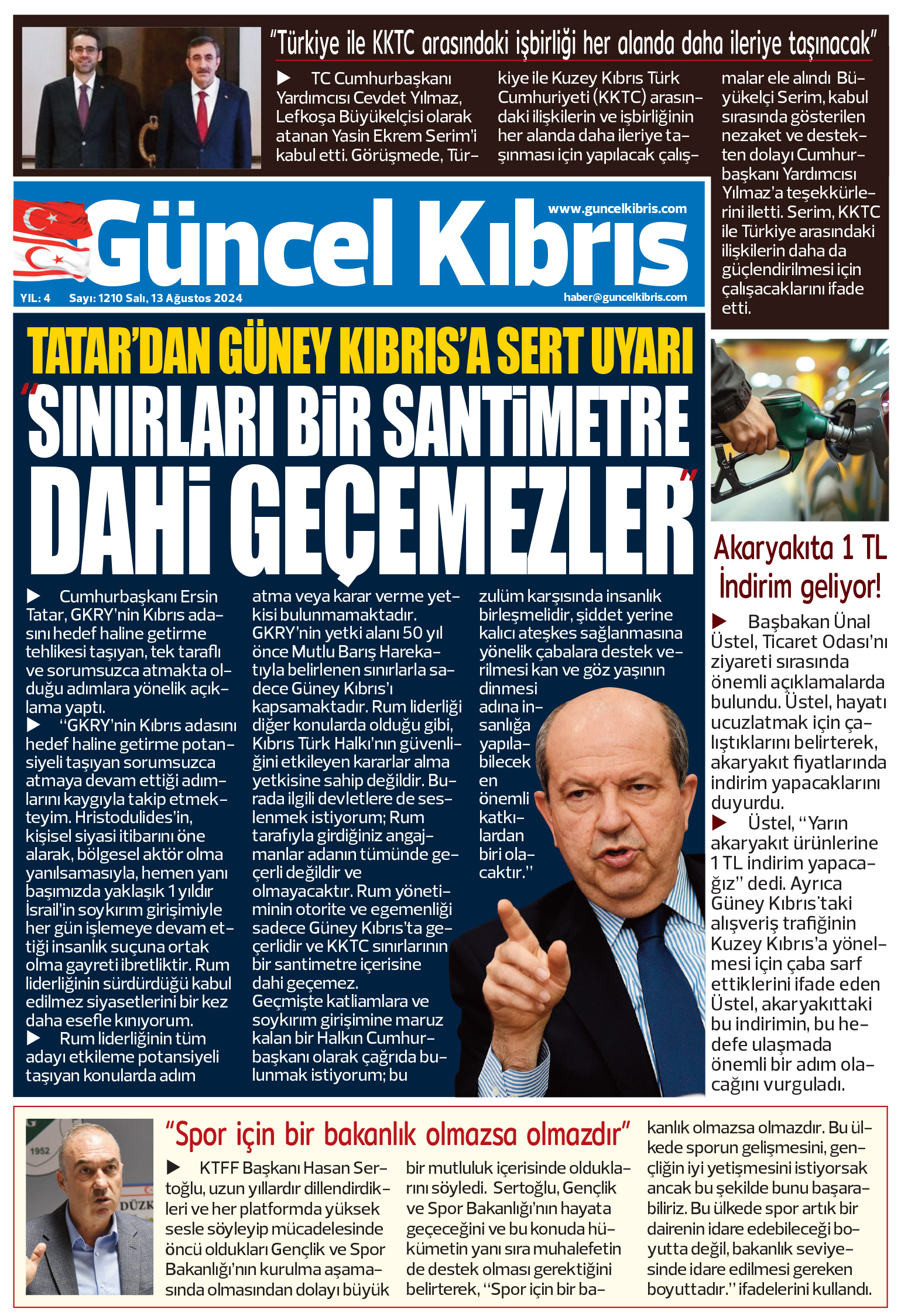 13 Ağustos 2024’te KKTC’de yayınlanan gazete manşetleri