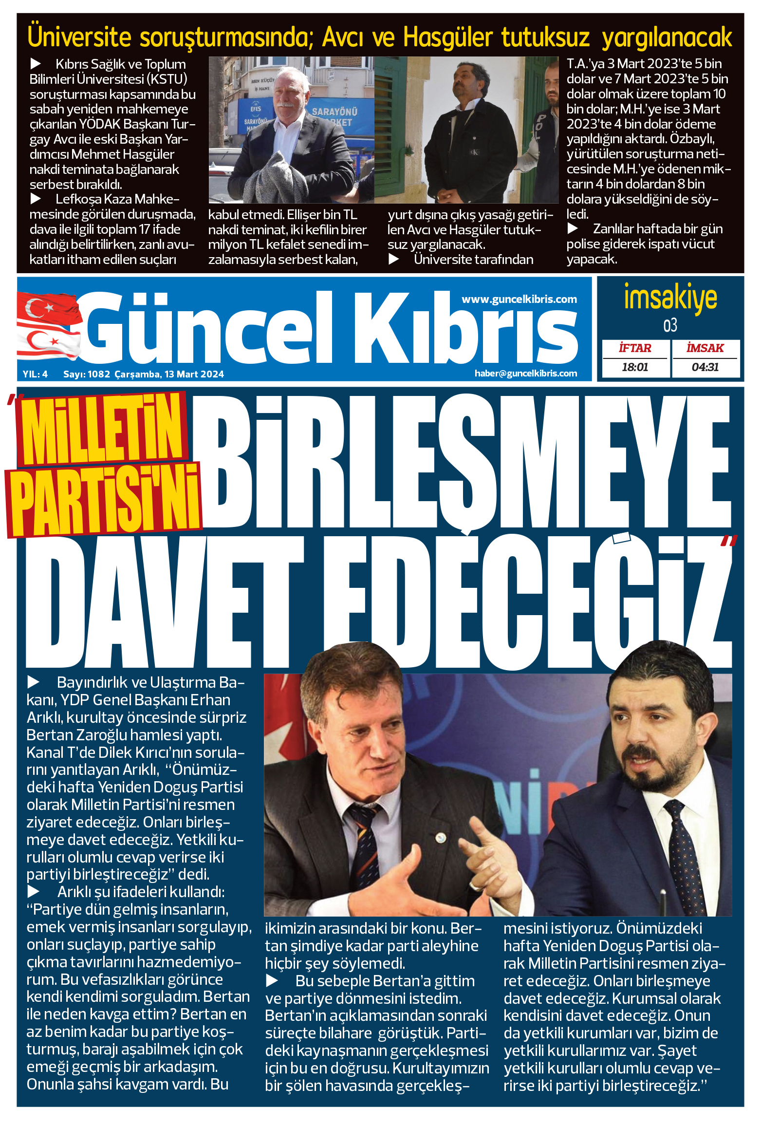 13 Mart 2024’te KKTC’de yayınlanan gazete manşetleri