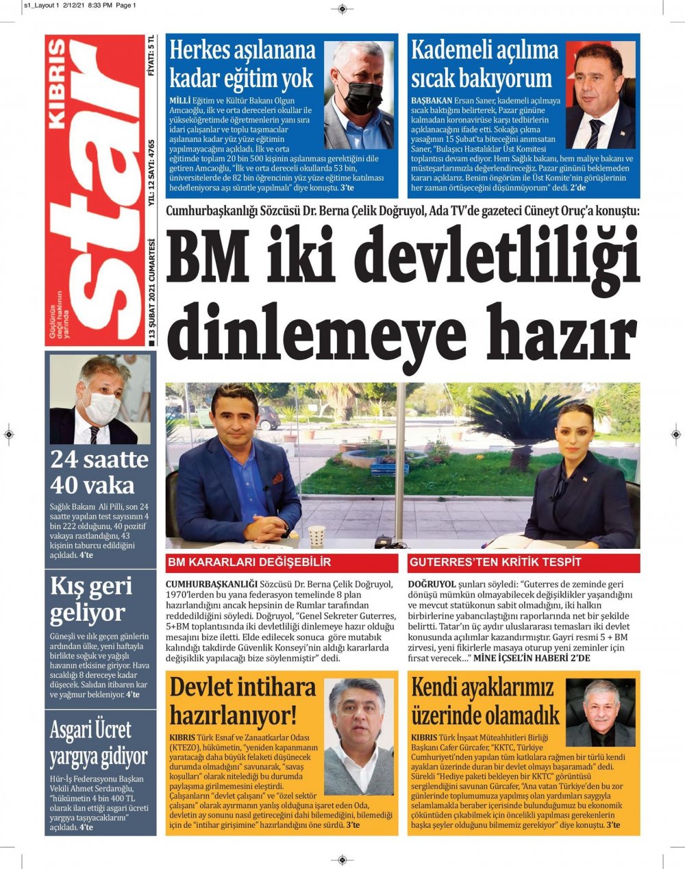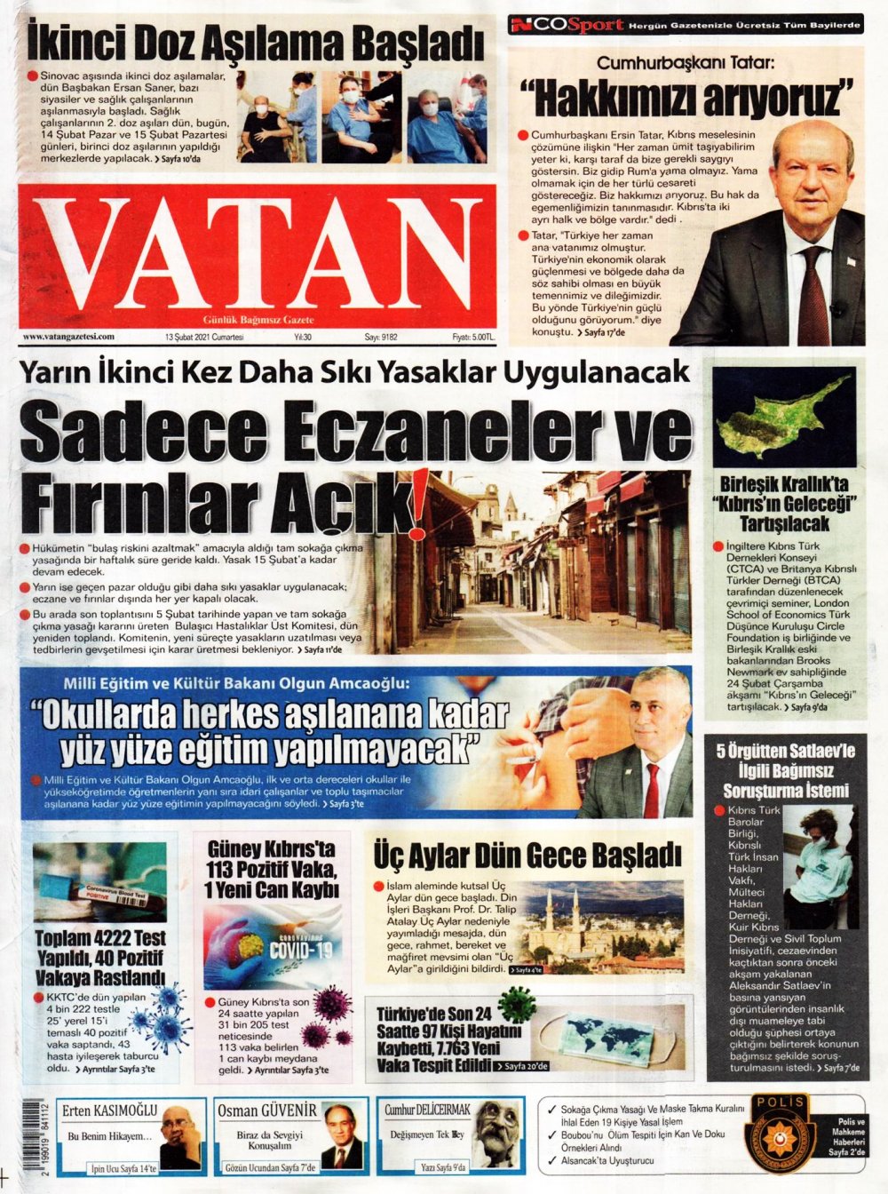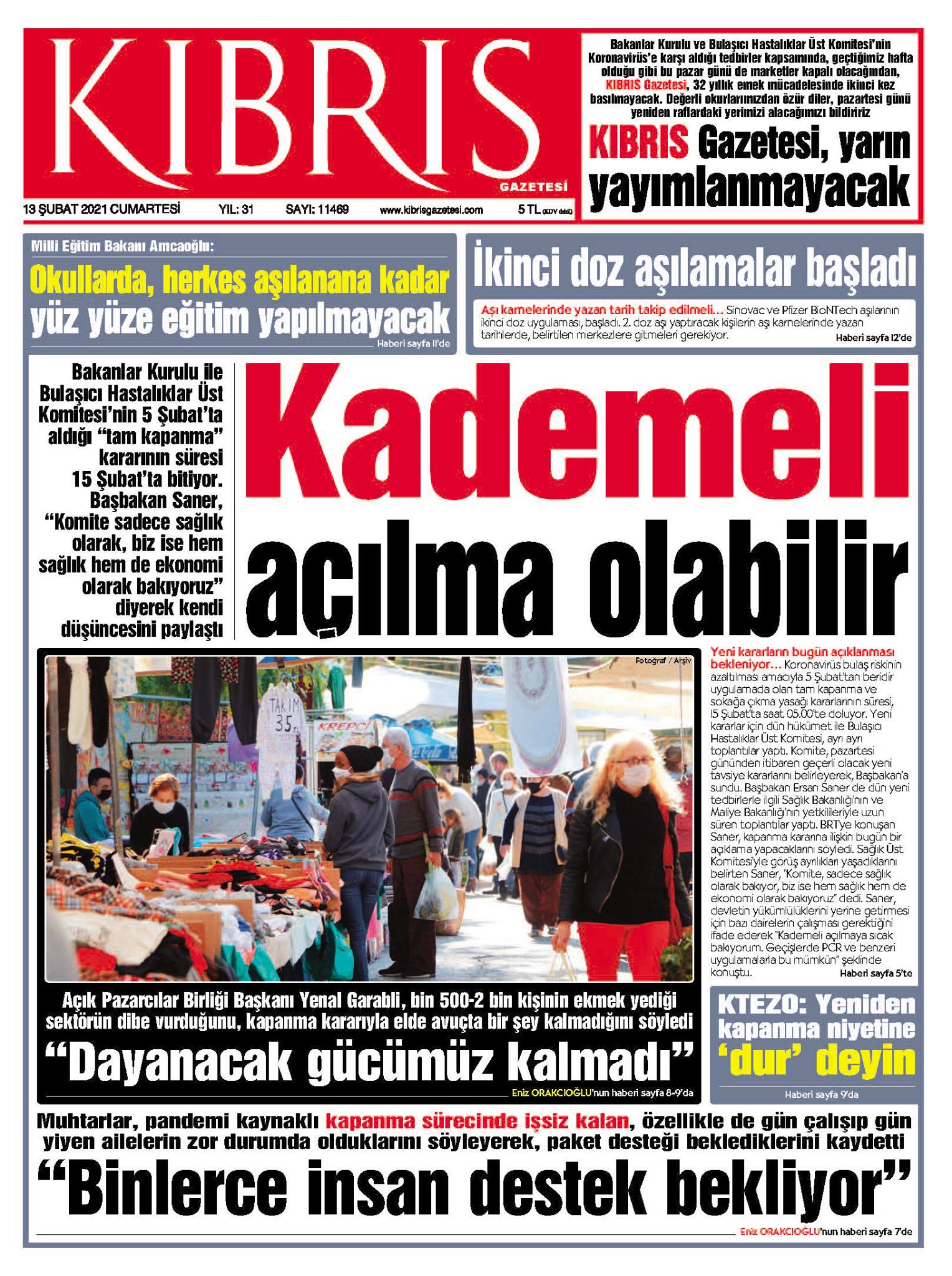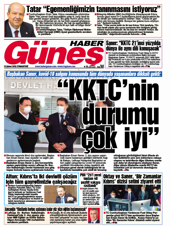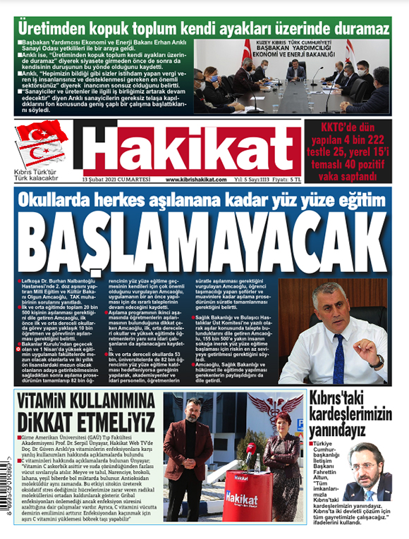 13 Şubat 2021 tarihinde KKTC’de yayınlanan gazete manşetleri