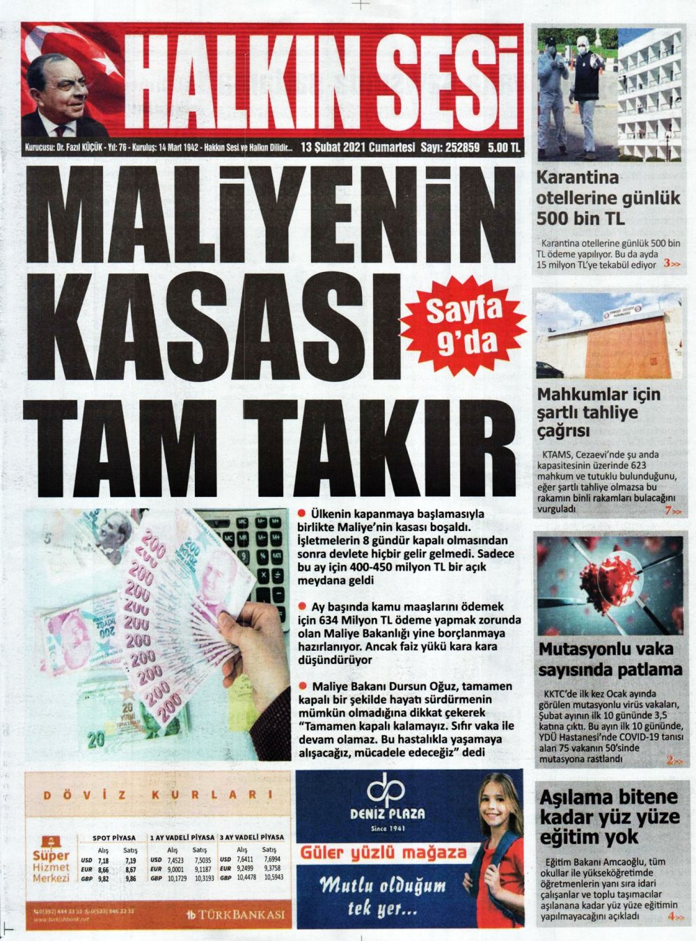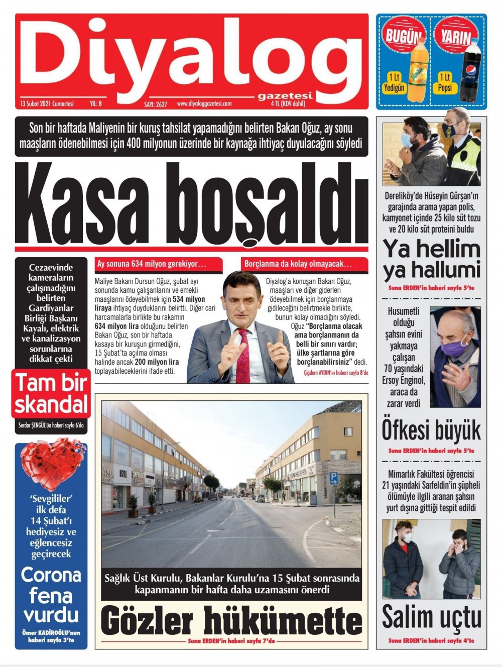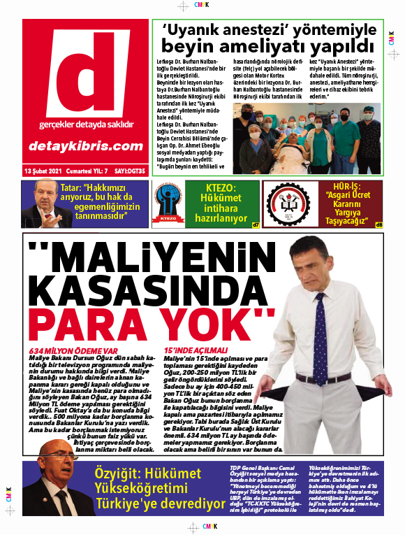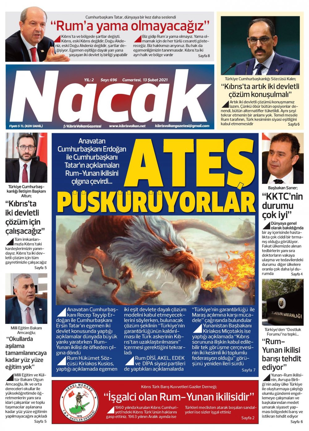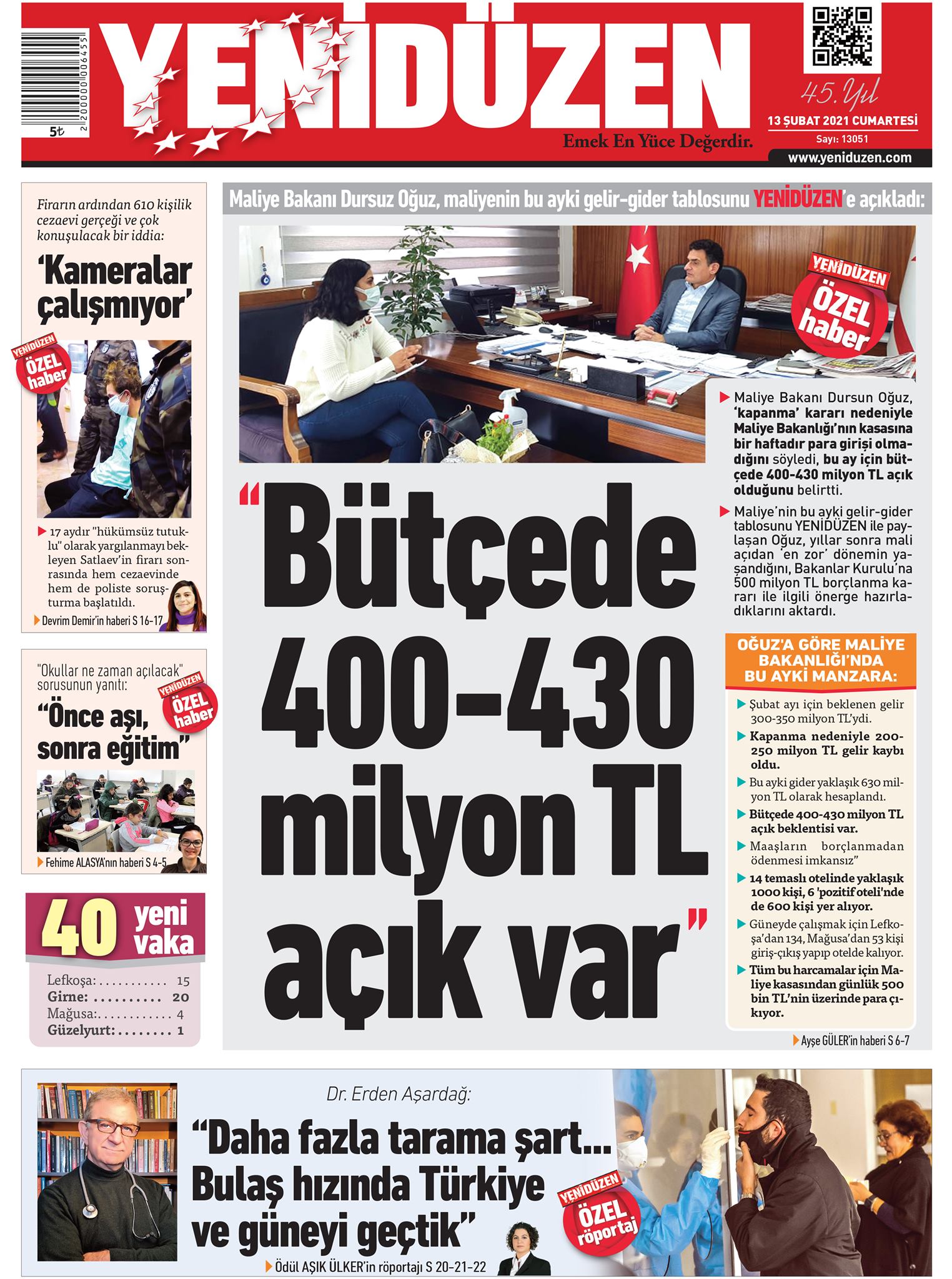 13 Şubat 2021 tarihinde KKTC’de yayınlanan gazete manşetleri