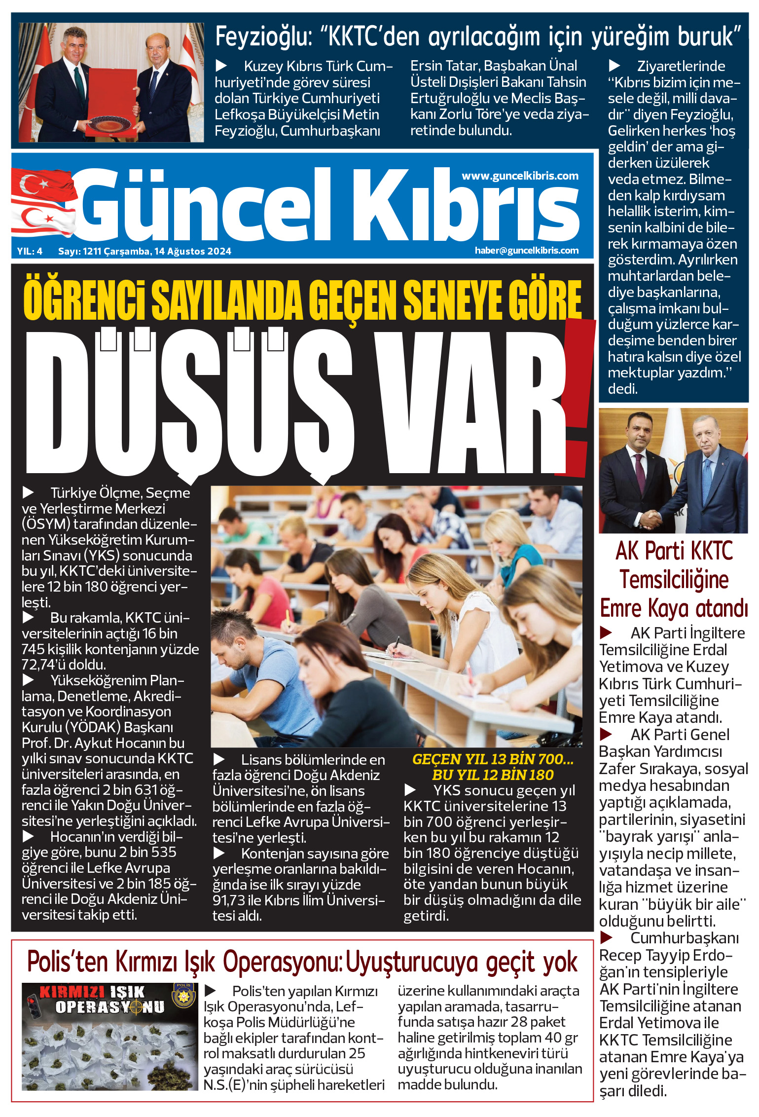 14 Ağustos 2024’te KKTC’de yayınlanan gazete manşetleri