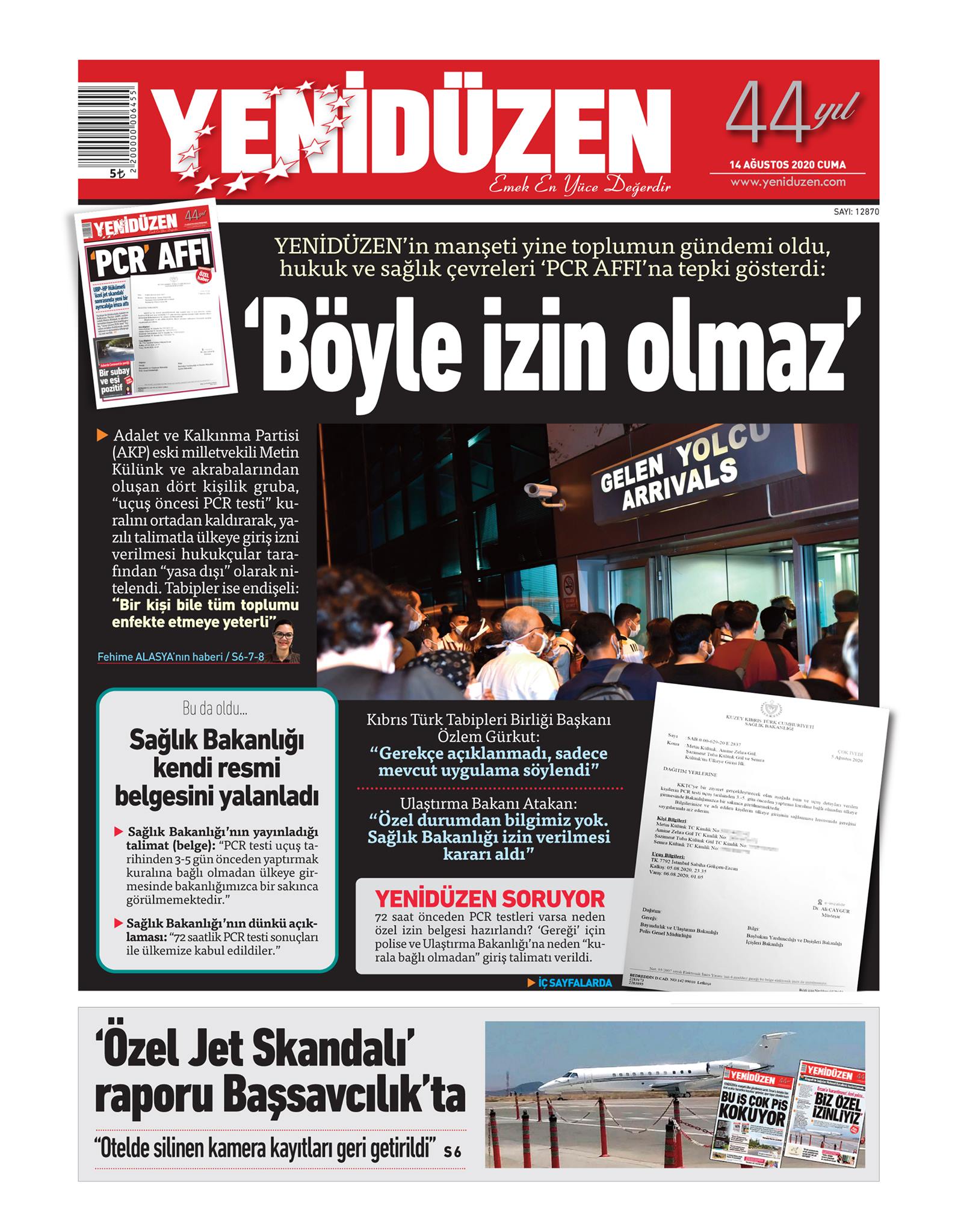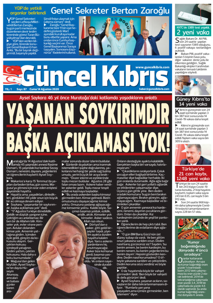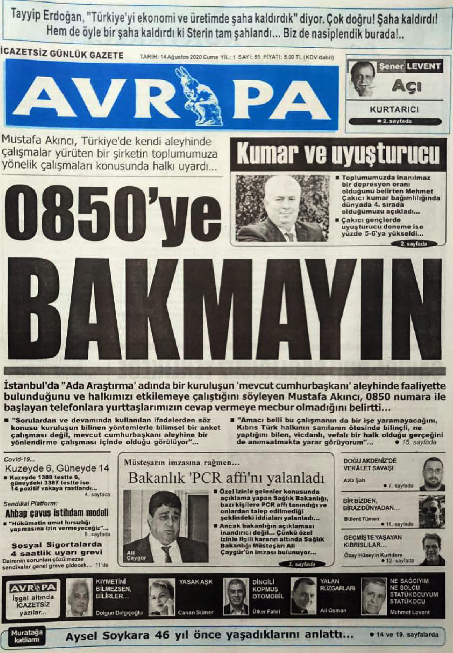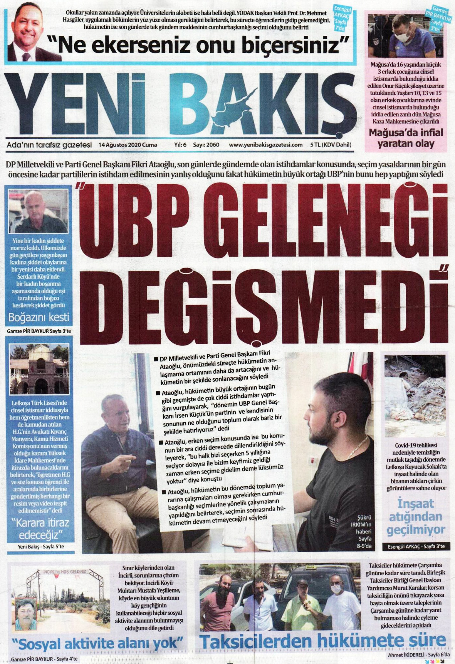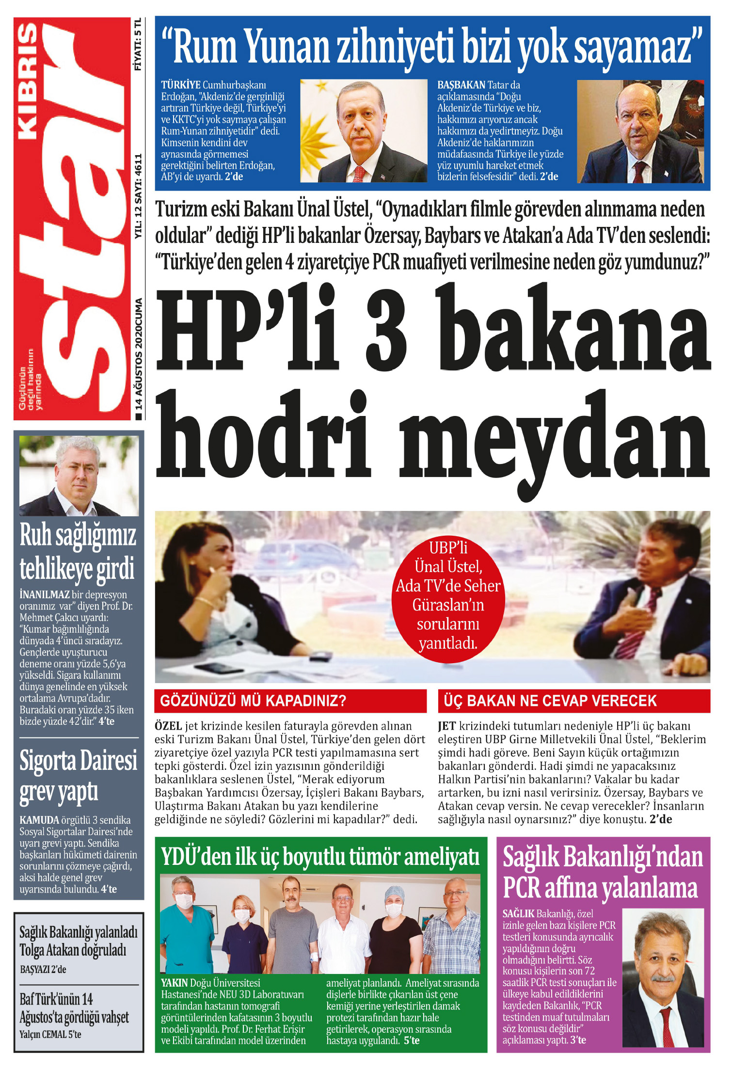14 Ağustos 2020 tarihinde KKTC yayınlanan gazete manşetleri