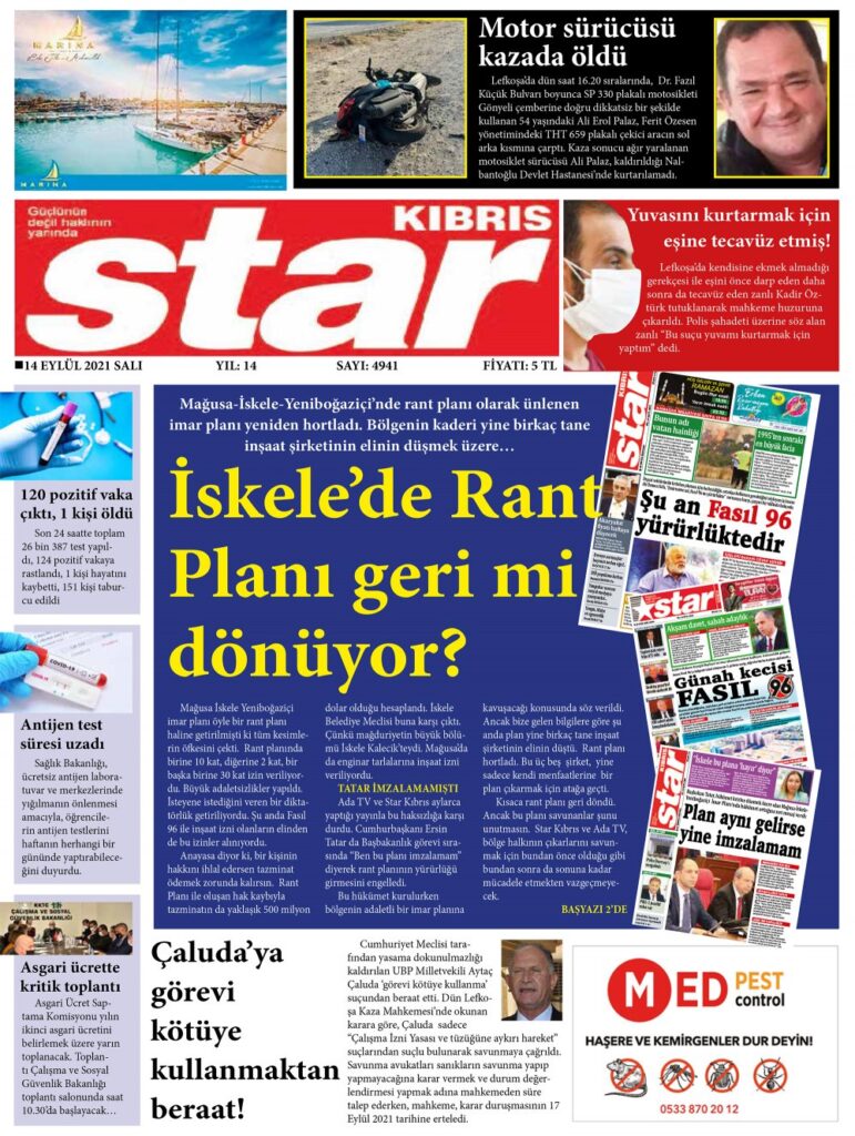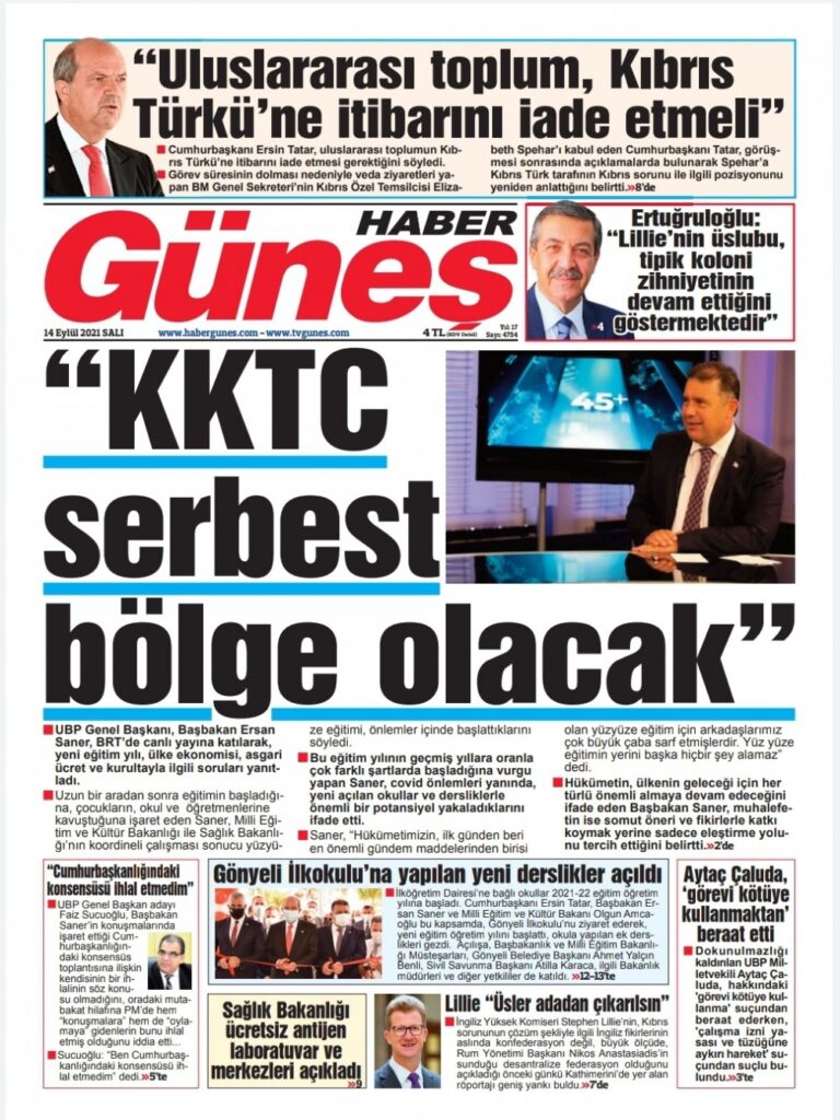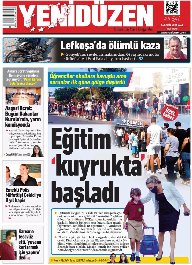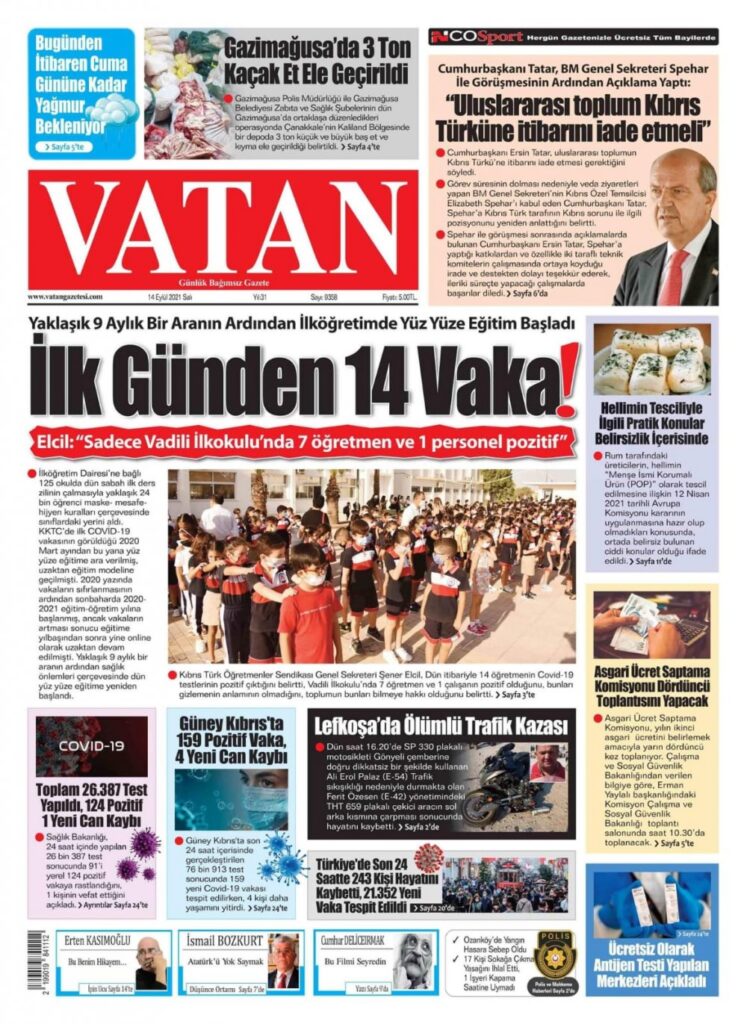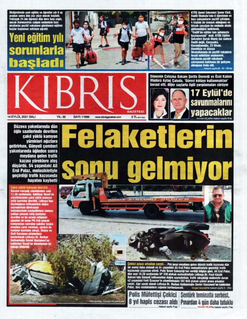 14 Eylül 2021’de KKTC’de yayınlanan gazete manşetleri