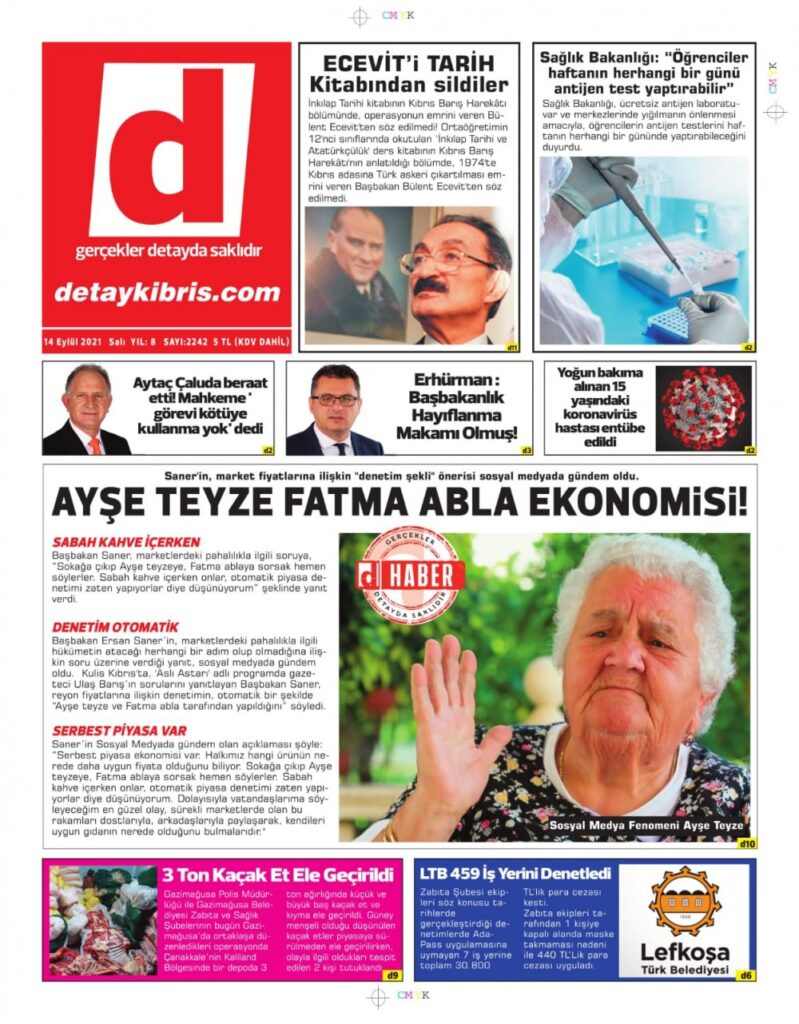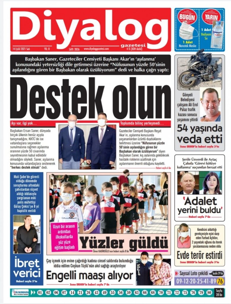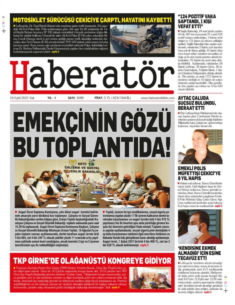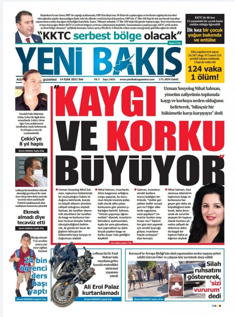 14 Eylül 2021’de KKTC’de yayınlanan gazete manşetleri