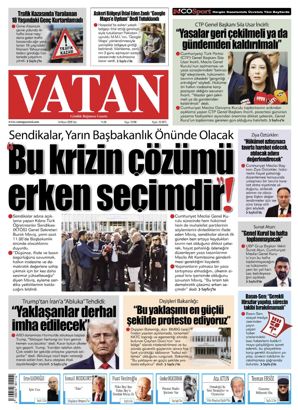 14 Nisan Gazete Manşetleri