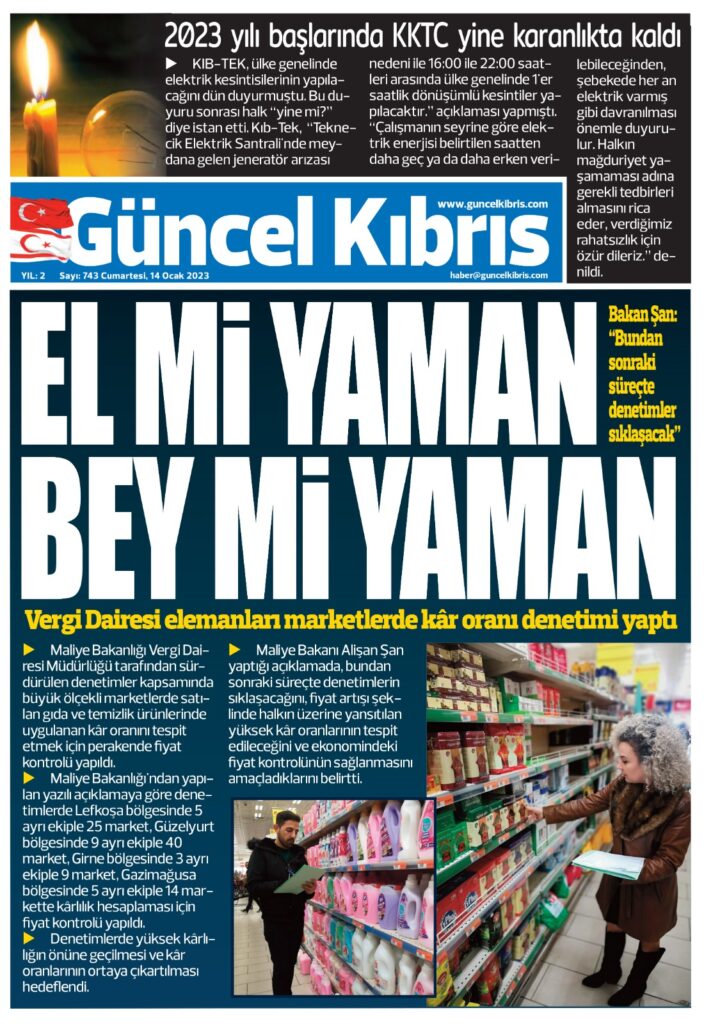 14 Ocak 2022’de KKTC’de yayınlanan gazete manşetleri