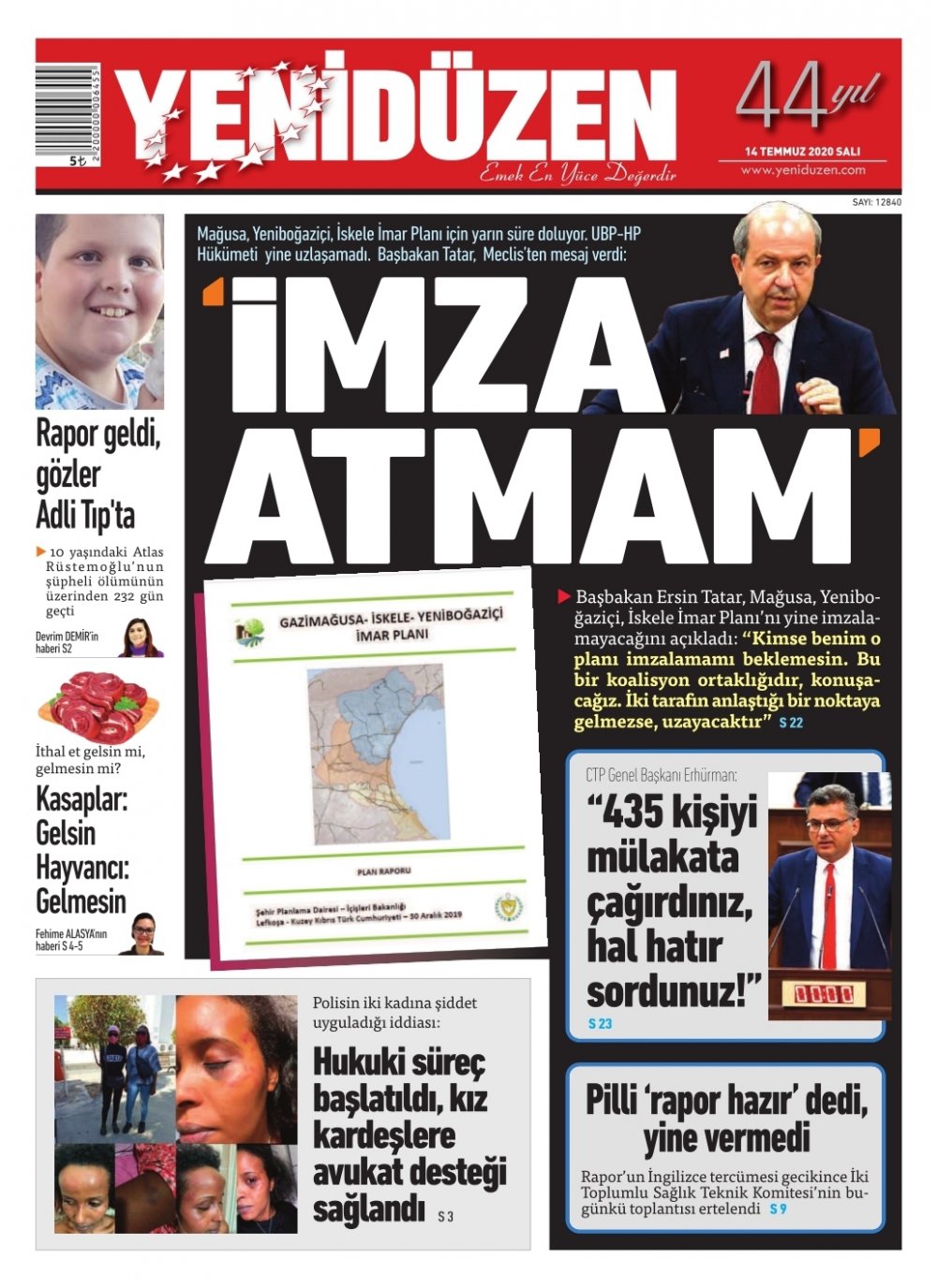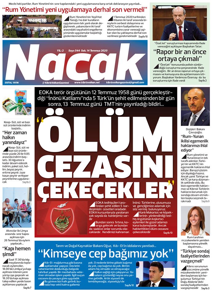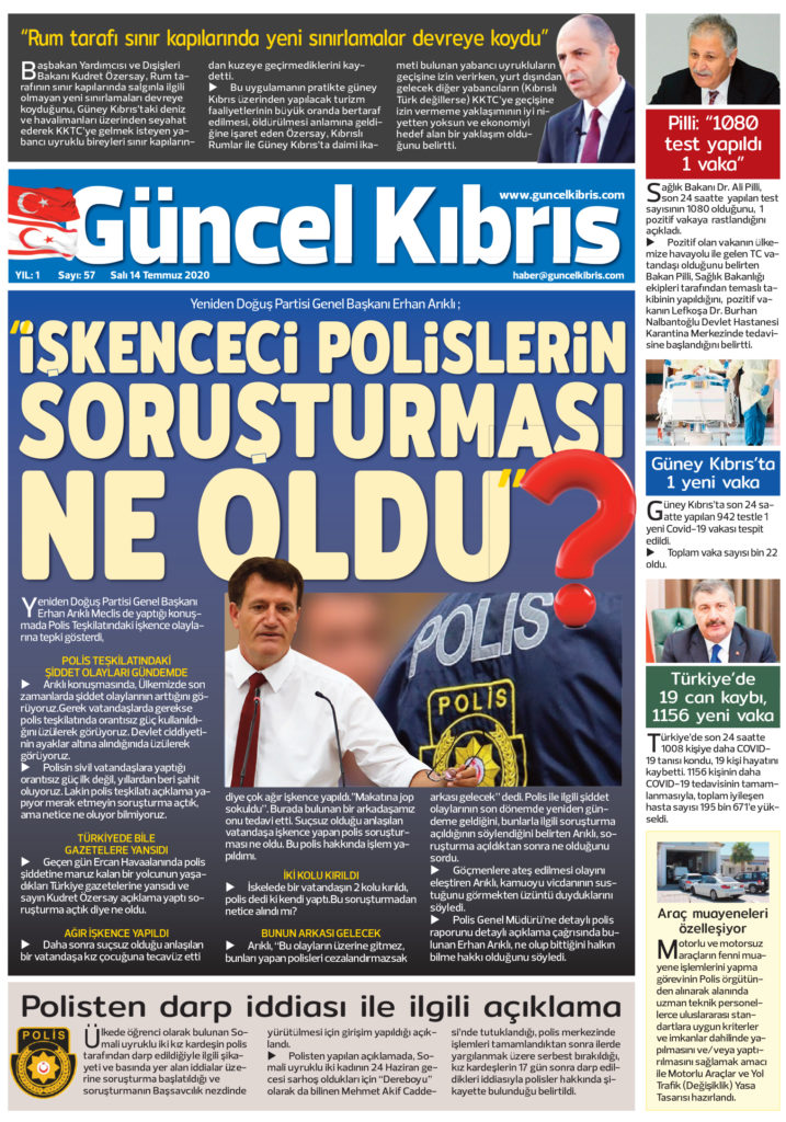 14 Temmuz 2020 tarihinde KKTC yayınlanan gazete manşetleri