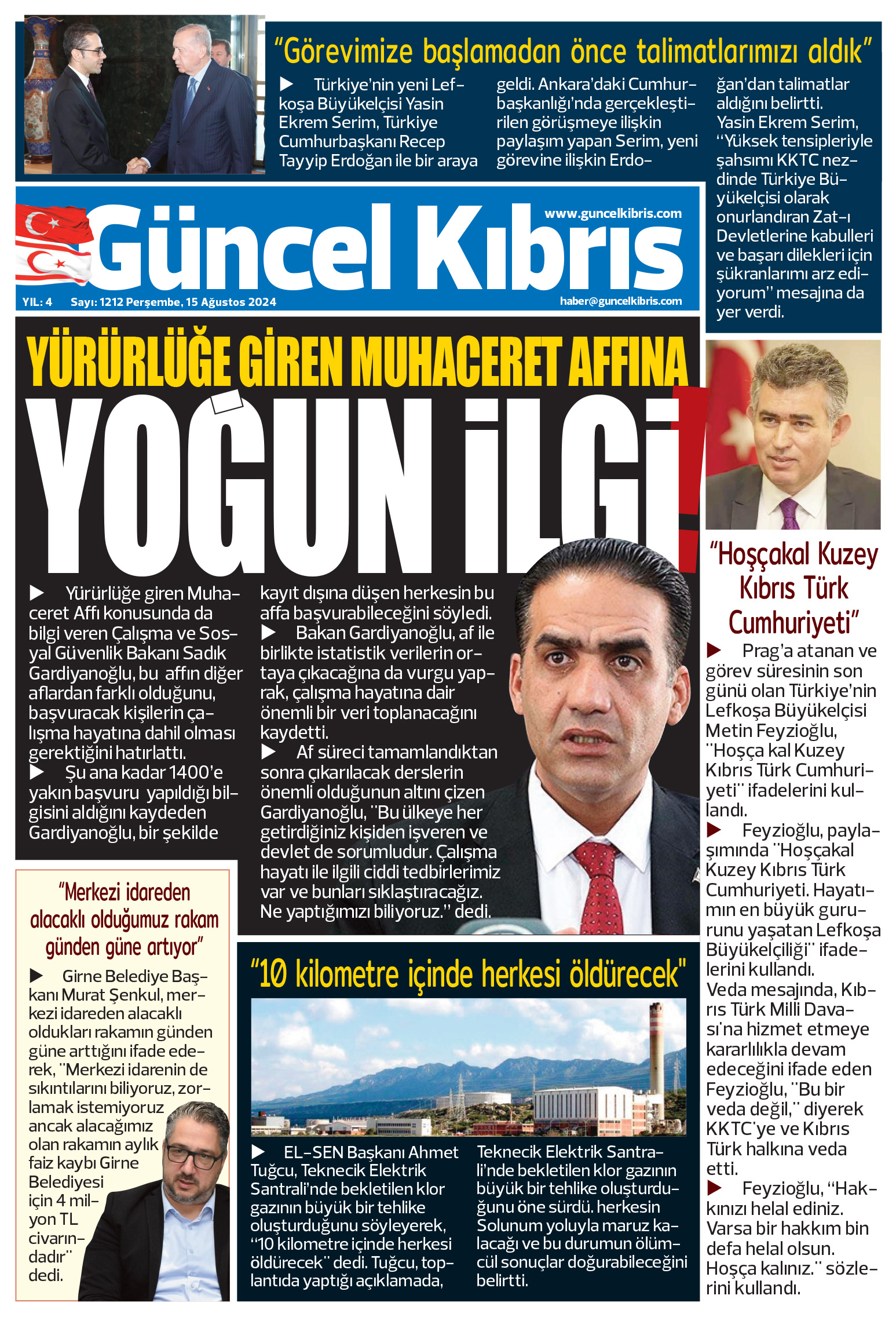 15 Ağustos 2024’te KKTC’de yayınlanan gazete manşetleri