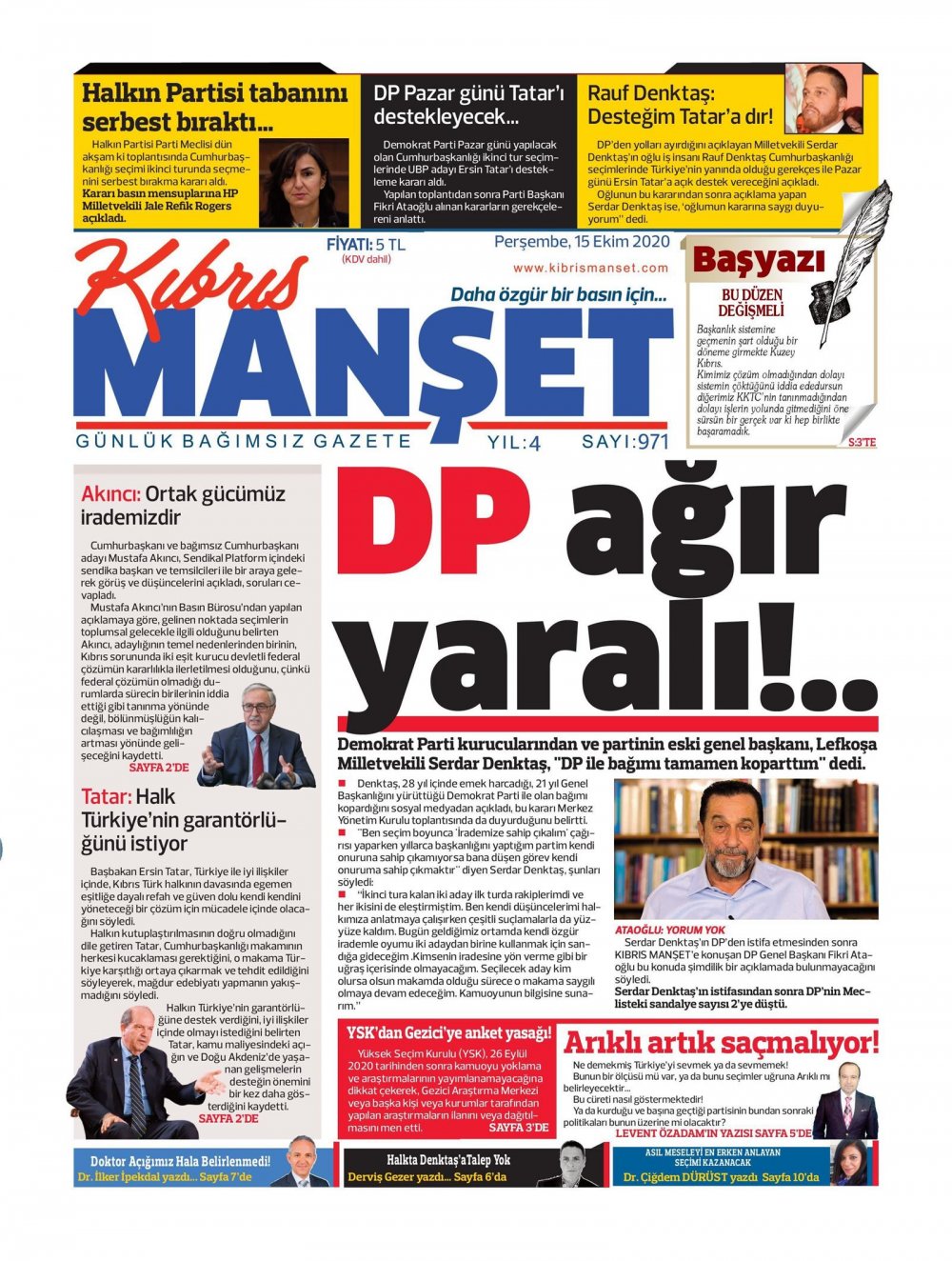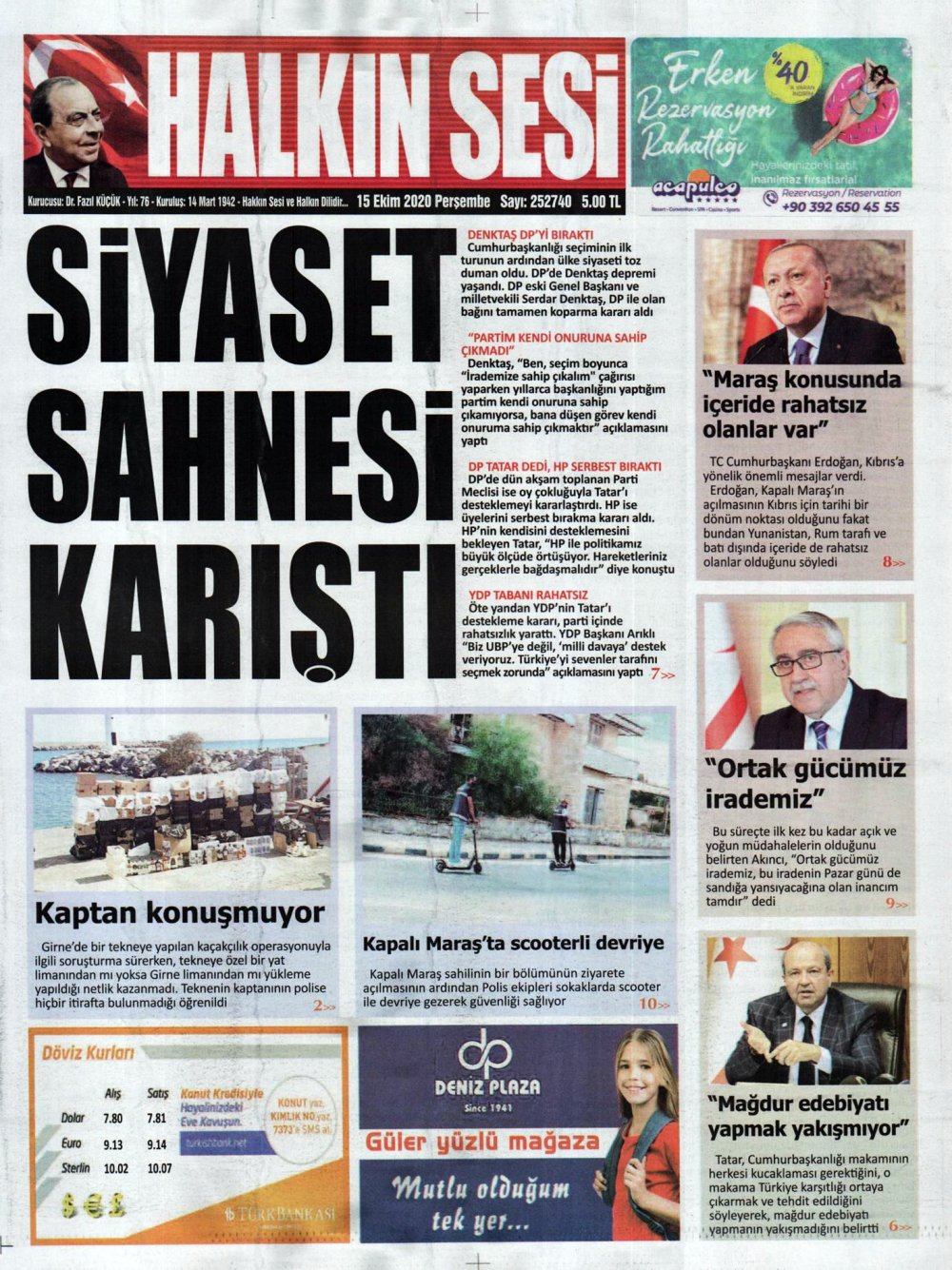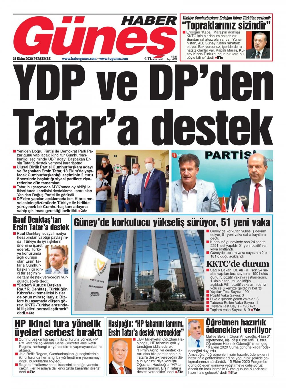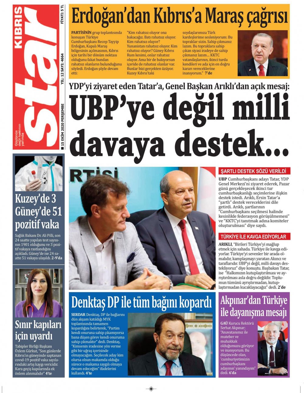 15 Ekim 2020 tarihinde KKTC’de yayınlanan gazete manşetleri