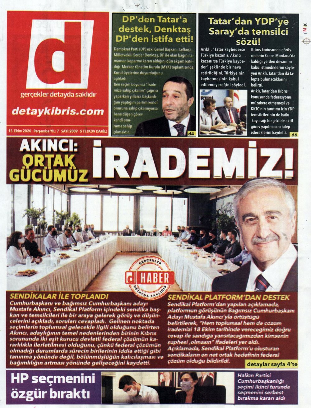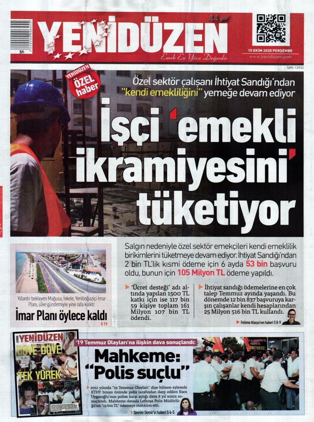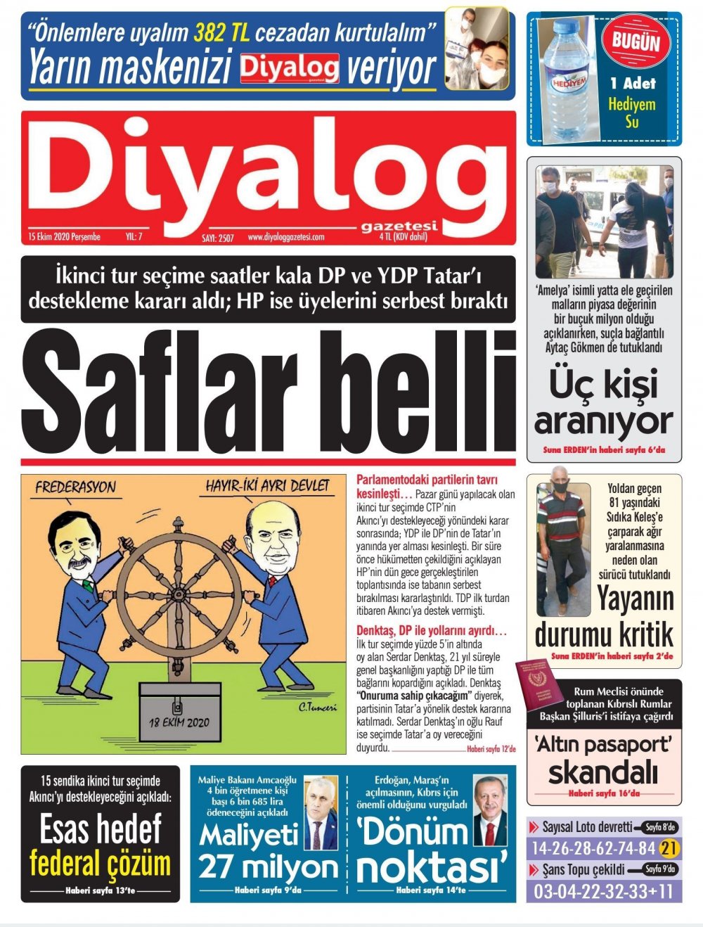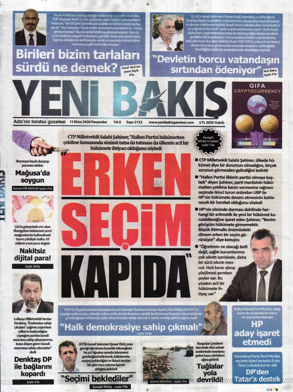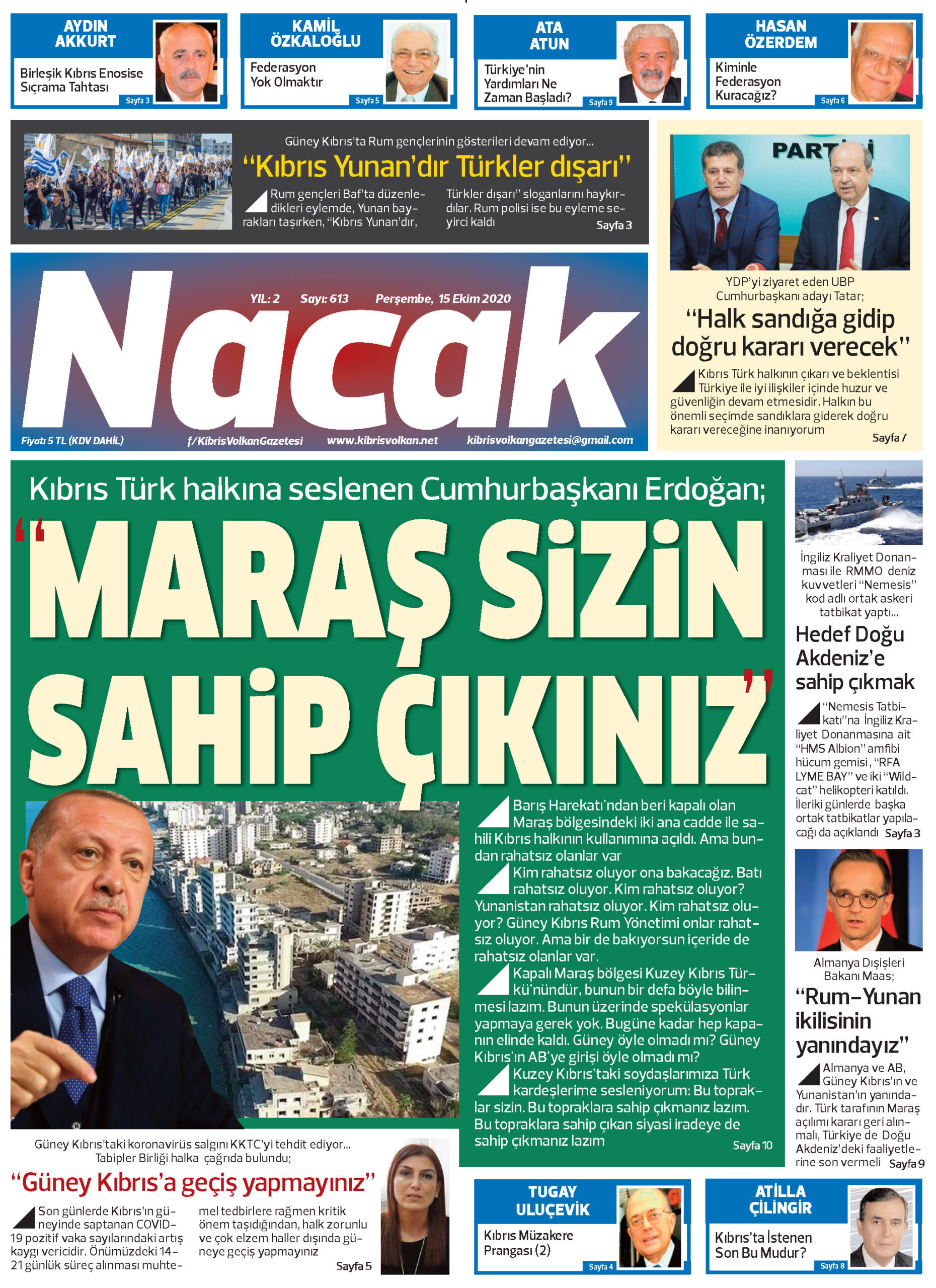 15 Ekim 2020 tarihinde KKTC’de yayınlanan gazete manşetleri
