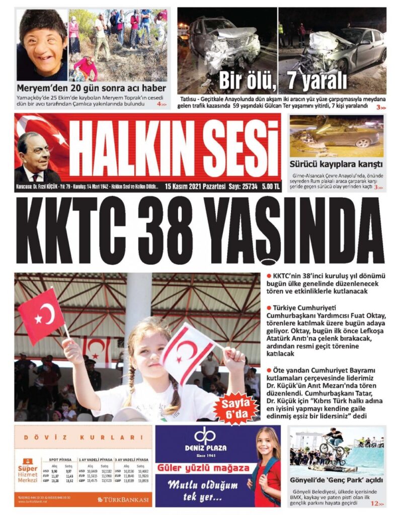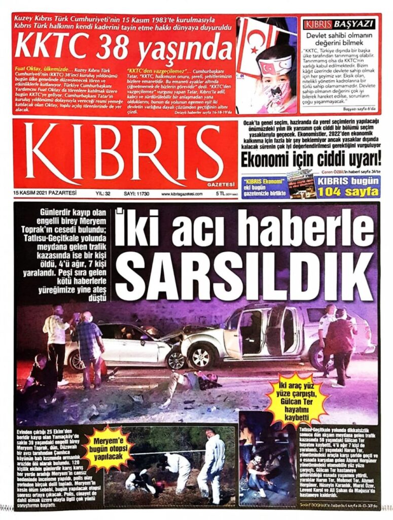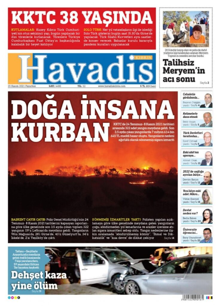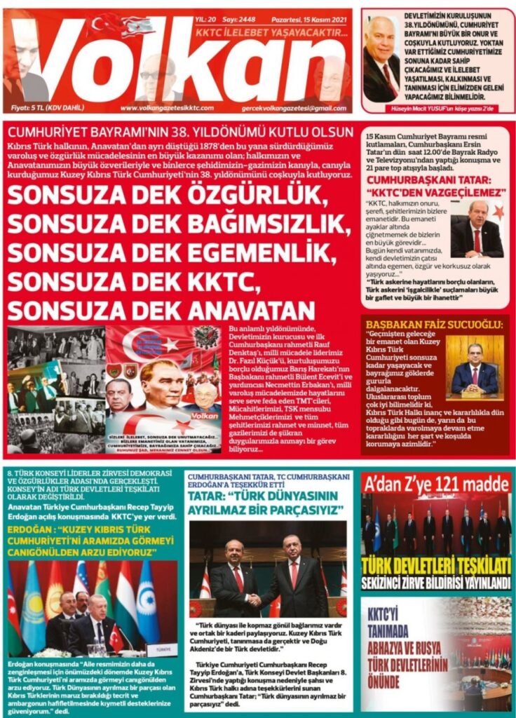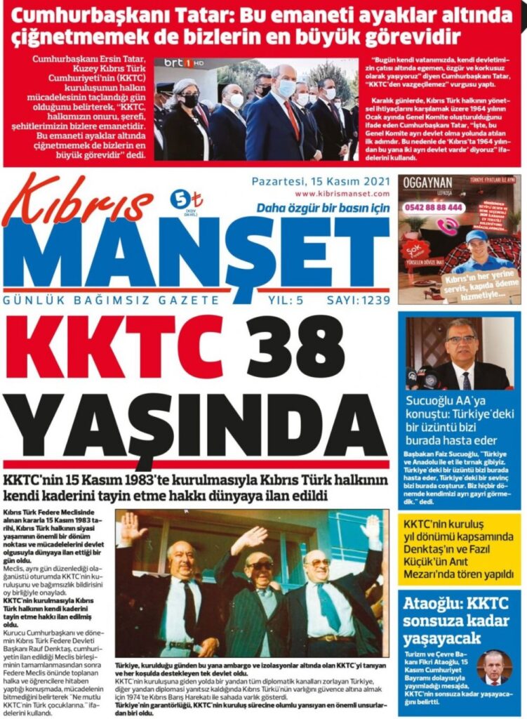 15 Kasım 2021’de KKTC’de yayınlanan gazete manşetleri