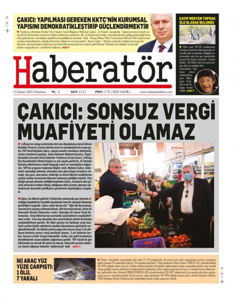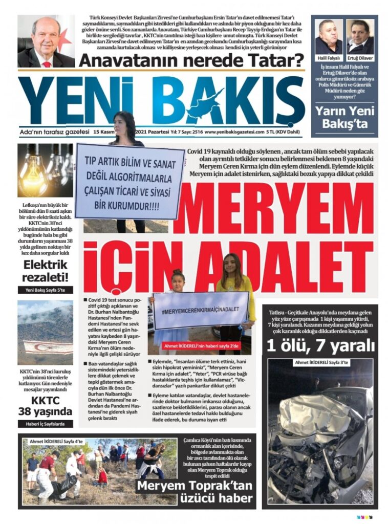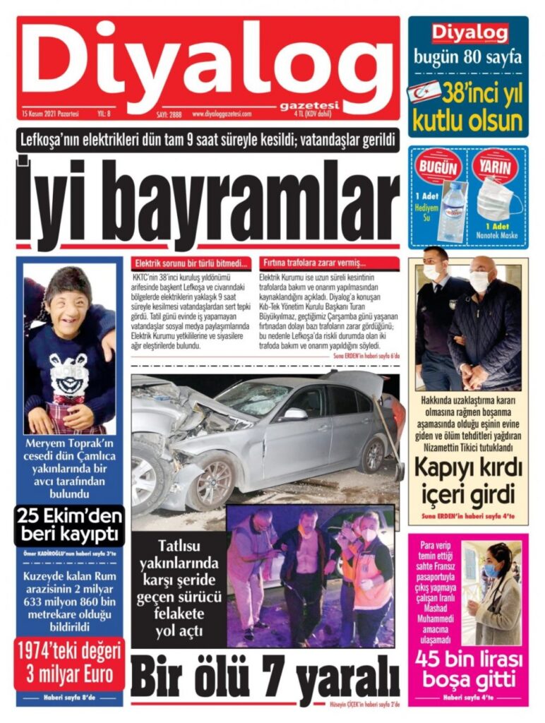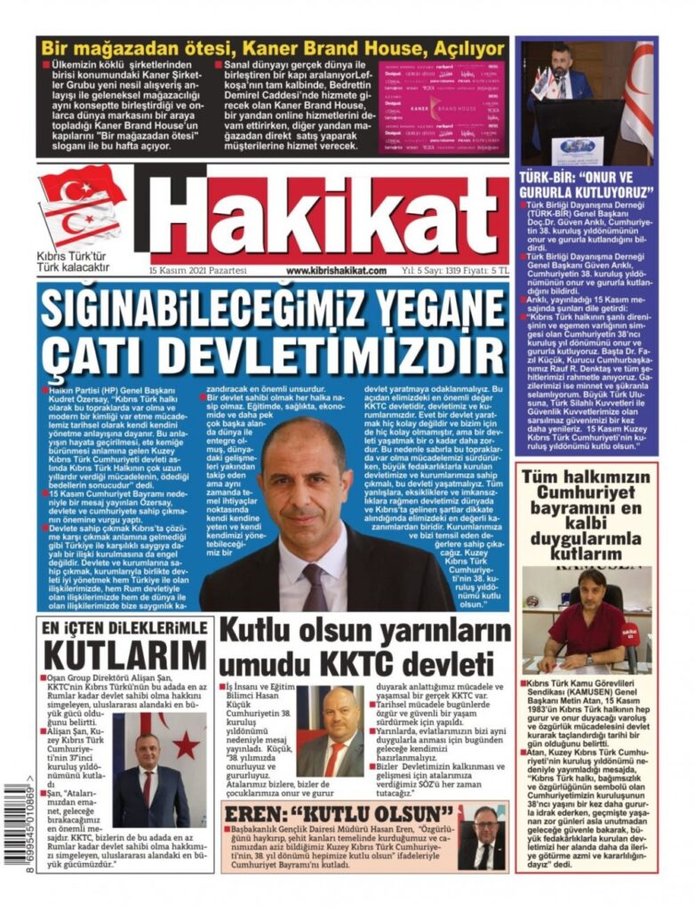 15 Kasım 2021’de KKTC’de yayınlanan gazete manşetleri