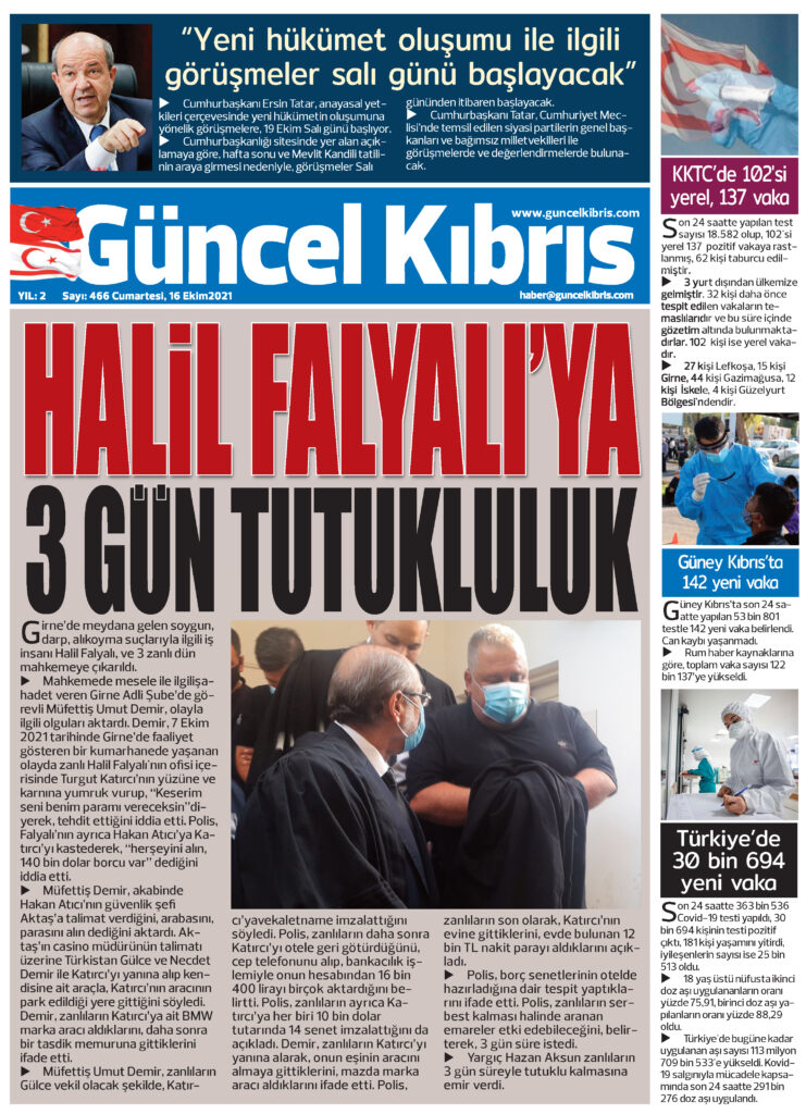 16 Ekim 2021’de KKTC’de yayınlanan gazete manşetleri