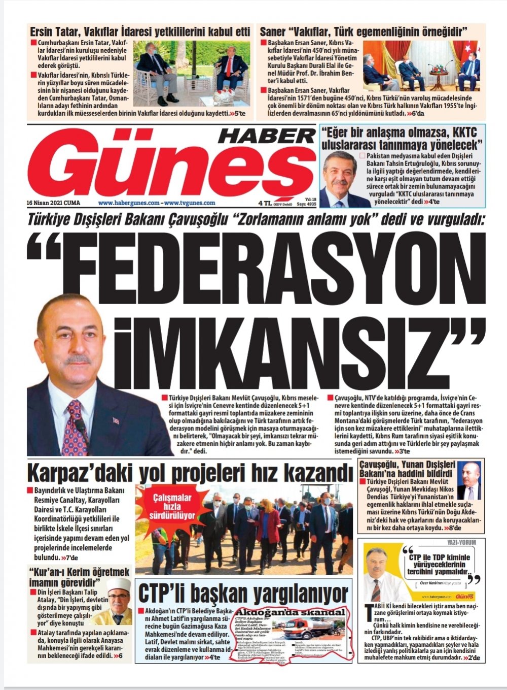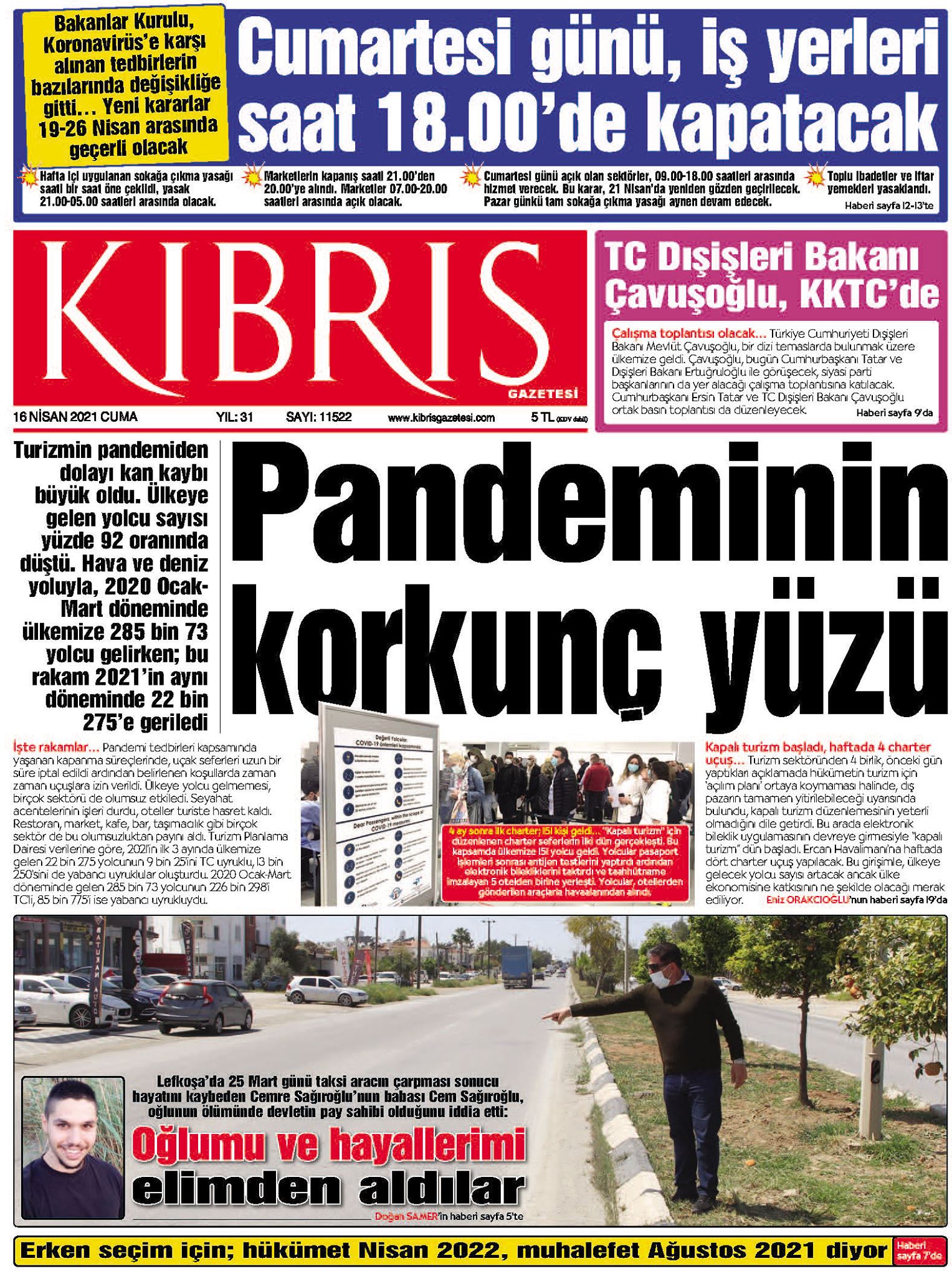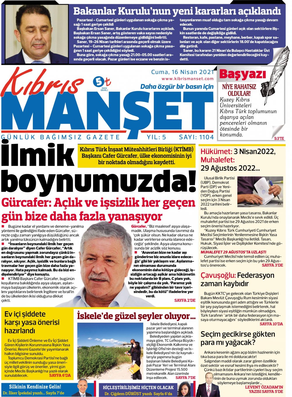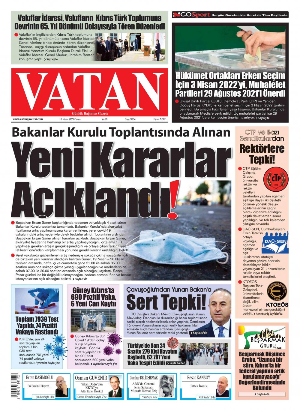 16 Nisan 2021’de KKTC’de yayınlanan gazete manşetleri