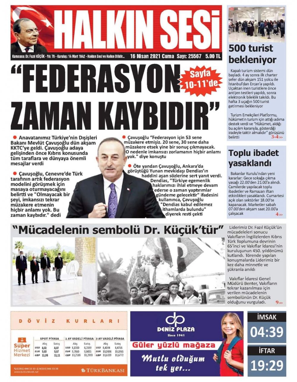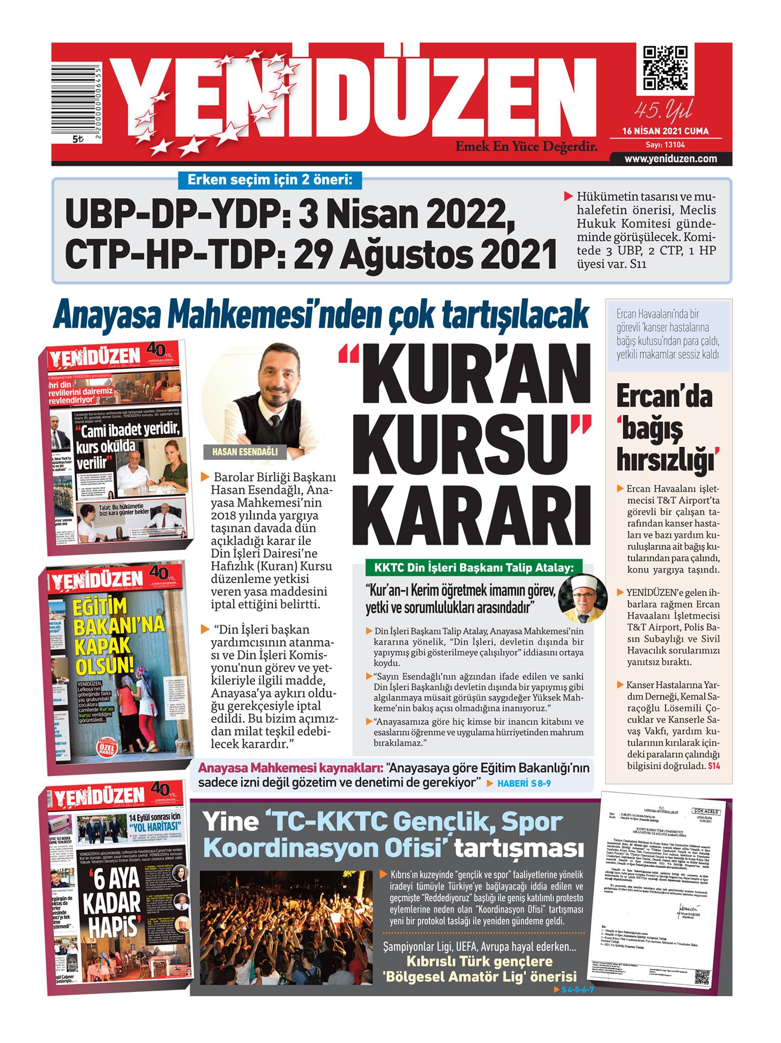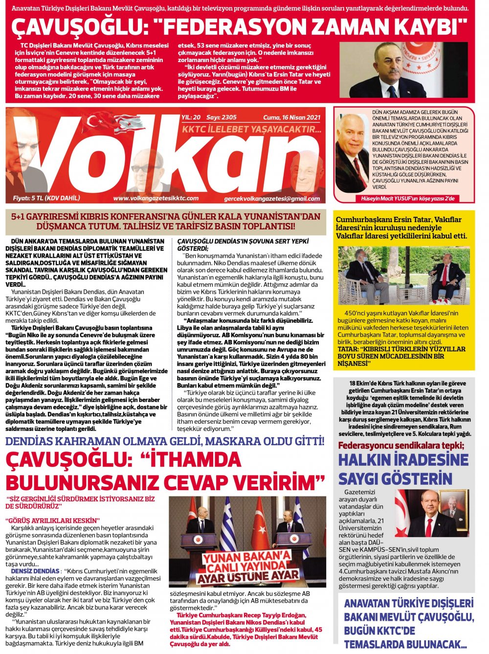 16 Nisan 2021’de KKTC’de yayınlanan gazete manşetleri