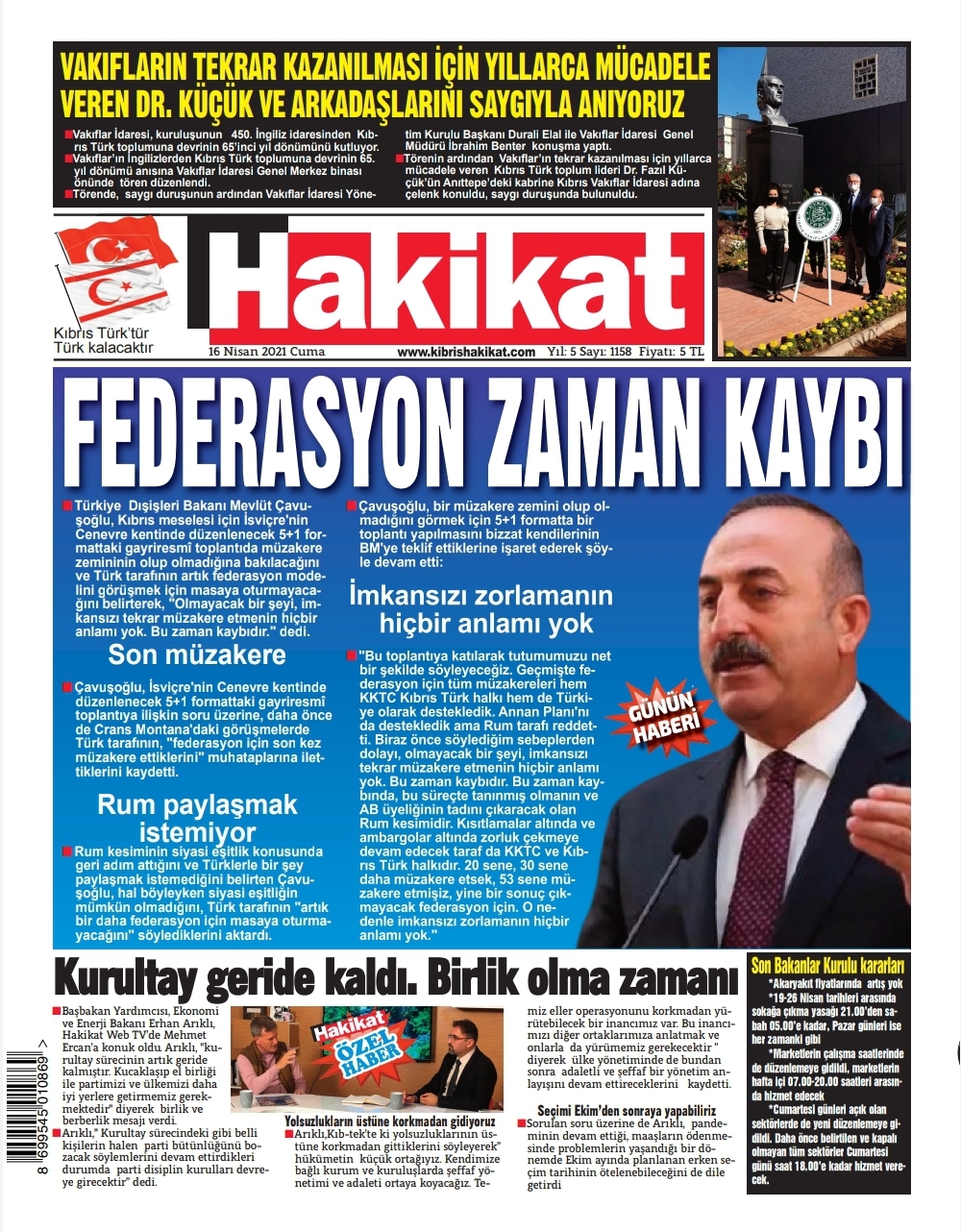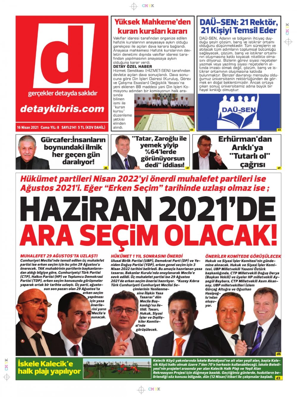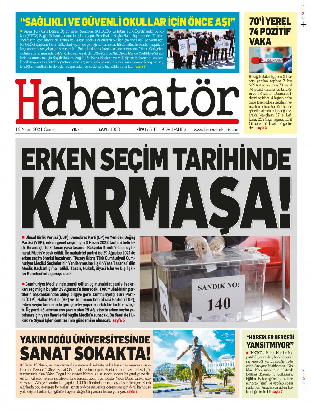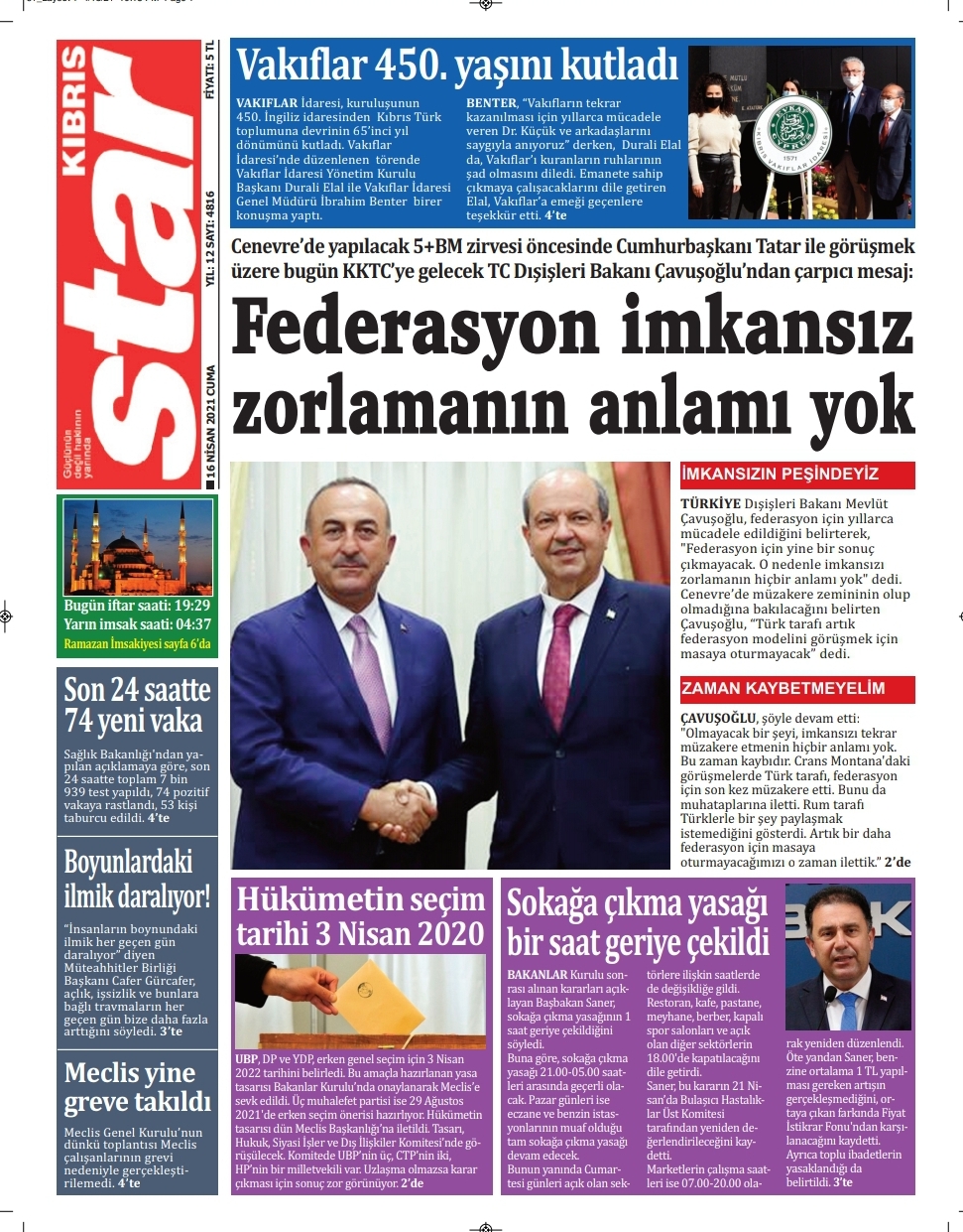 16 Nisan 2021’de KKTC’de yayınlanan gazete manşetleri