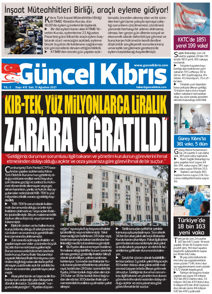 17 Ağustos 2021’de KKTC’de yayınlanan gazete manşetleri