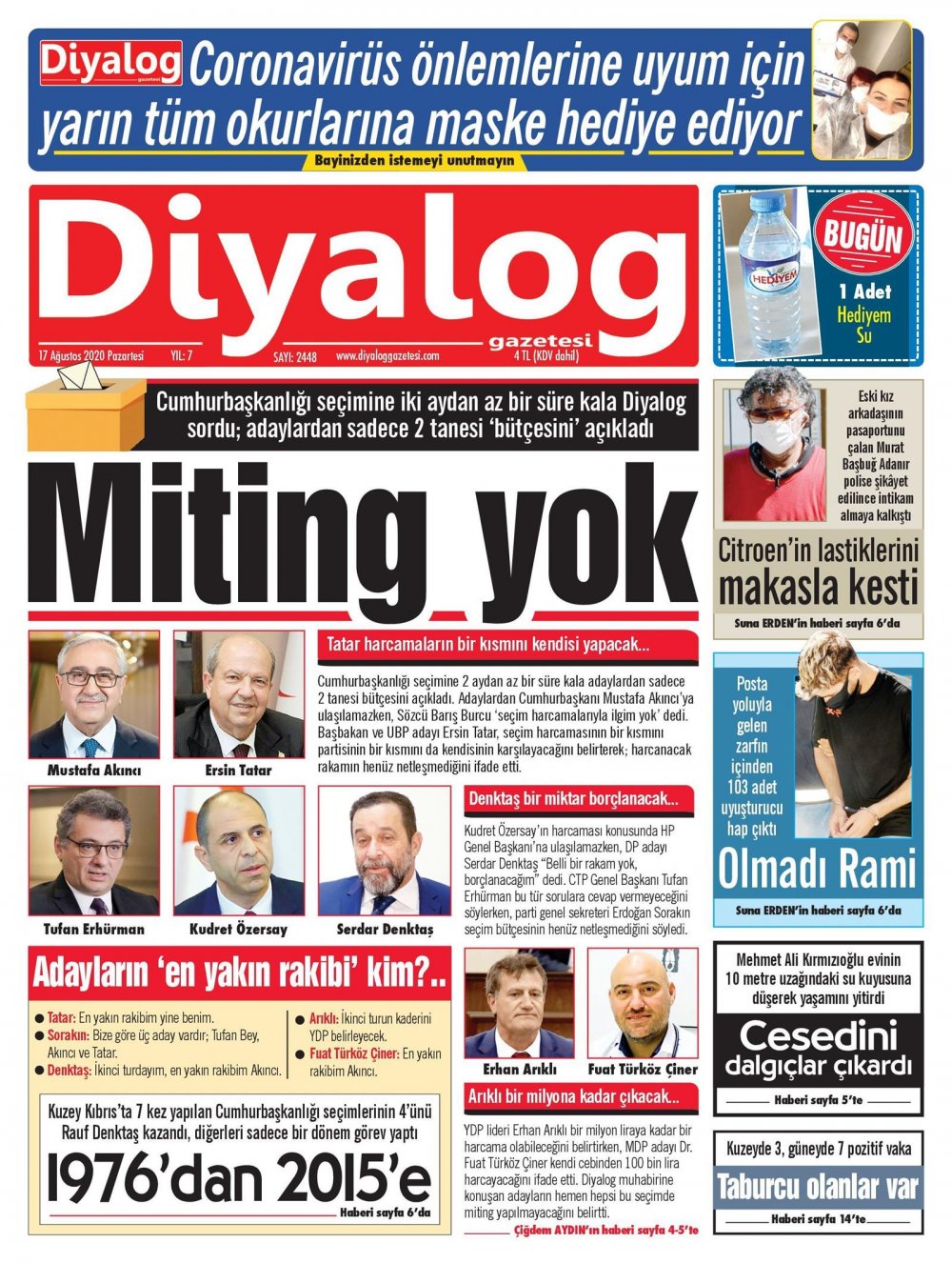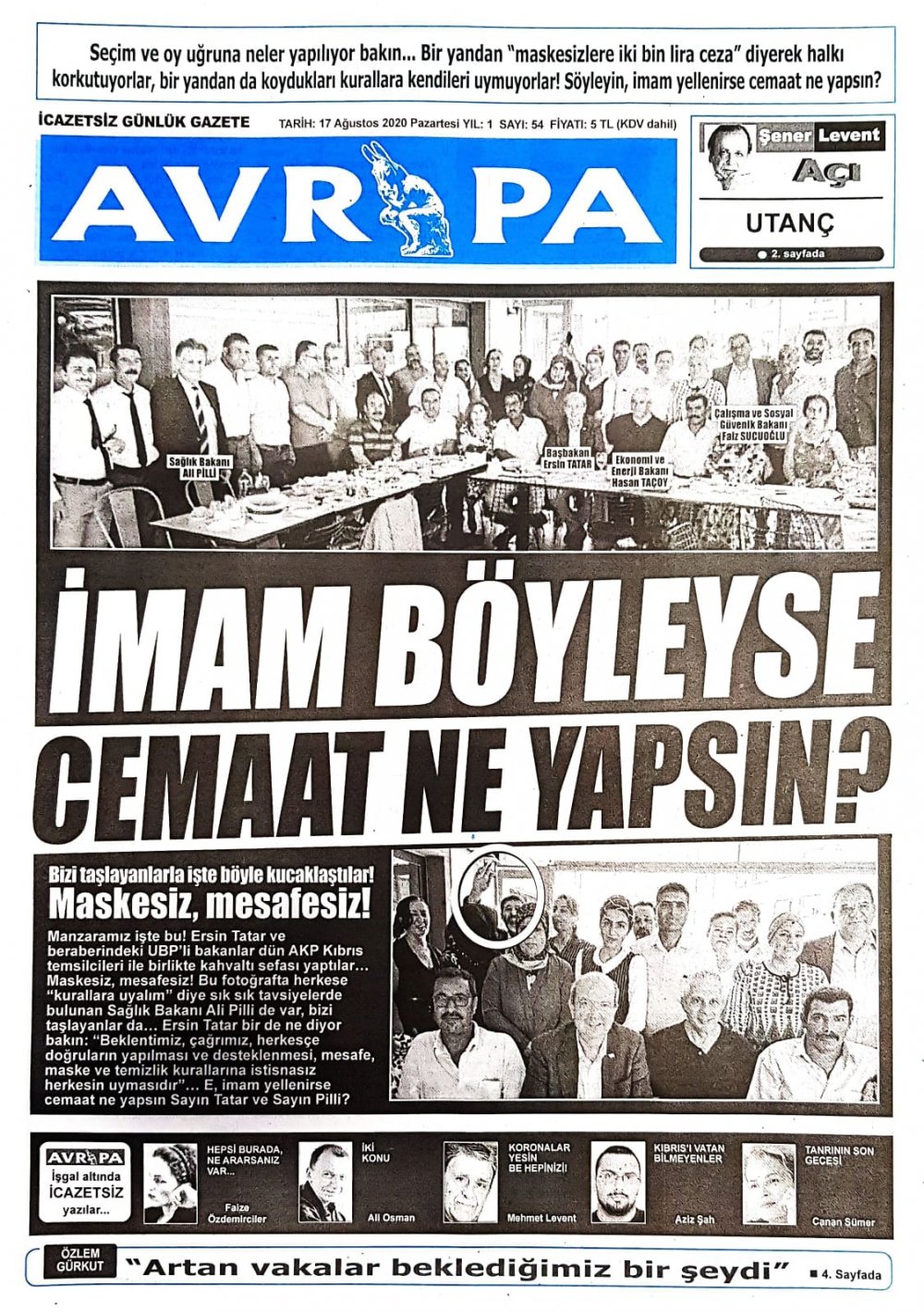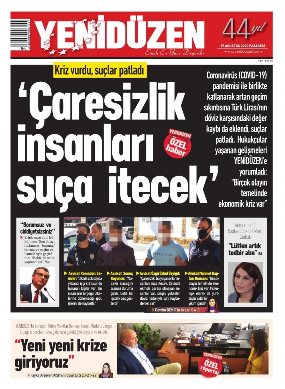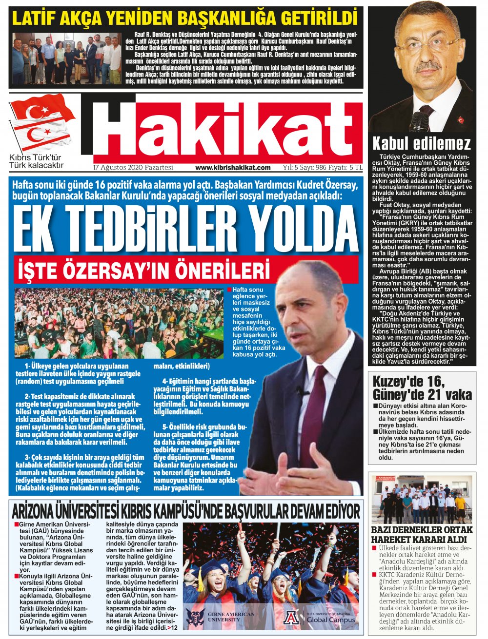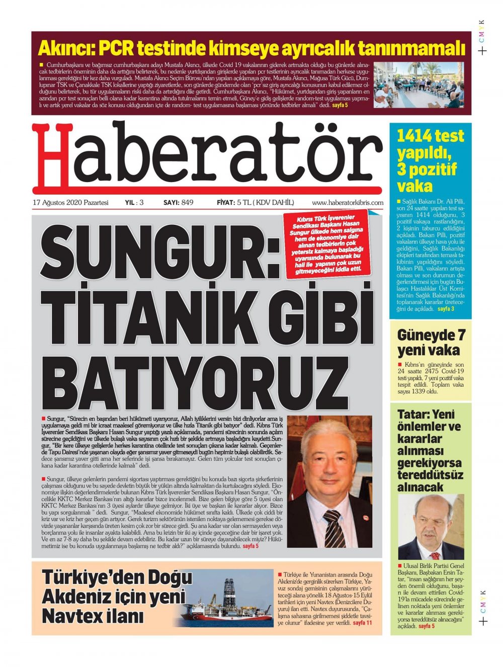 17 Ağustos 2020 tarihinde KKTC yayınlanan gazete manşetleri