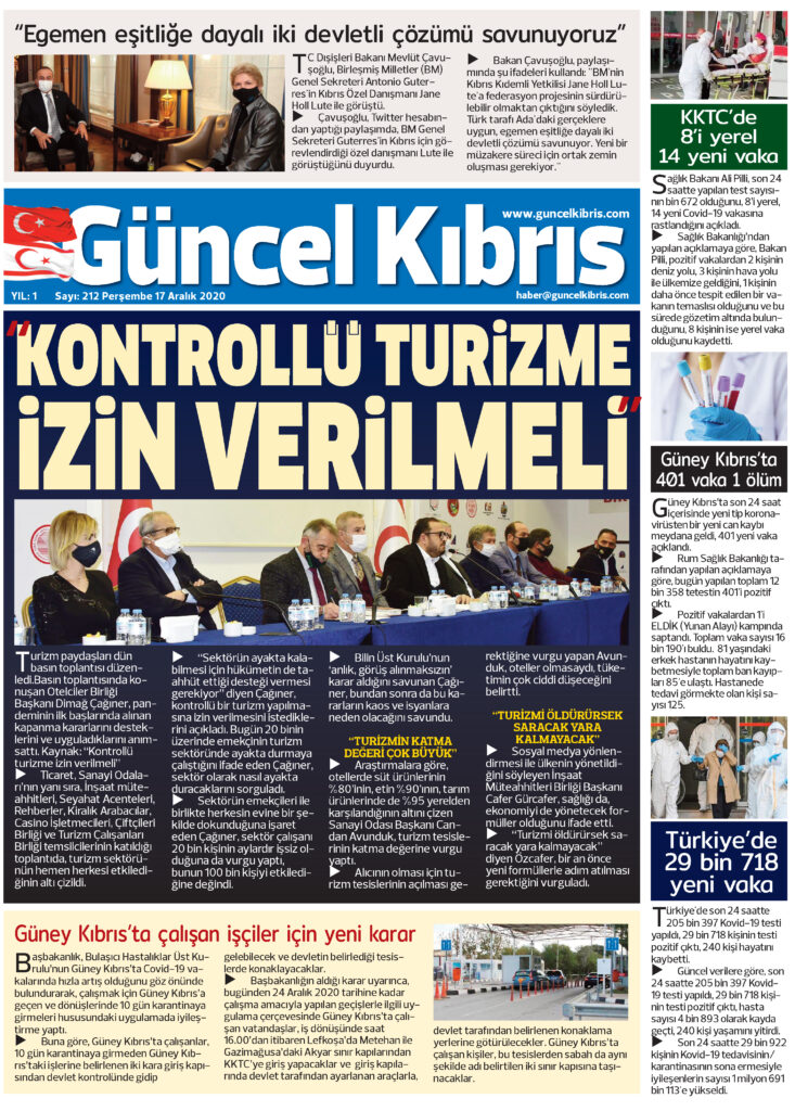 17 Aralık 2020 tarihinde KKTC’de yayınlanan gazete manşetleri