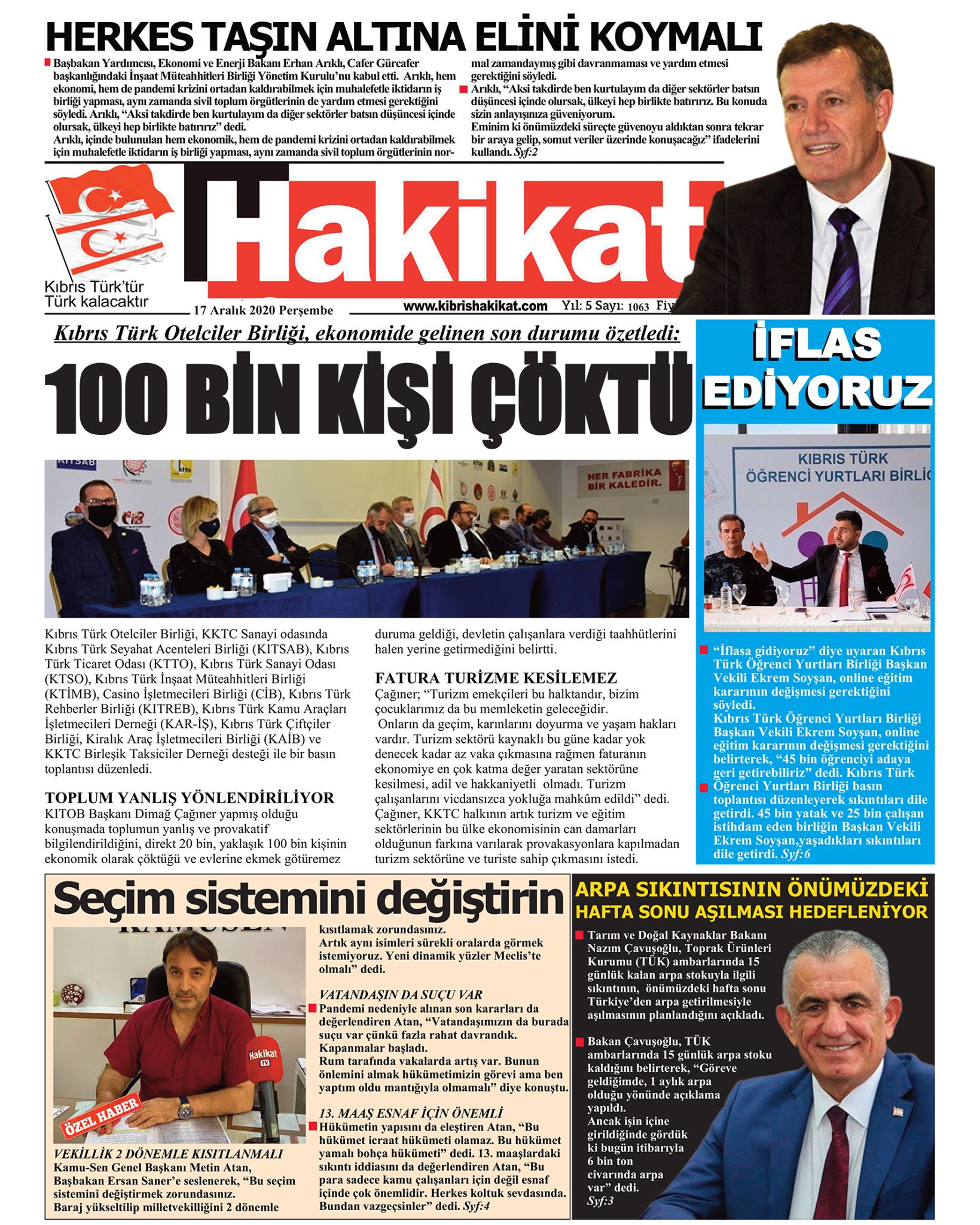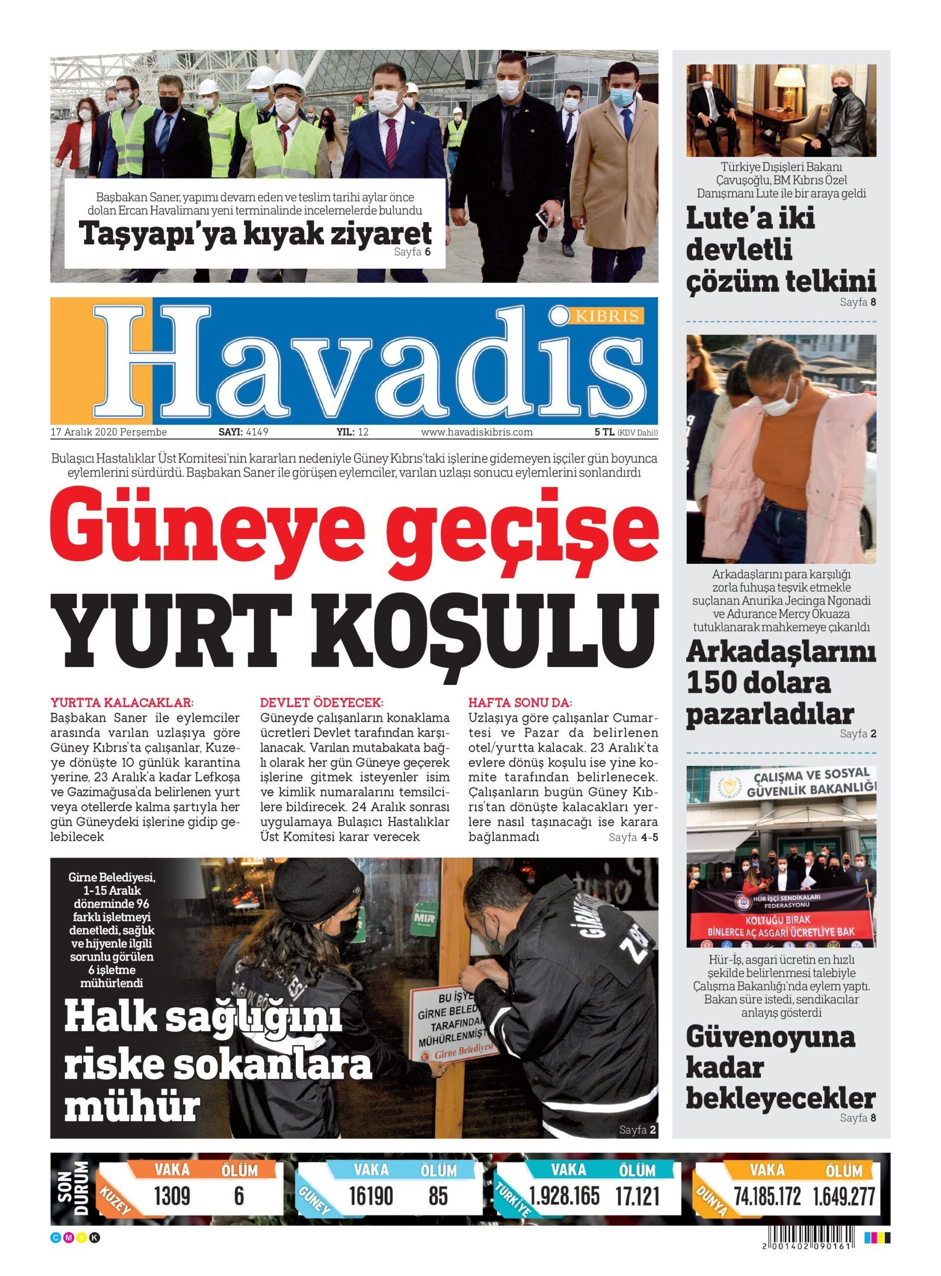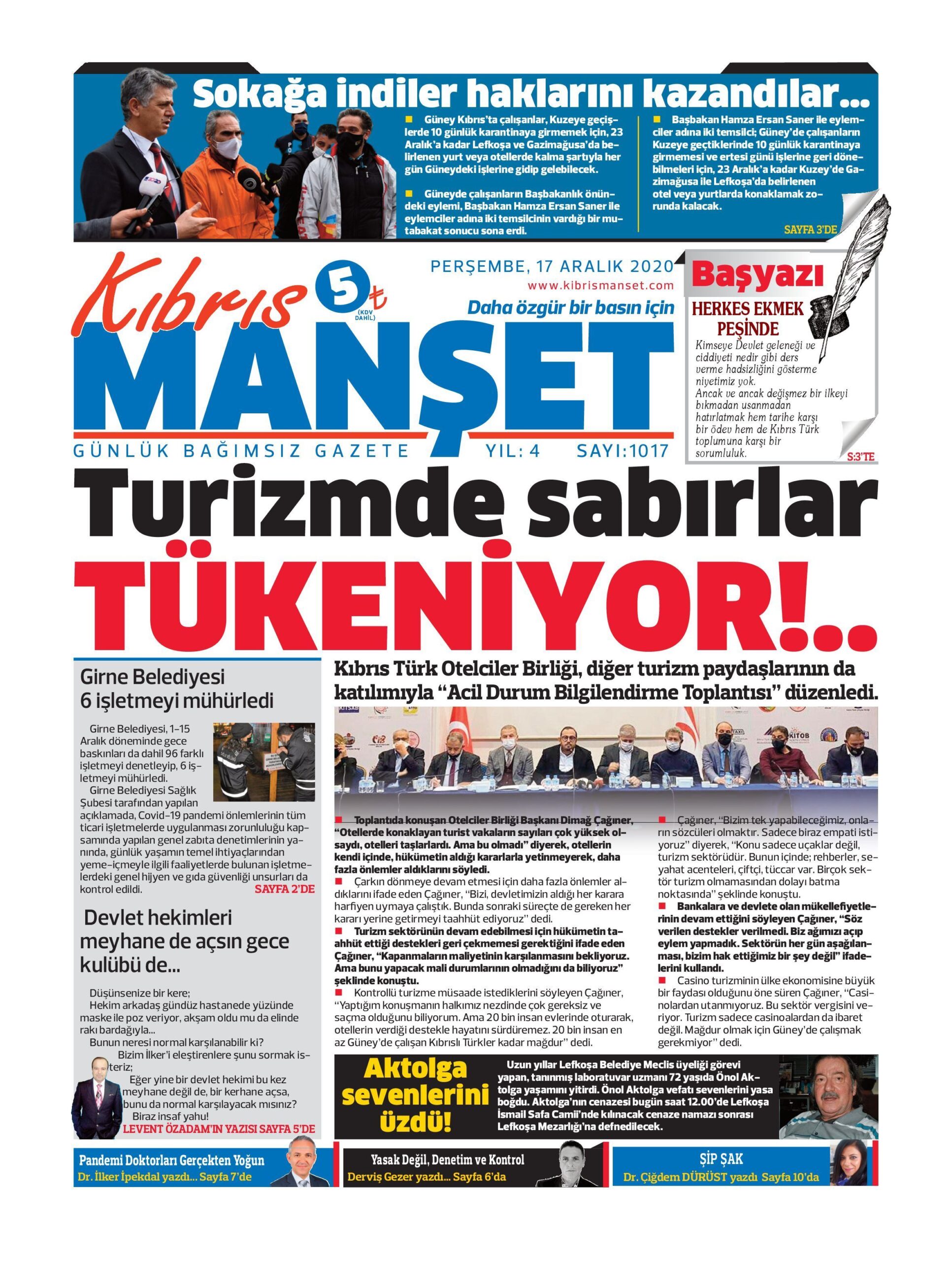 17 Aralık 2020 tarihinde KKTC’de yayınlanan gazete manşetleri
