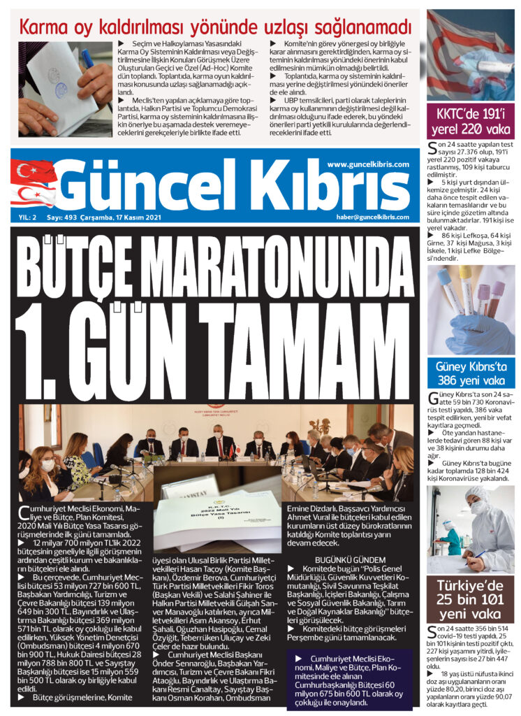 17 Kasım 2021’de KKTC’de yayınlanan gazete manşetleri