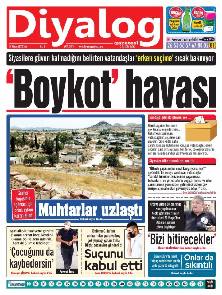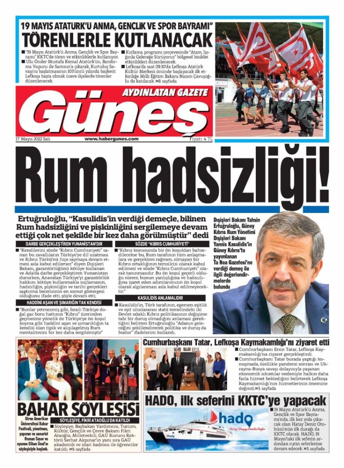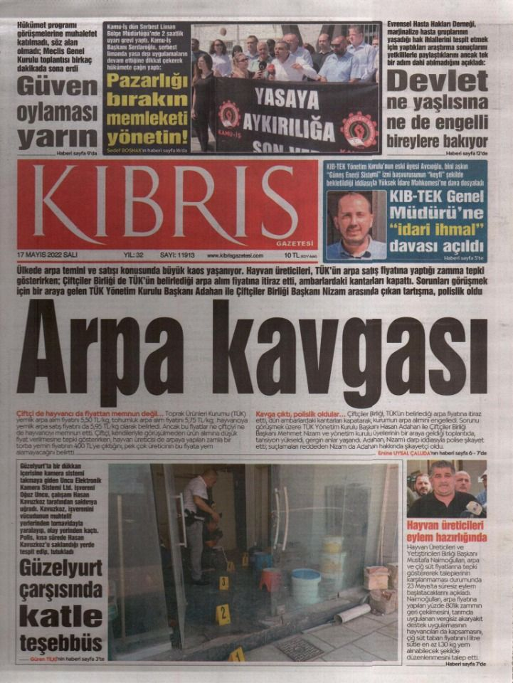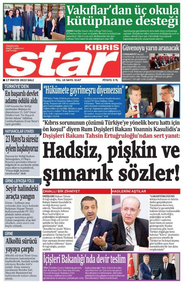 17 Mayıs 2022’de KKTC’de yayınlanan gazete manşetleri