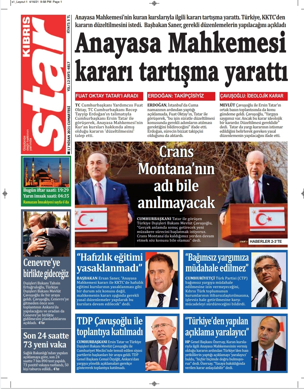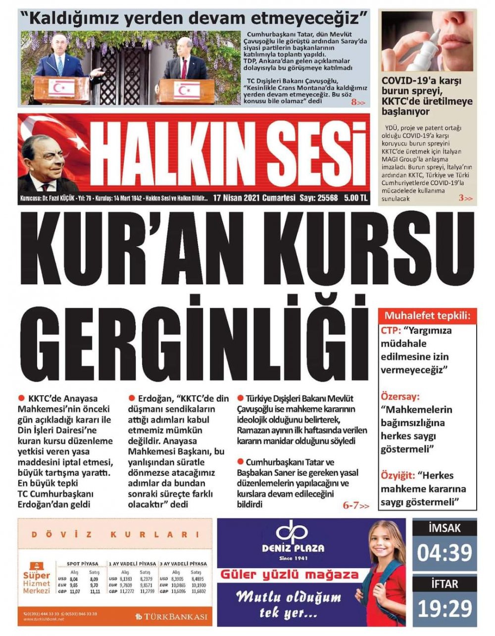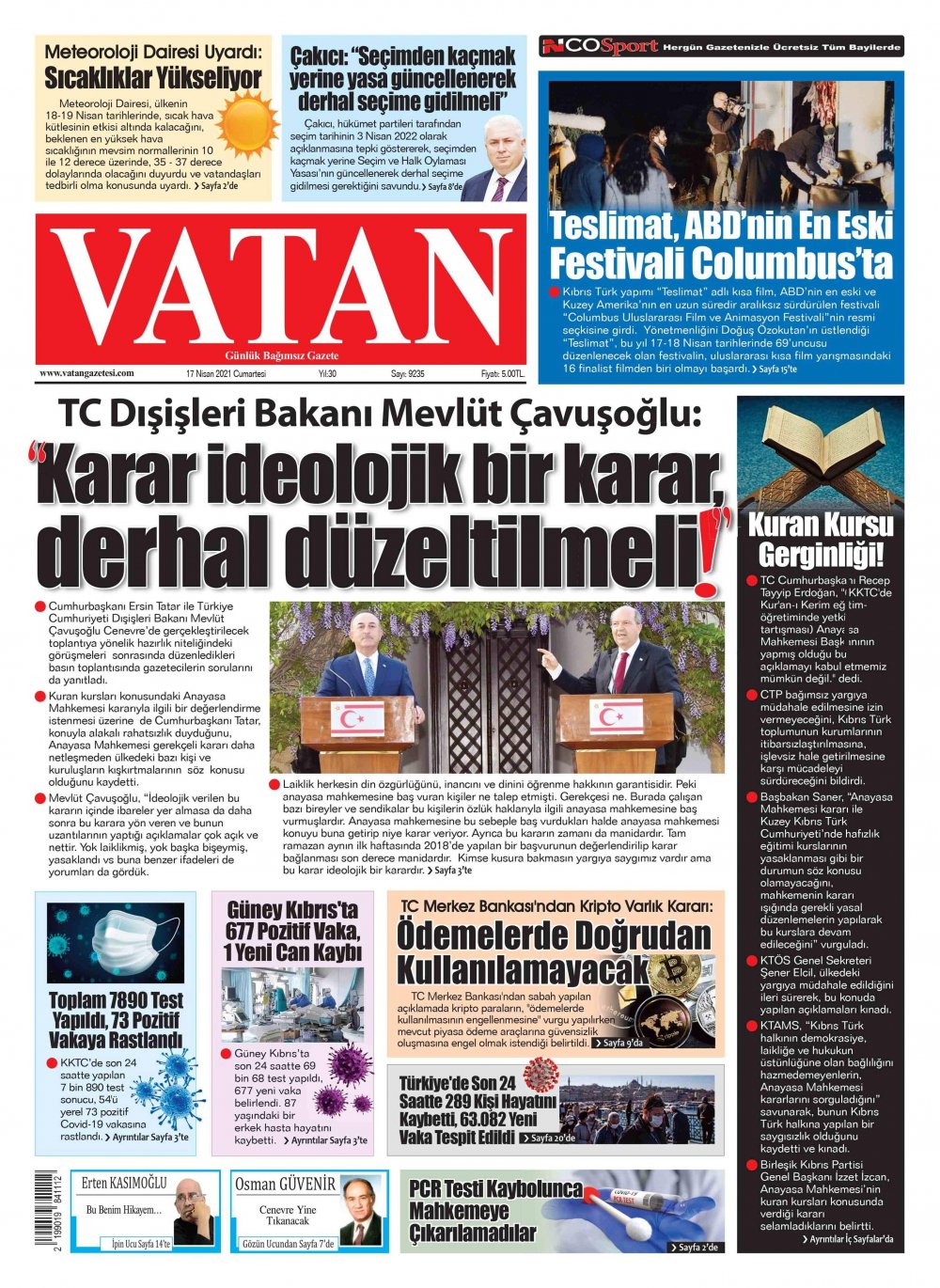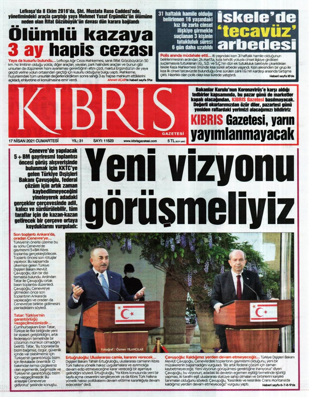 17 Nisan 2021’de KKTC’de yayınlanan gazete manşetleri