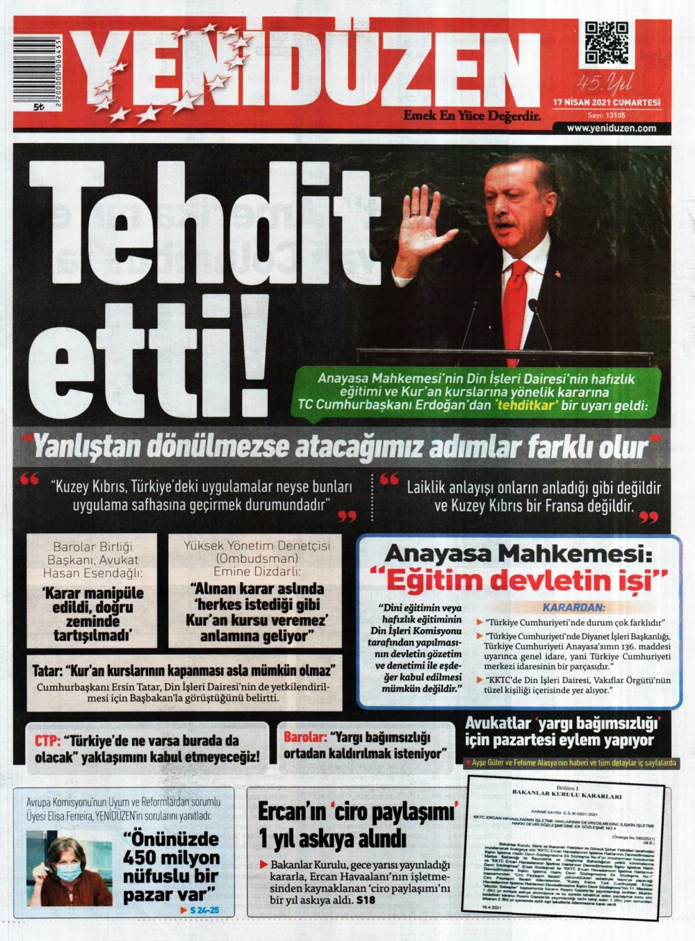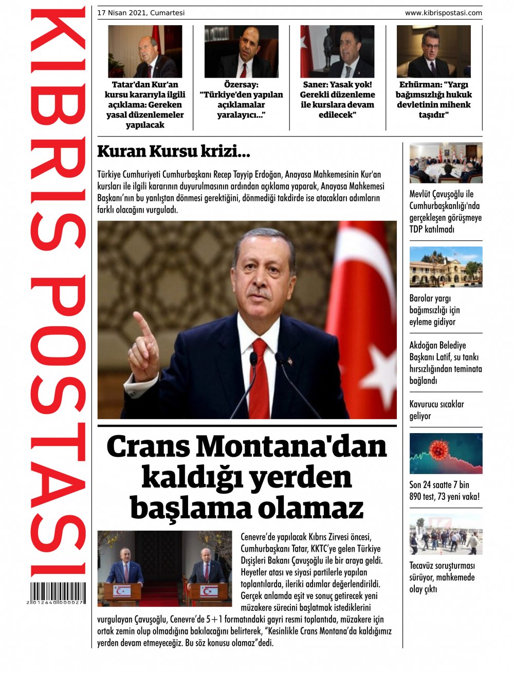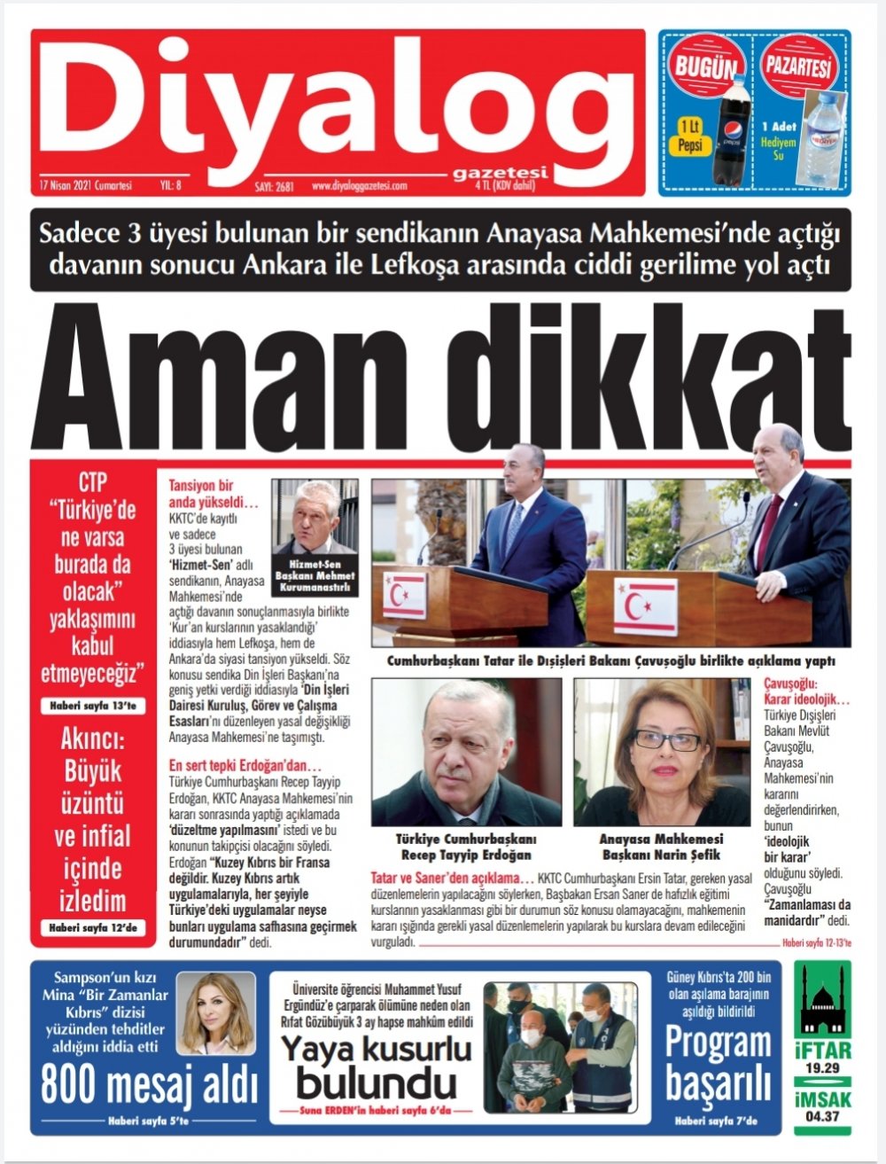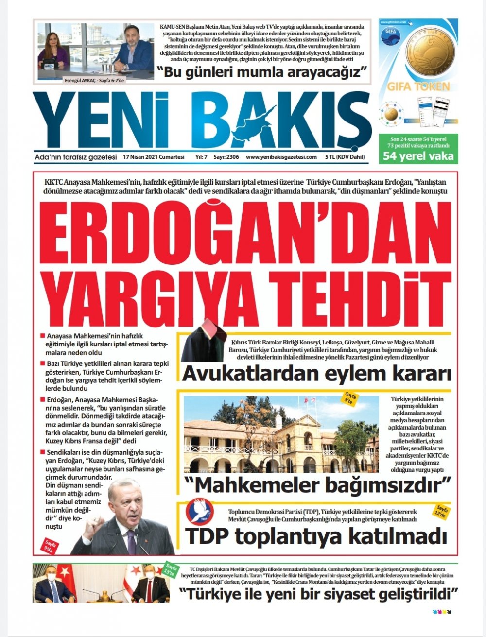 17 Nisan 2021’de KKTC’de yayınlanan gazete manşetleri