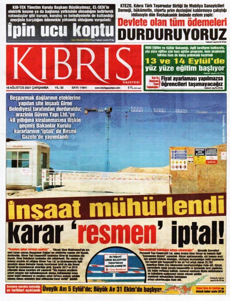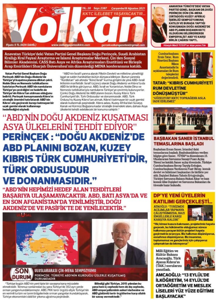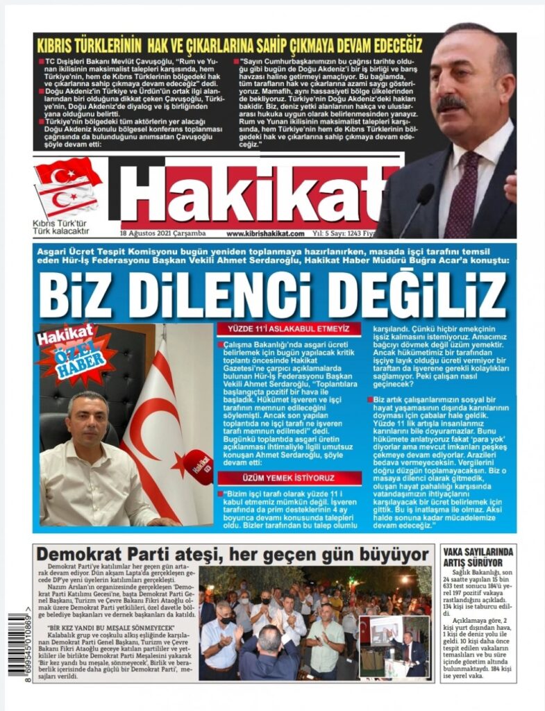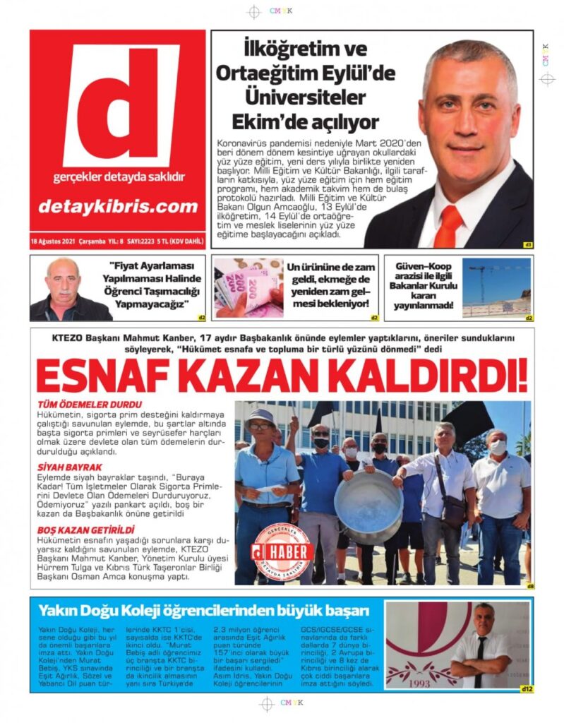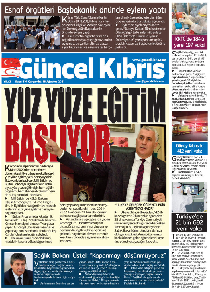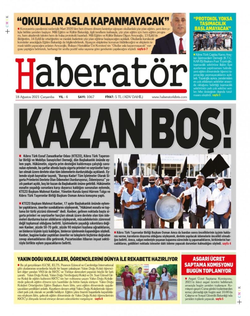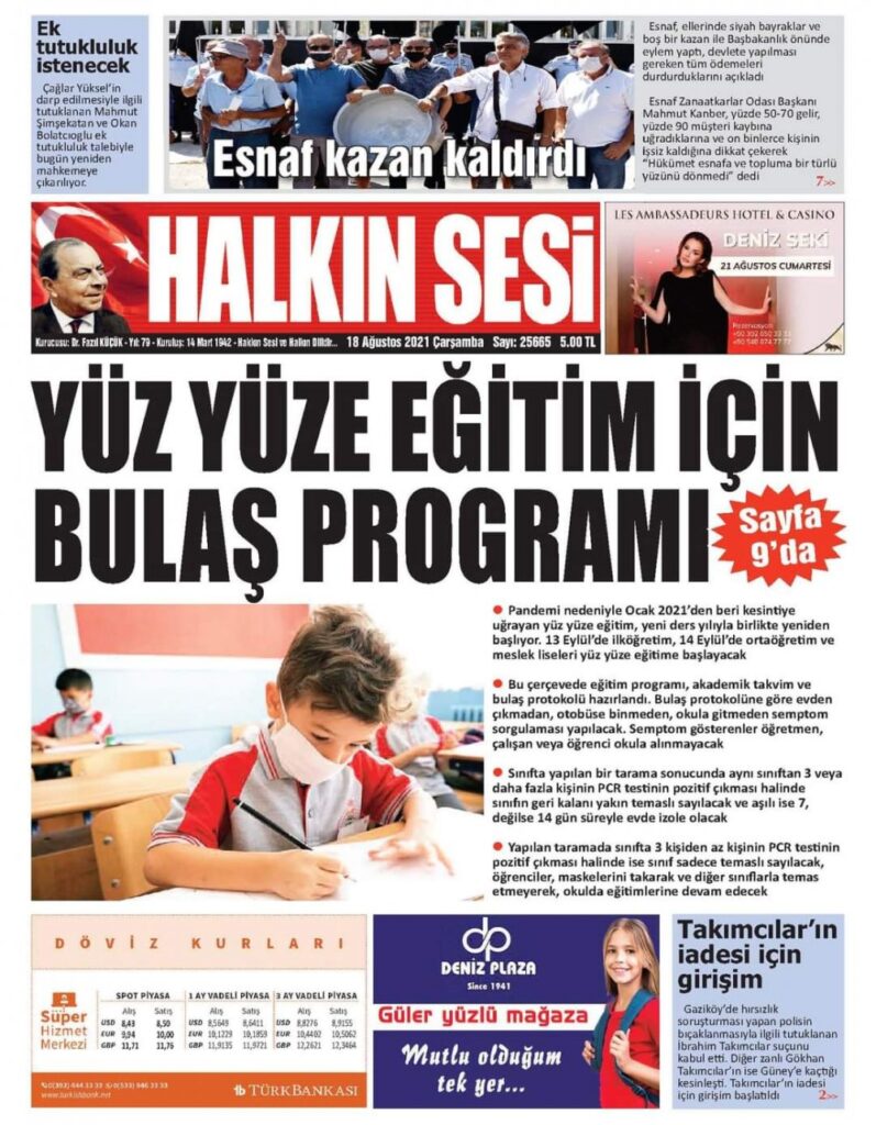 18 Ağustos 2021’de KKTC’de yayınlanan gazete manşetleri