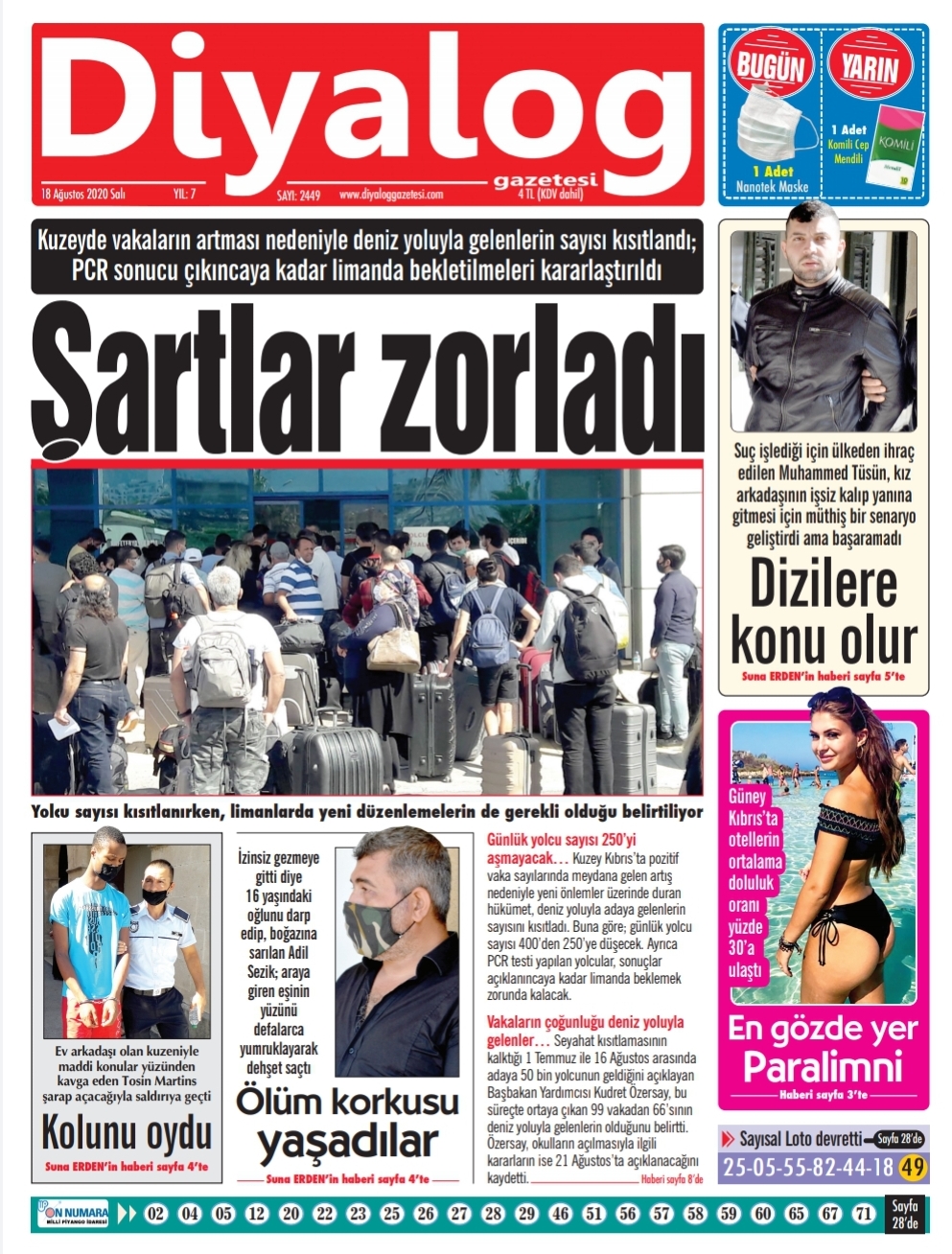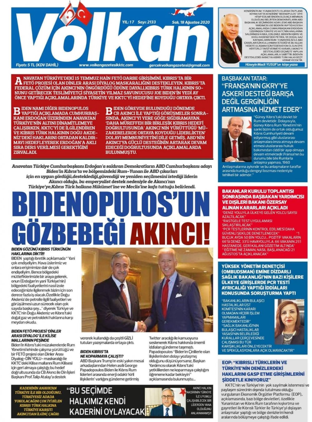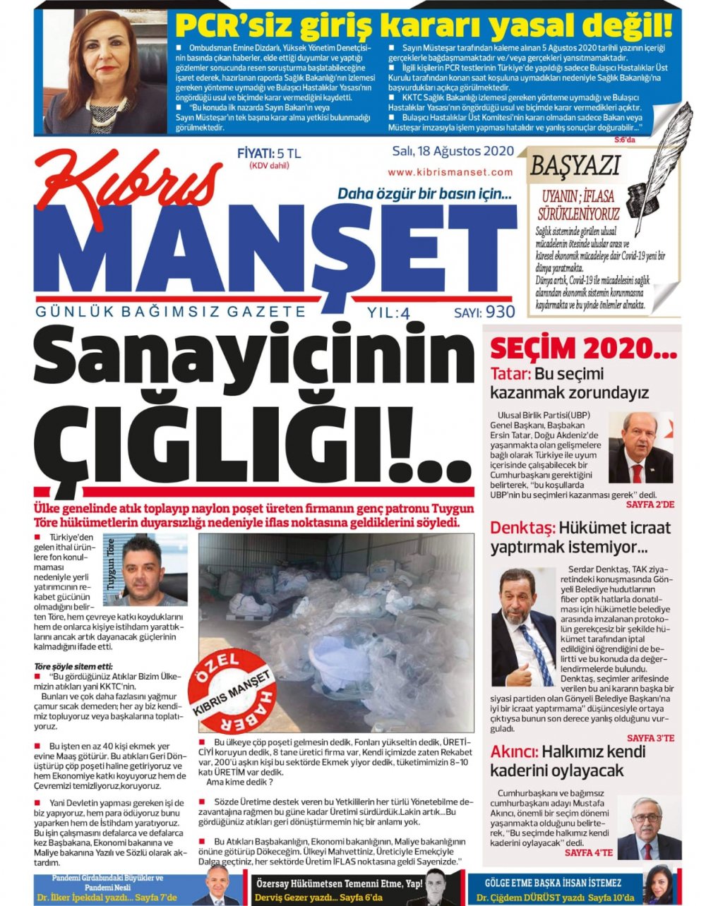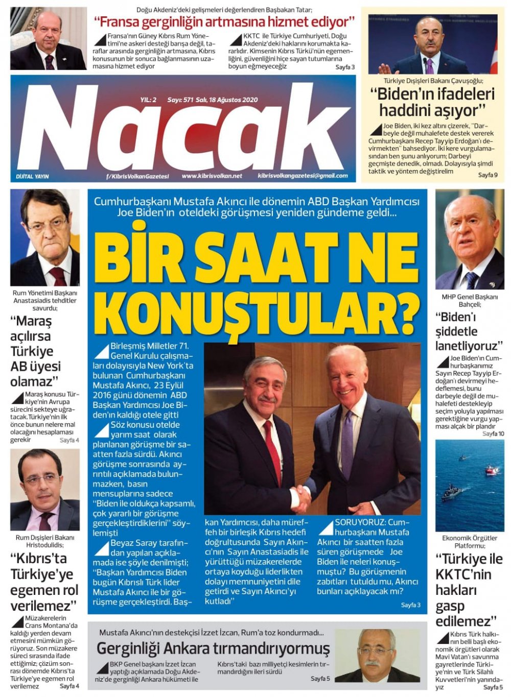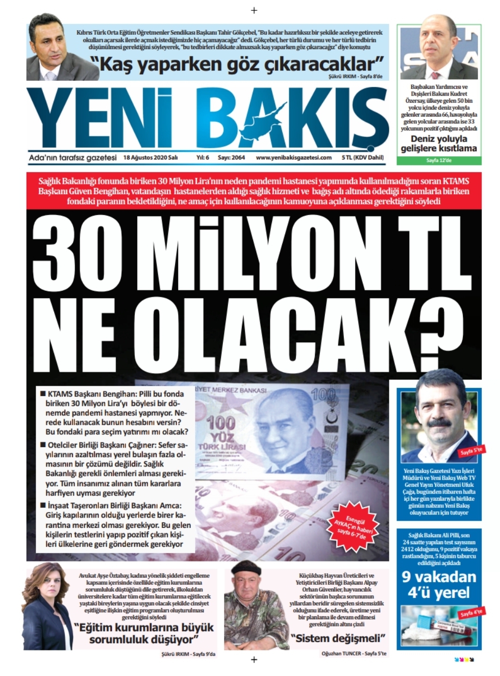 18 Ağustos 2020 tarihinde KKTC yayınlanan gazete manşetleri