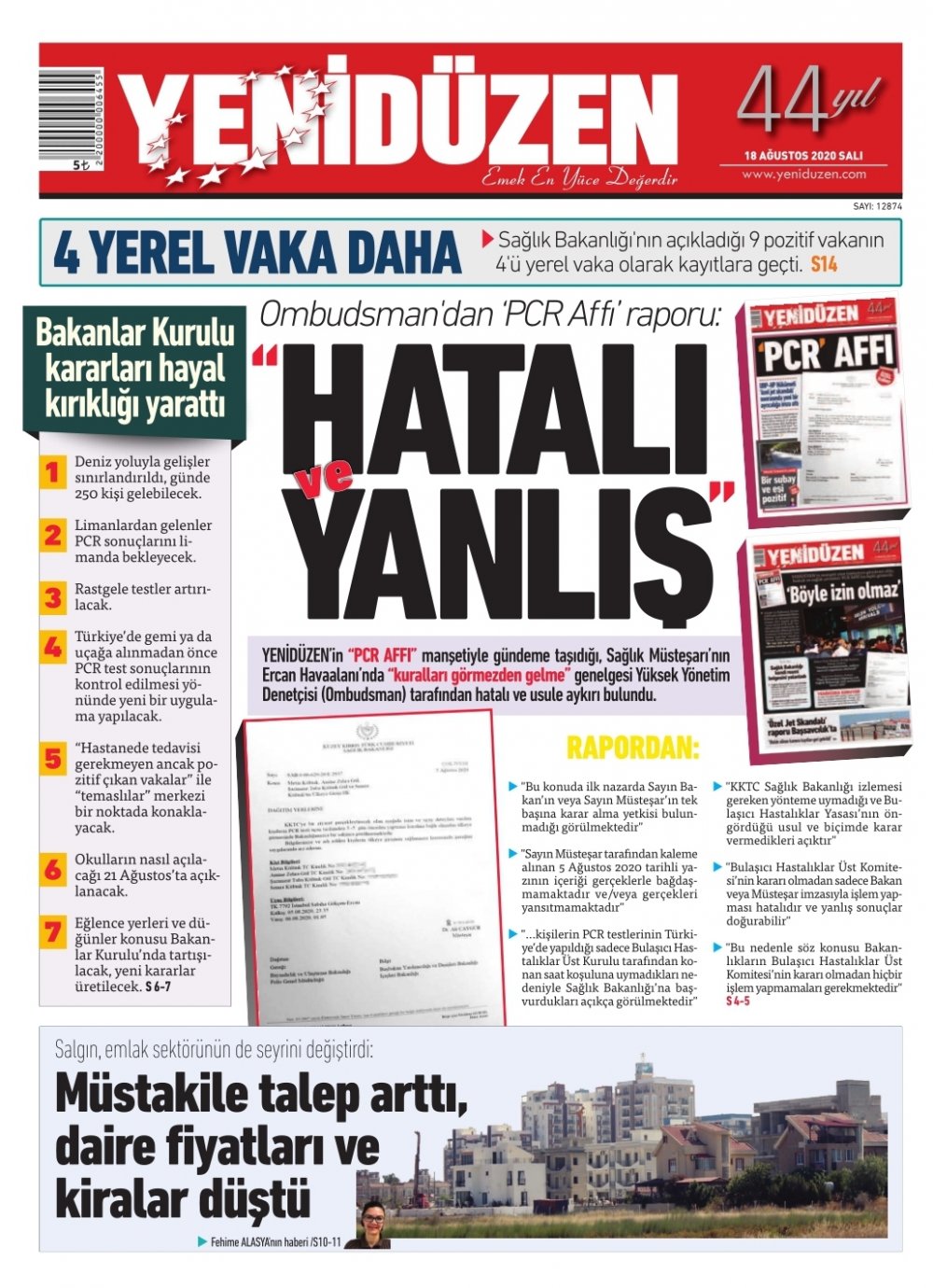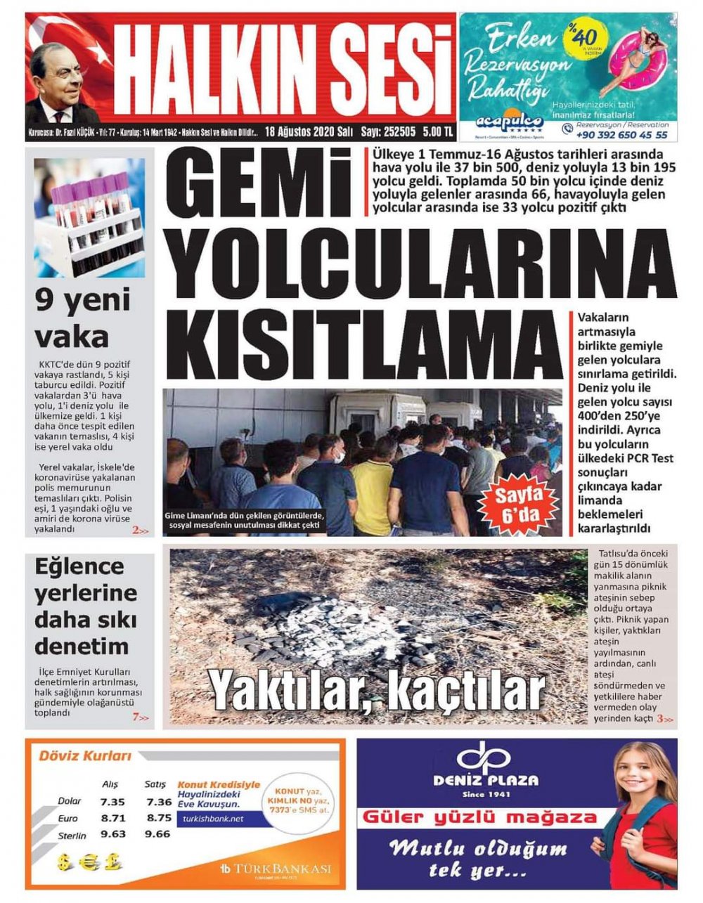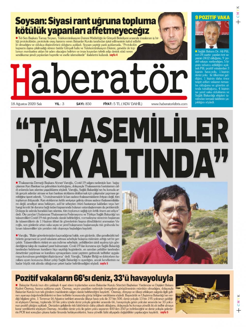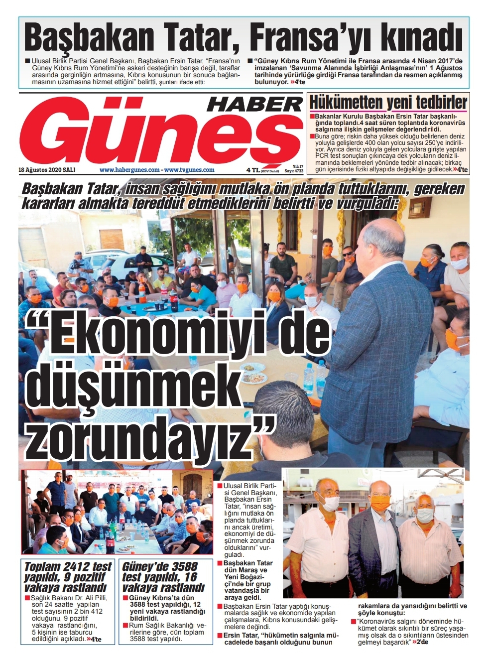 18 Ağustos 2020 tarihinde KKTC yayınlanan gazete manşetleri