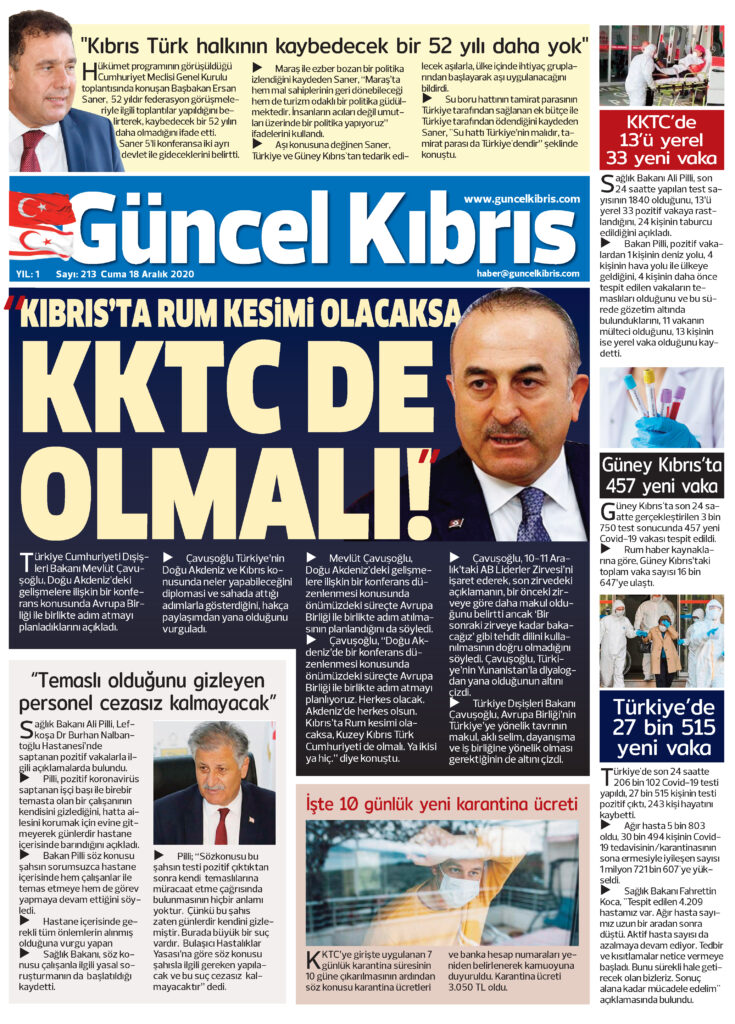 18 Aralık 2020 tarihinde KKTC’de yayınlanan gazete manşetleri