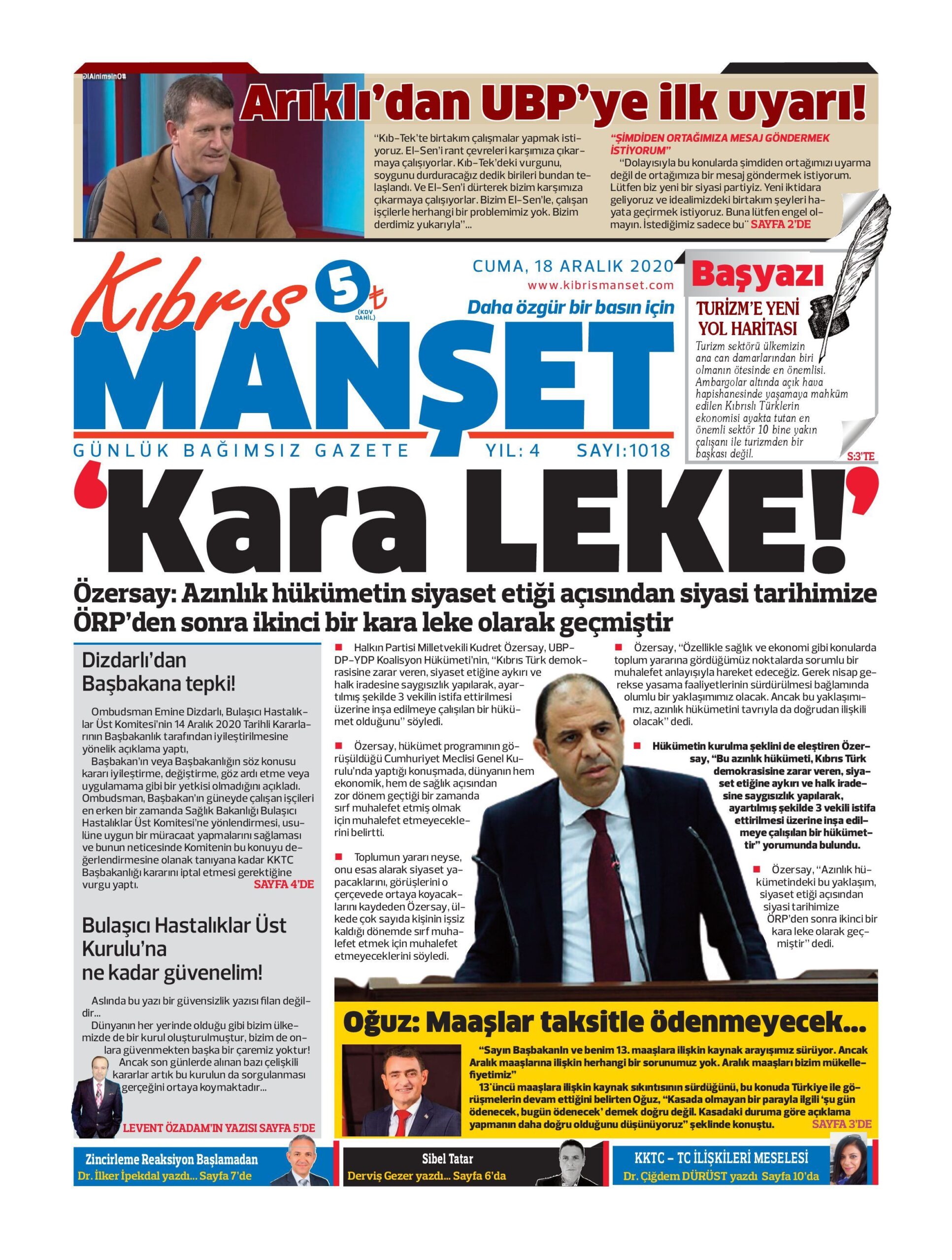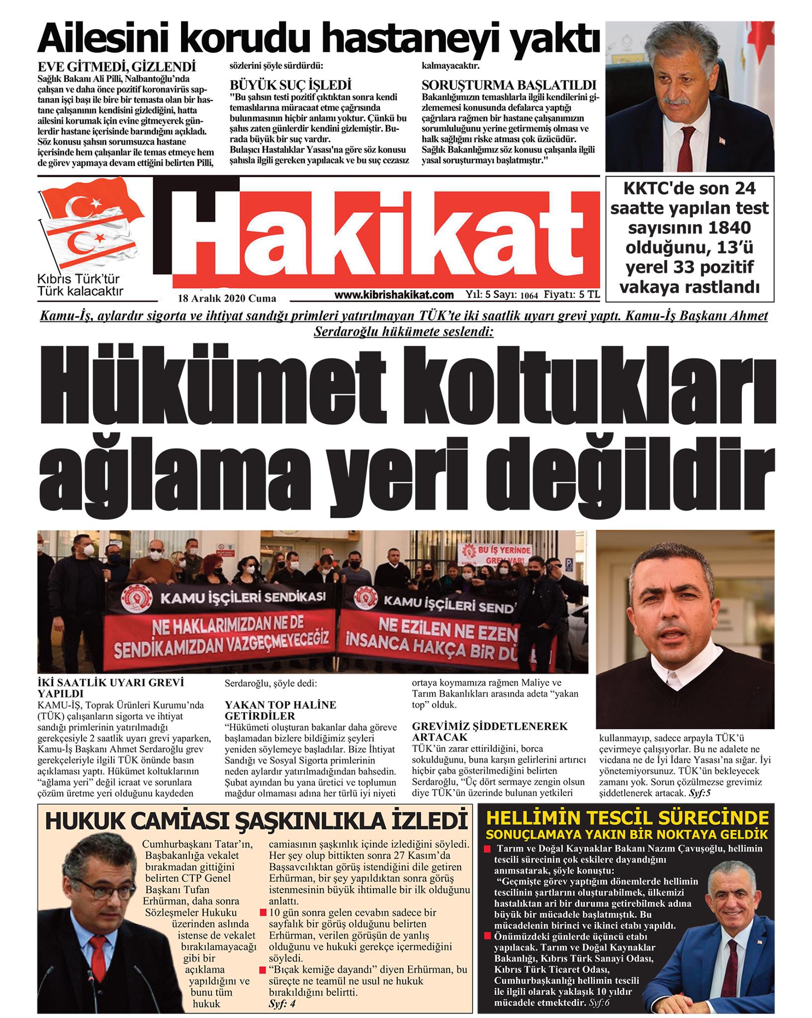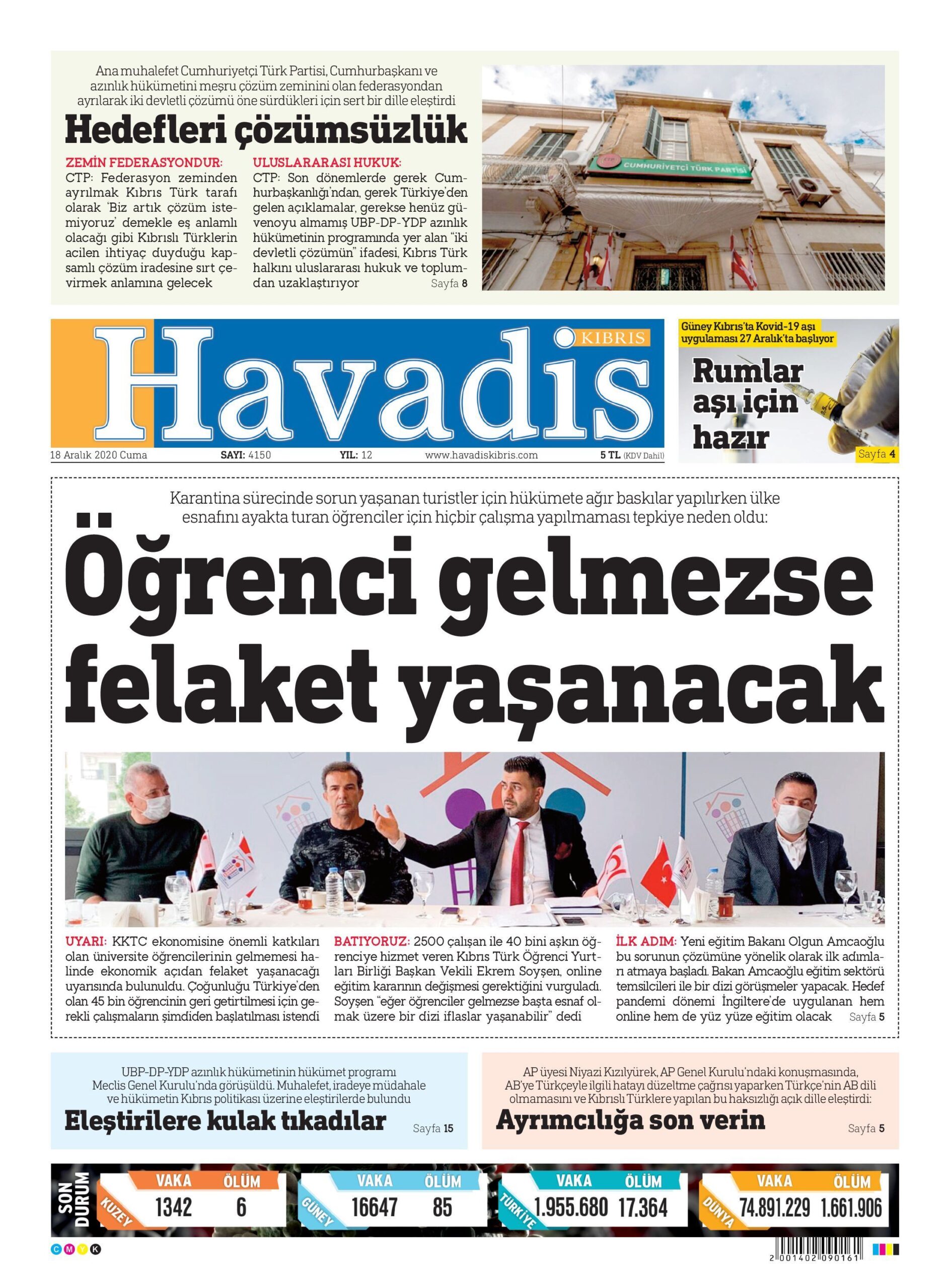 18 Aralık 2020 tarihinde KKTC’de yayınlanan gazete manşetleri