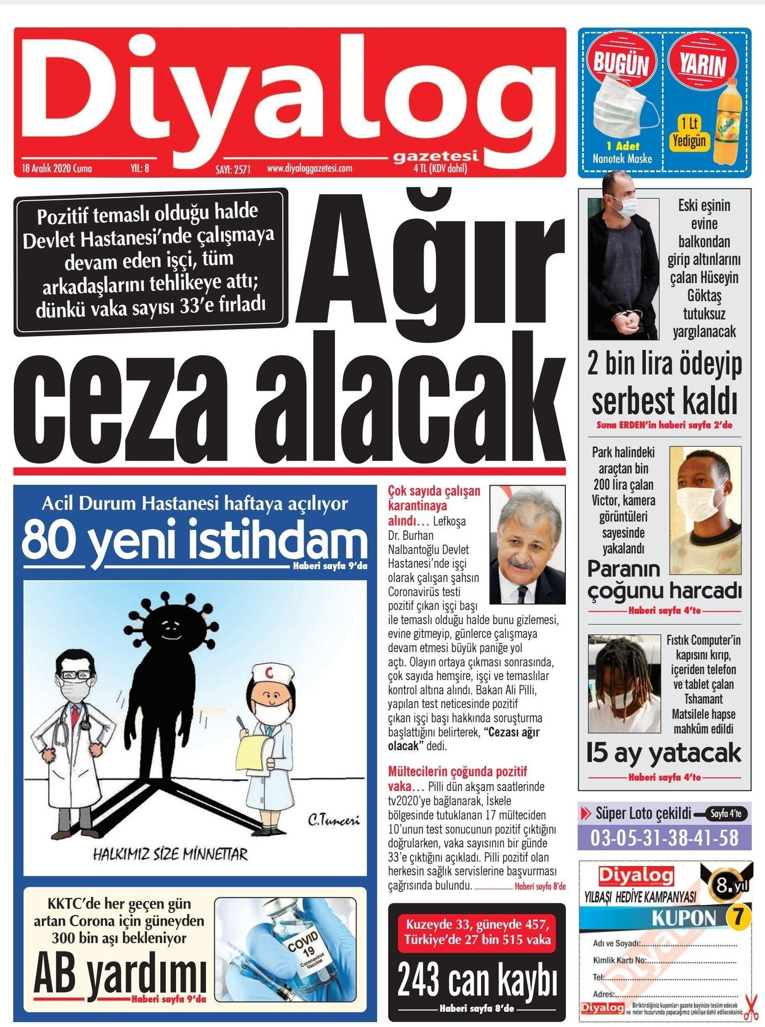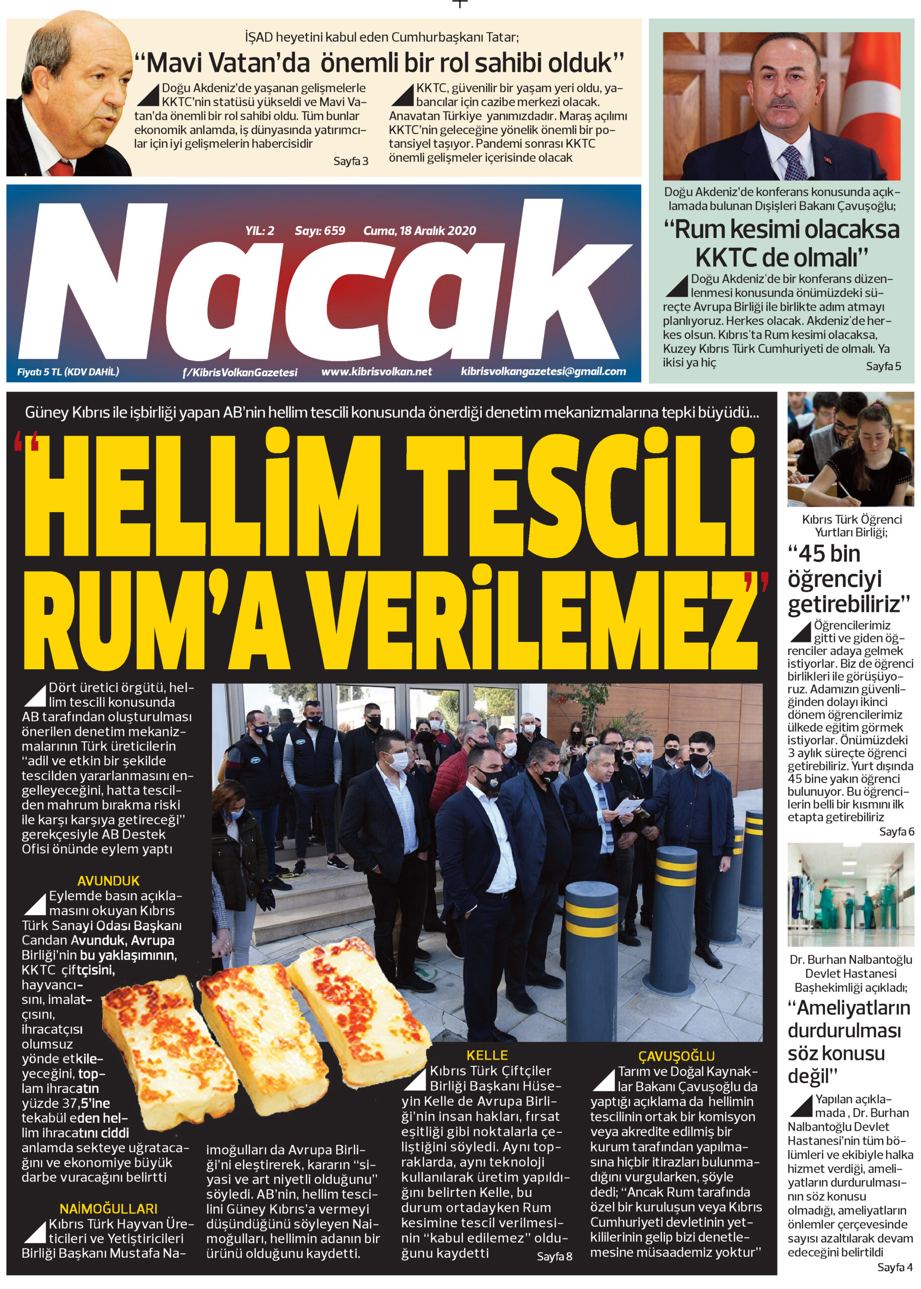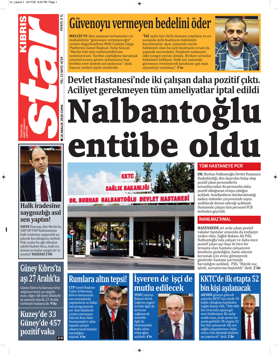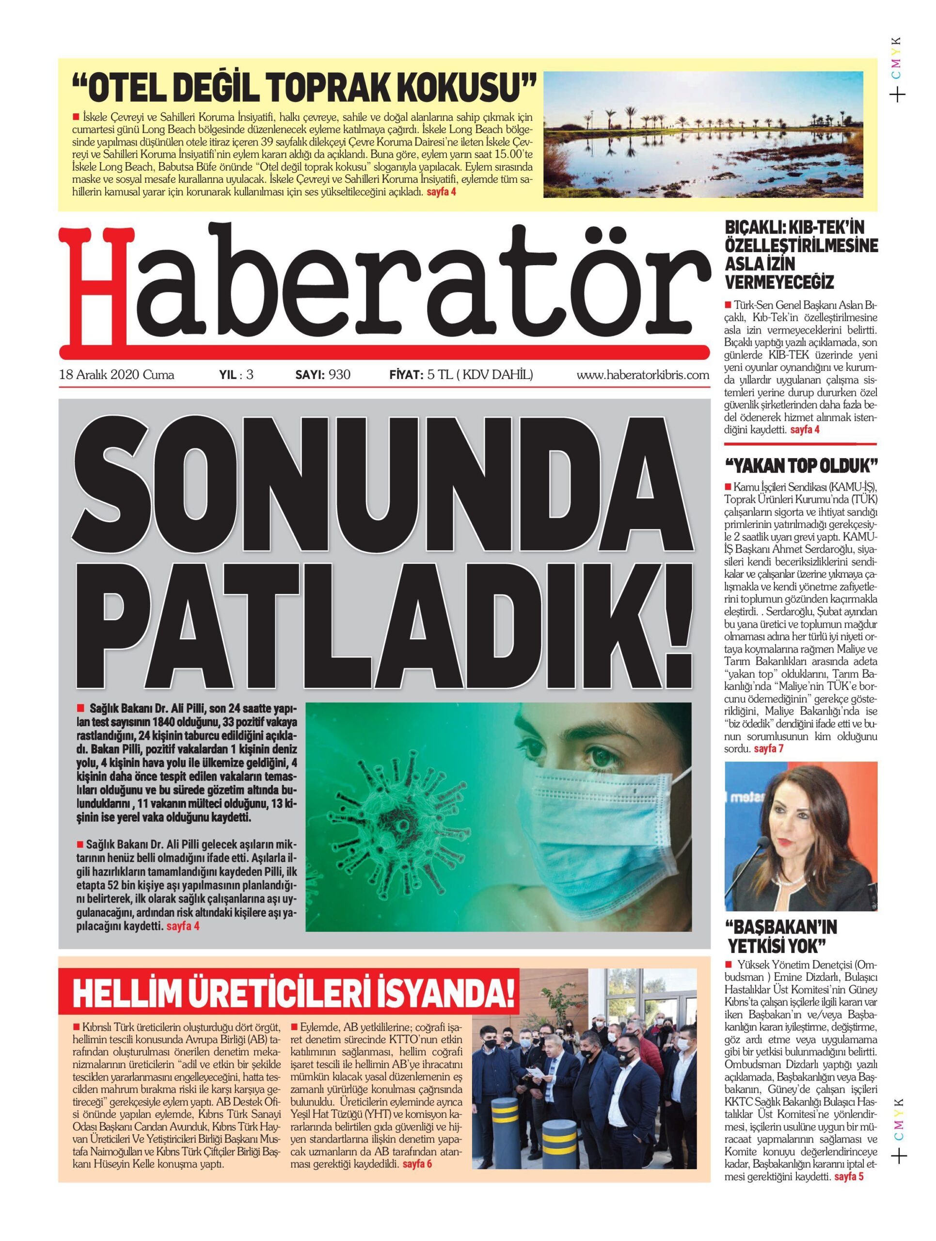 18 Aralık 2020 tarihinde KKTC’de yayınlanan gazete manşetleri