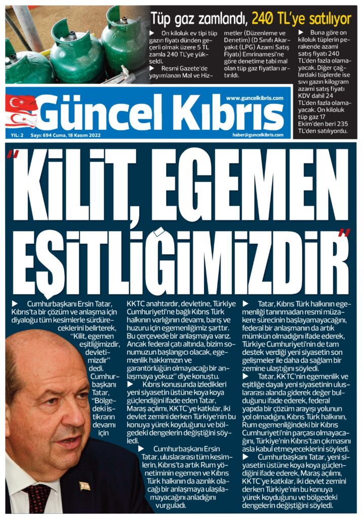 18 Kasım 2022’de KKTC’de yayınlanan gazete manşetleri