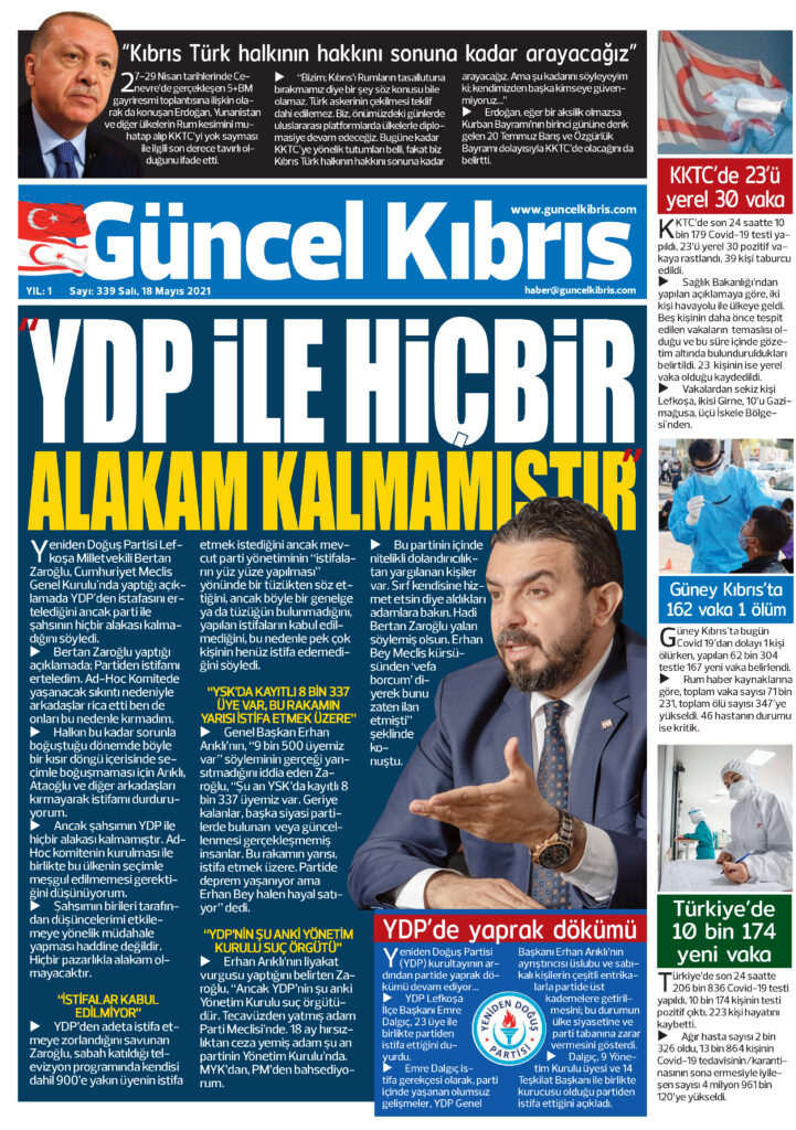 18 Mayıs 2021’de KKTC’de yayınlanan gazete manşetleri