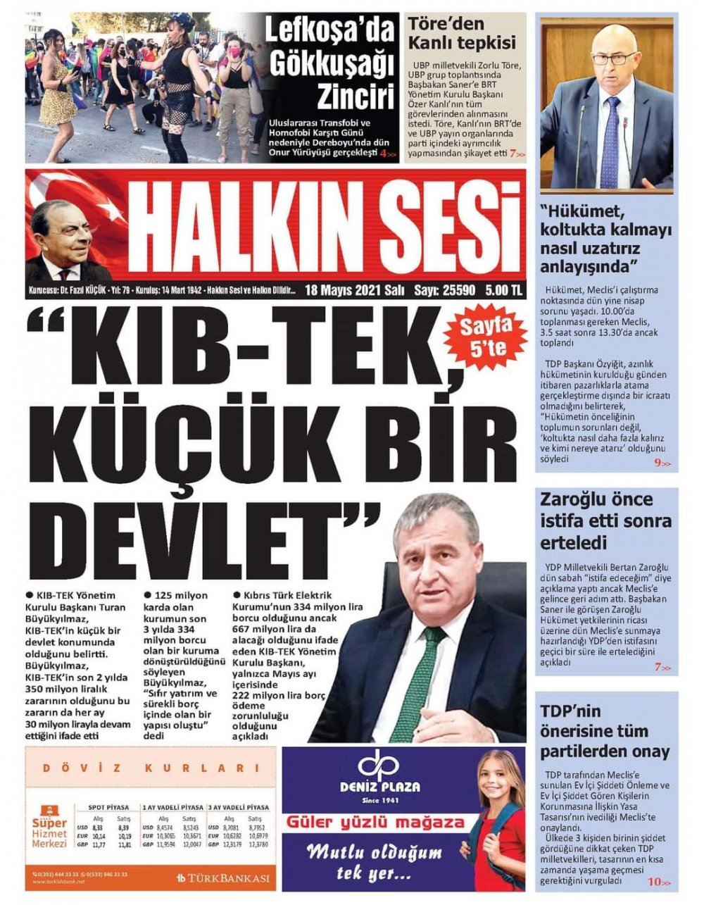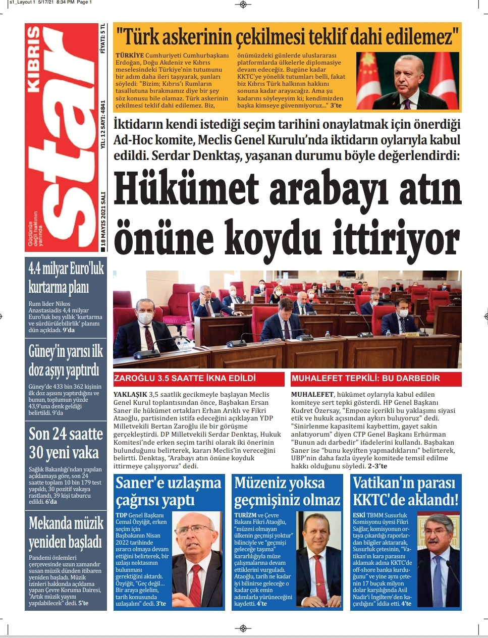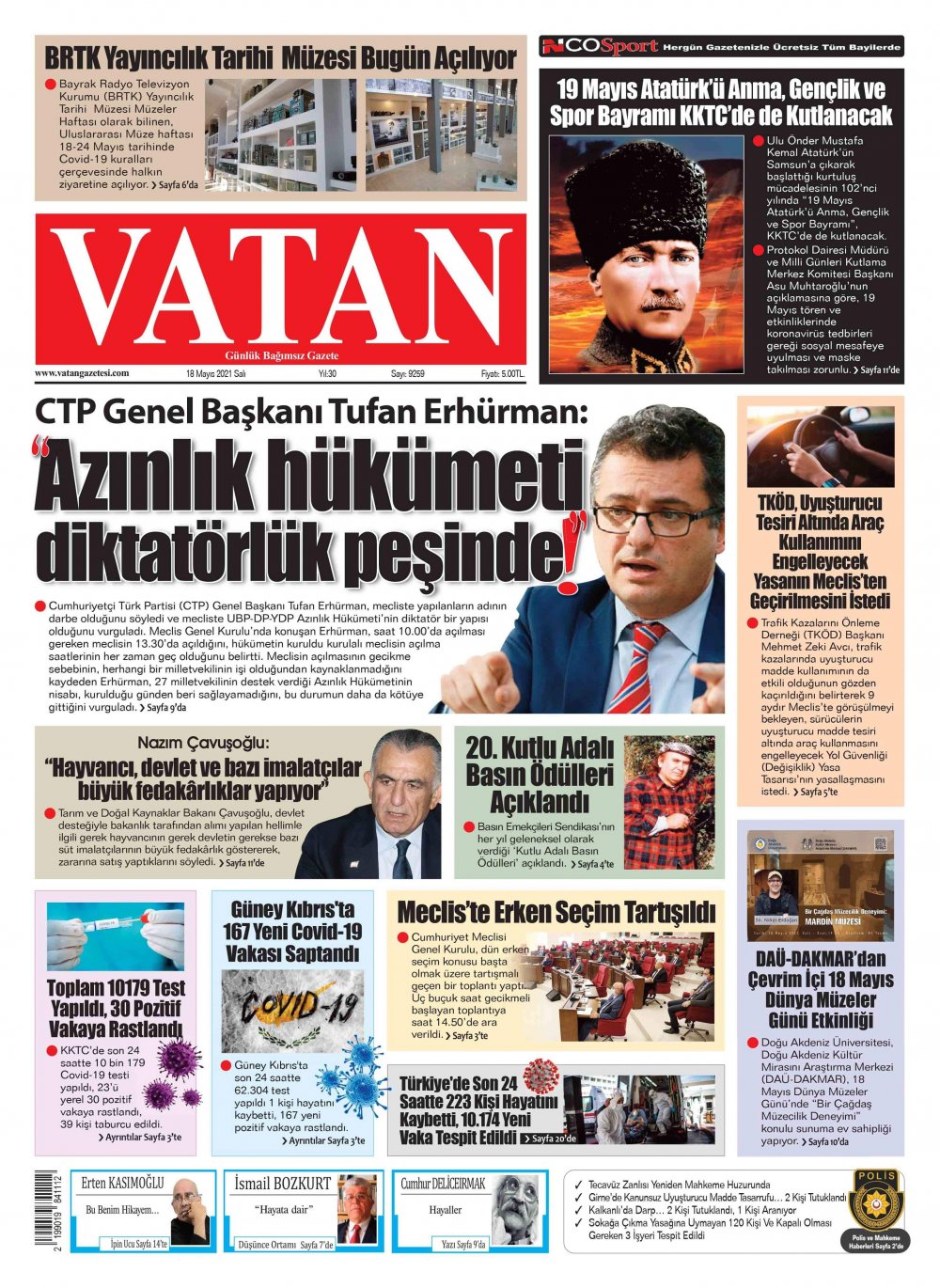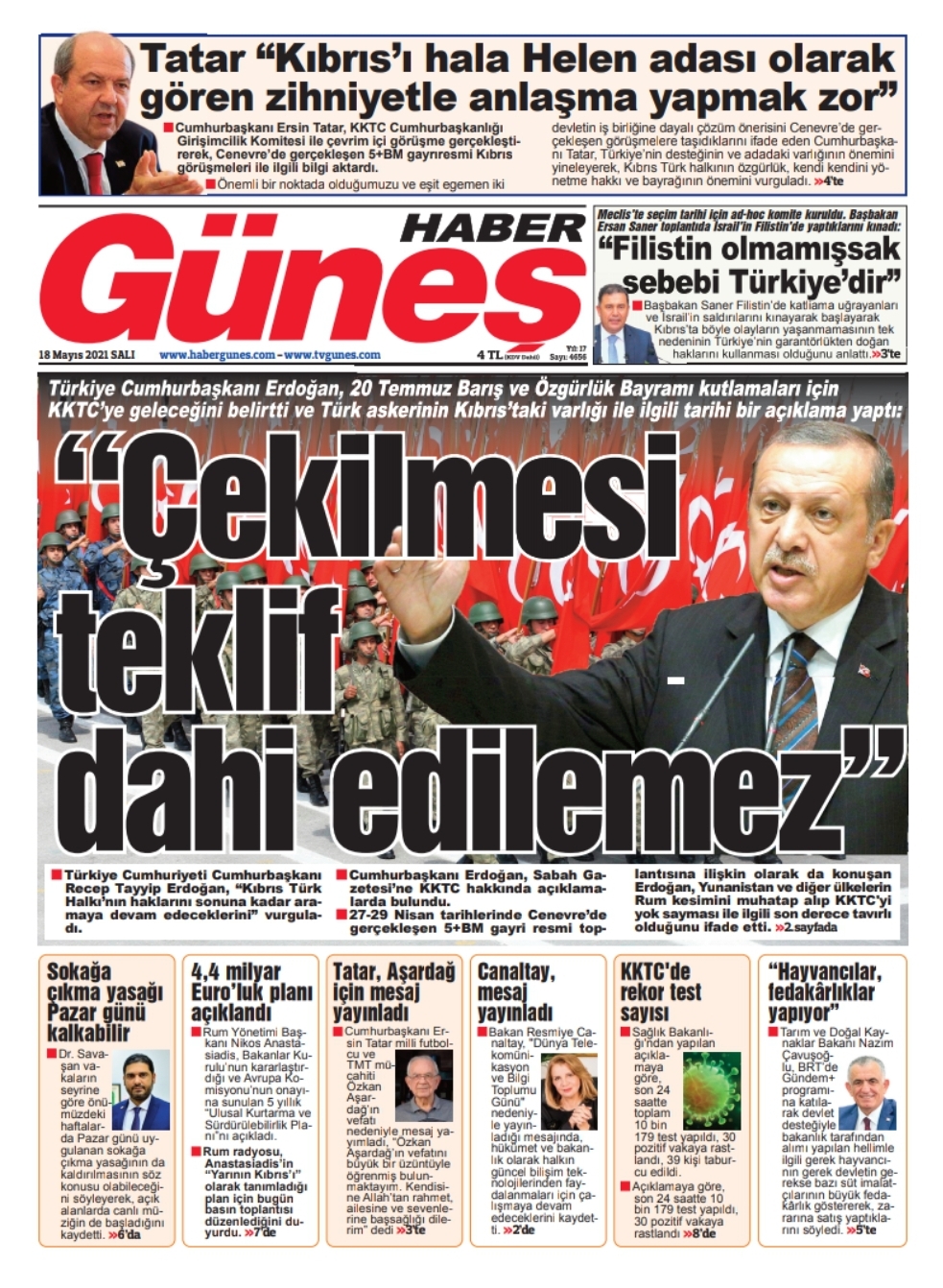 18 Mayıs 2021’de KKTC’de yayınlanan gazete manşetleri