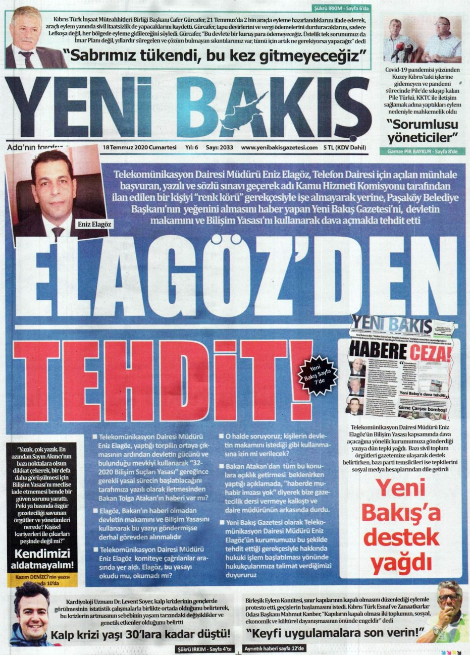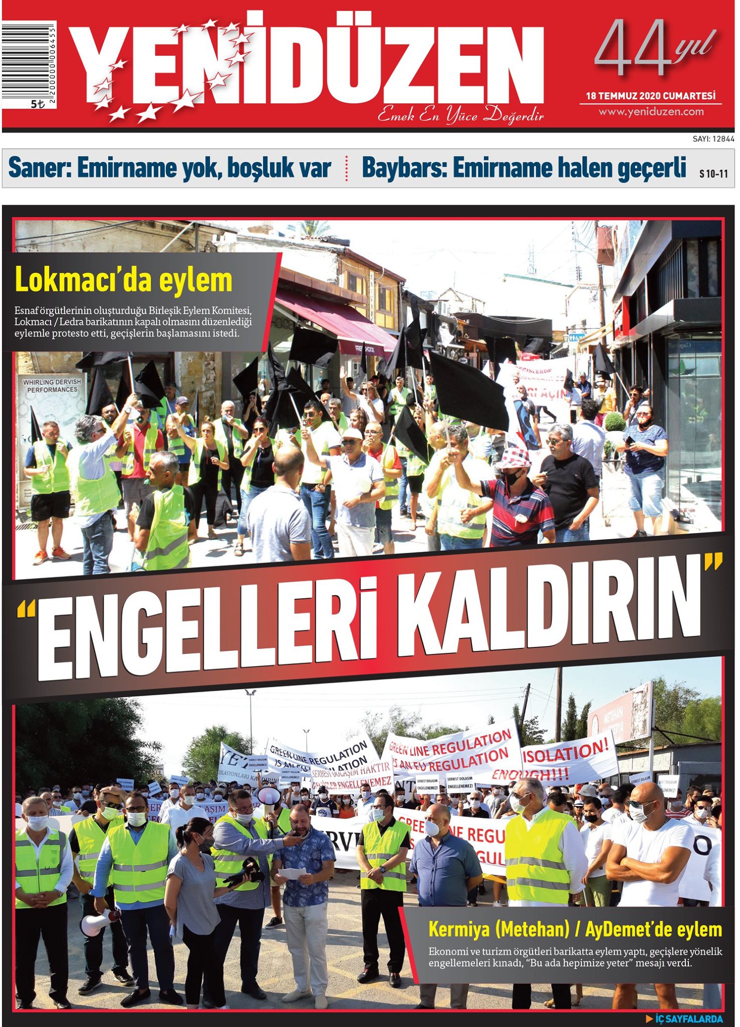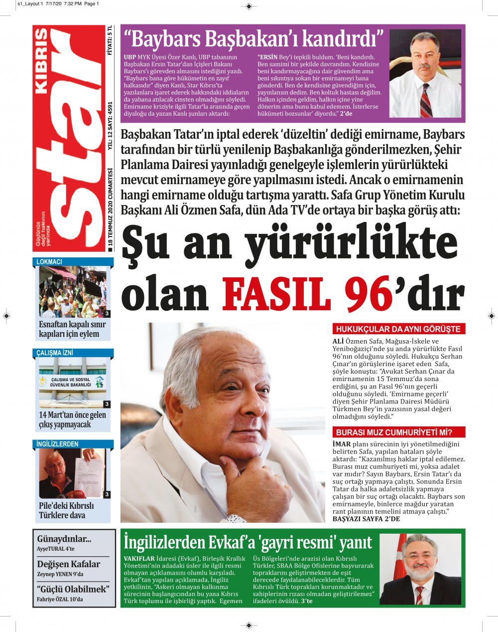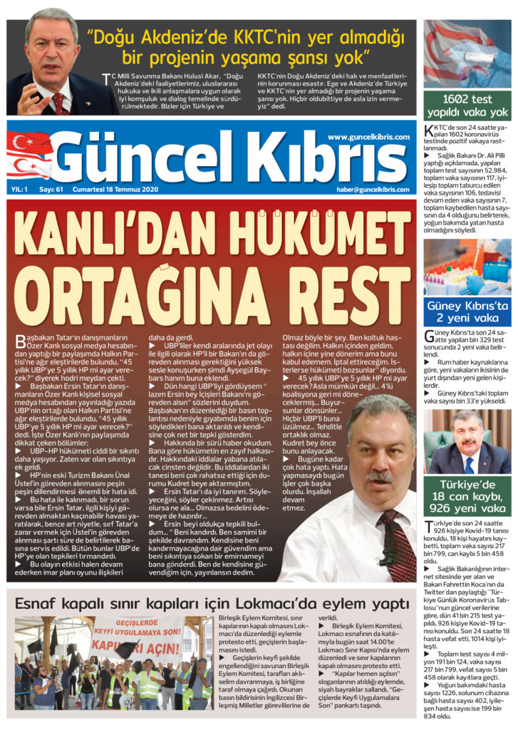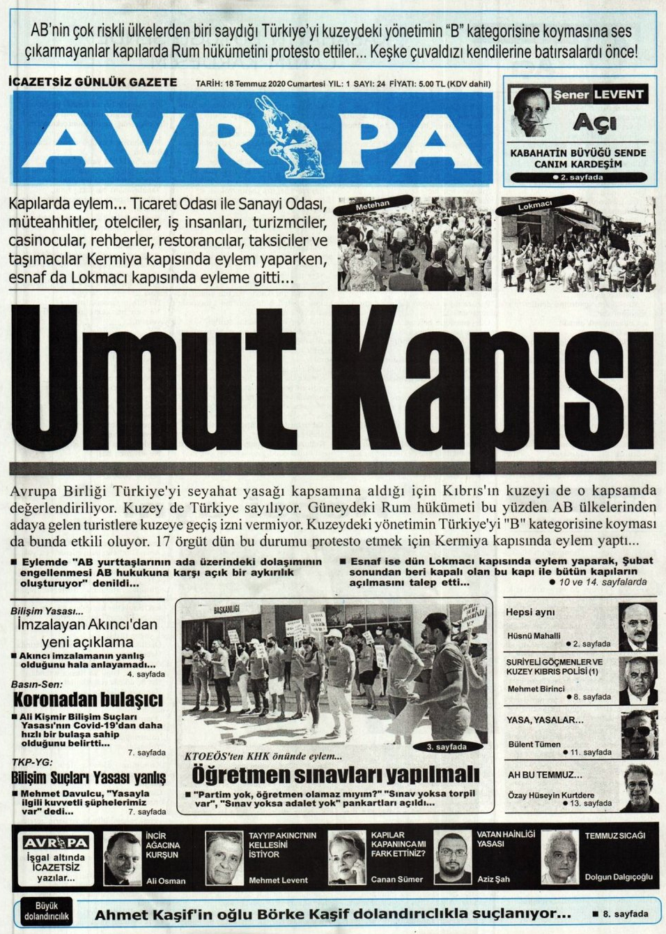 18 Temmuz 2020 tarihinde KKTC yayınlanan gazete manşetleri